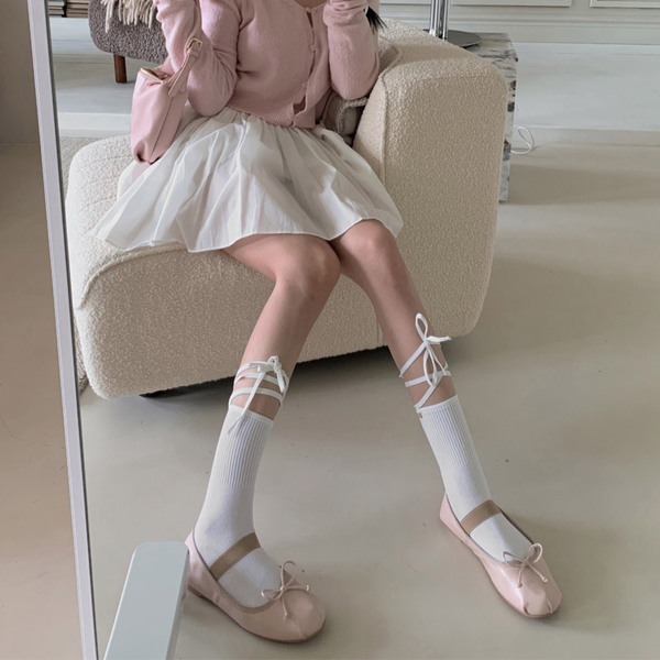 [Balletcore]Balletリボンゴムフラットバレーシューズ