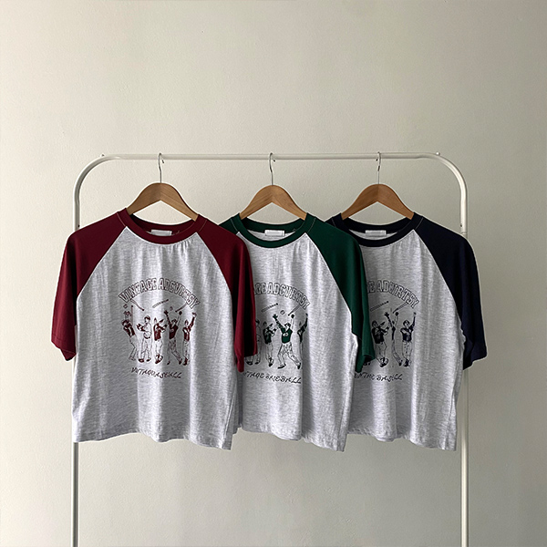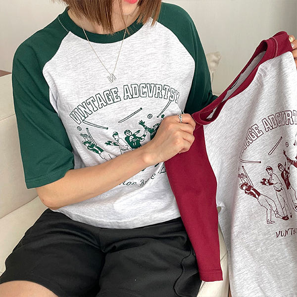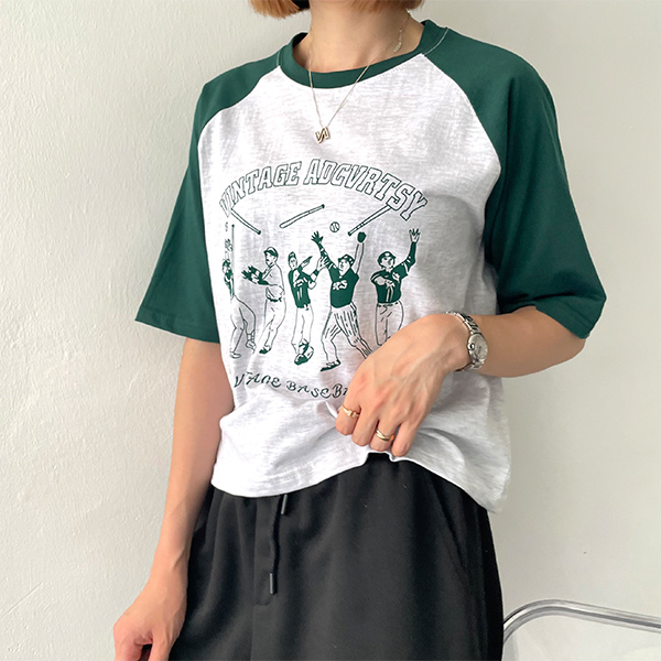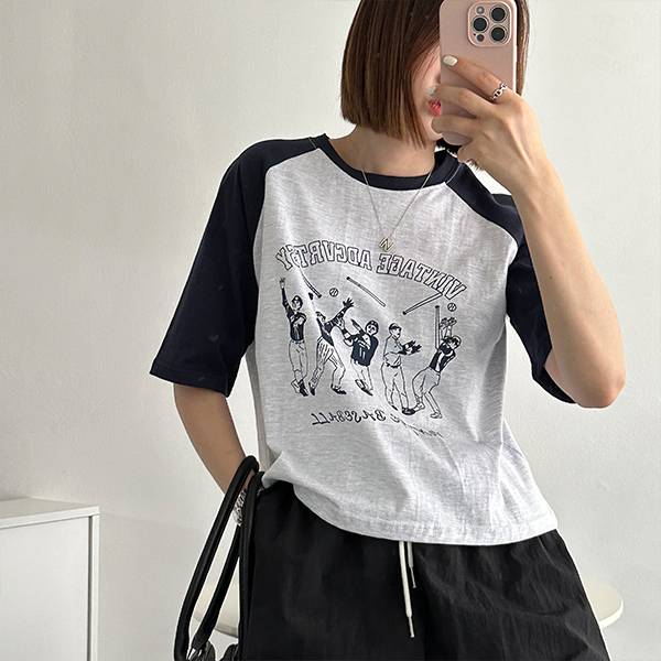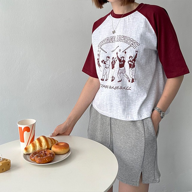 野球プリントレタリングラグラン半袖クロップドTシャツ