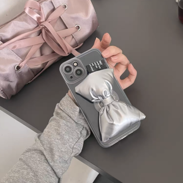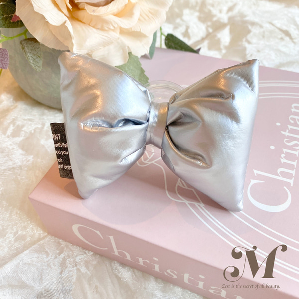 ガーリー♡ ボリュームリボンスマホグリップ《シルバー》