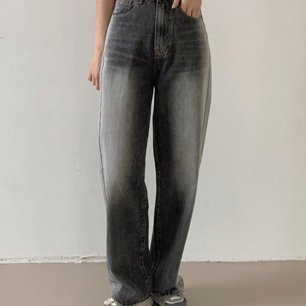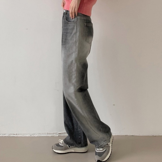 [short·basic·long]Darkストーンウォッシュワイドデニムパンツ