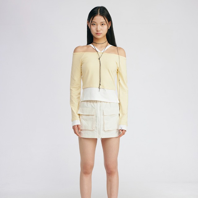 Halter neck color-blocked long sleeve tshirt - Butter&white