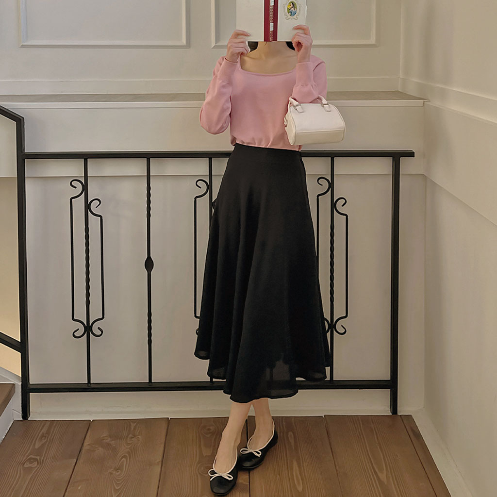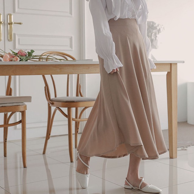 【オケージョン】ウエストゴム ロング丈フレアスカート