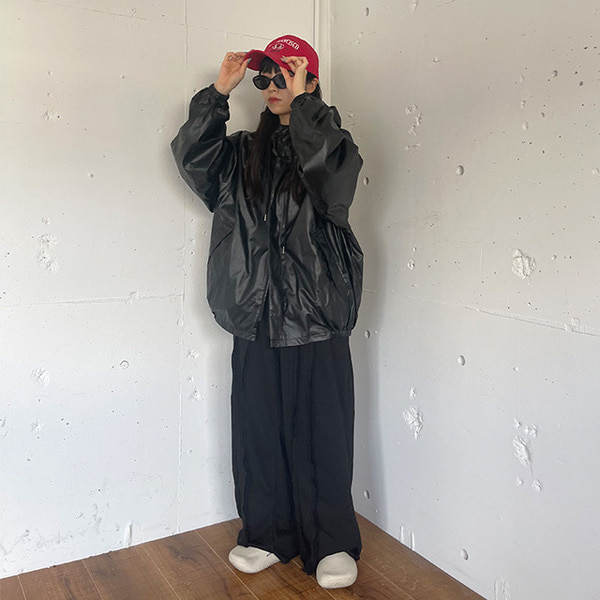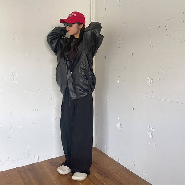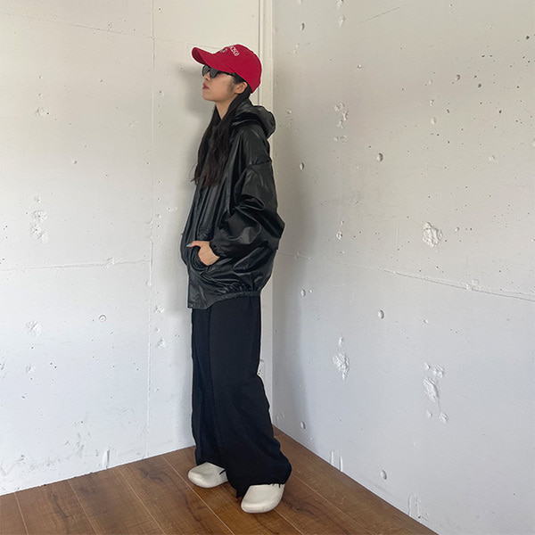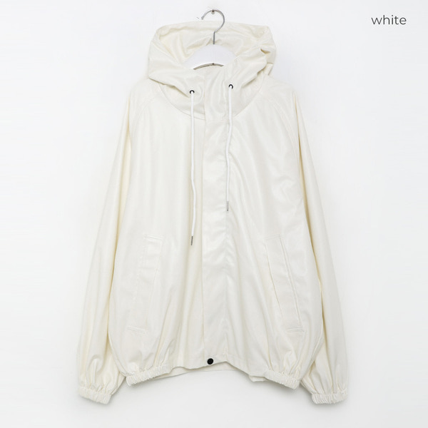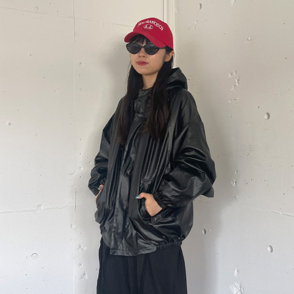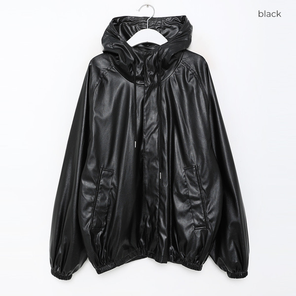 (ユニセックス)レザーフーディージャンパー
