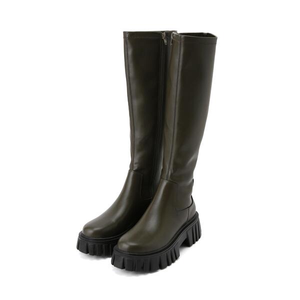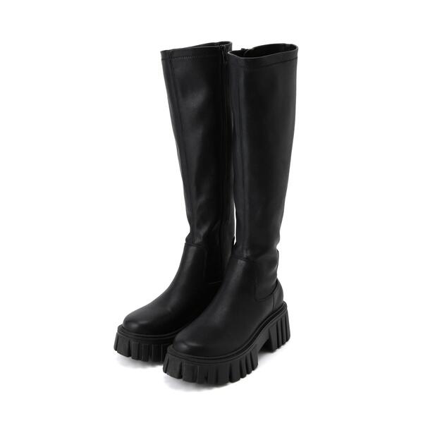脚の引き締め効果が期待できて美脚効果も叶えてくれる、ストレッチ性のあるロングブーツ。最大5.5cmのボリュームソールで仕上げることで、今っぽい新鮮なバランスにブラッシュアップしており、ソフトで伸縮性のあるアッパーでフィット感も抜群。ボリュームがありながらも軽量であることや、クッション性のあるソールを使用して足を疲れにくくさせたり、軽やかな履き心地を叶えている点など、こだわりの詰まった一足。