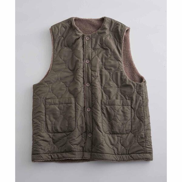 リバーシブル ボア&キルティング ロングベスト / コートレイヤード / ユニセックス
