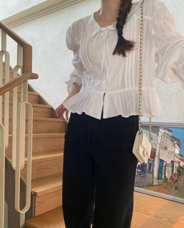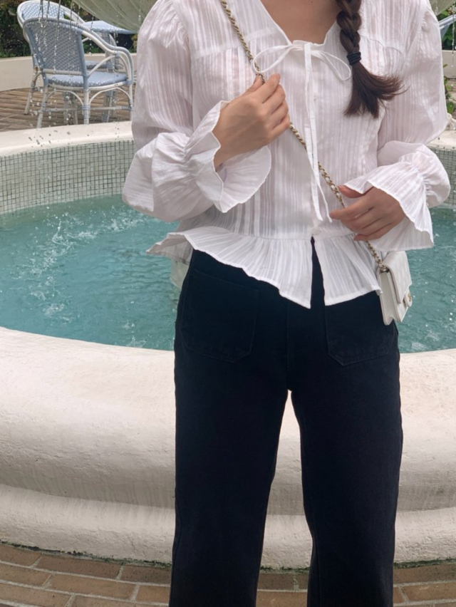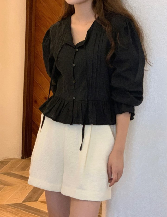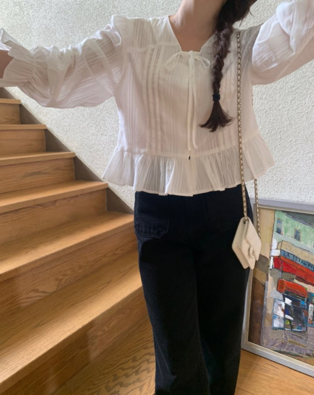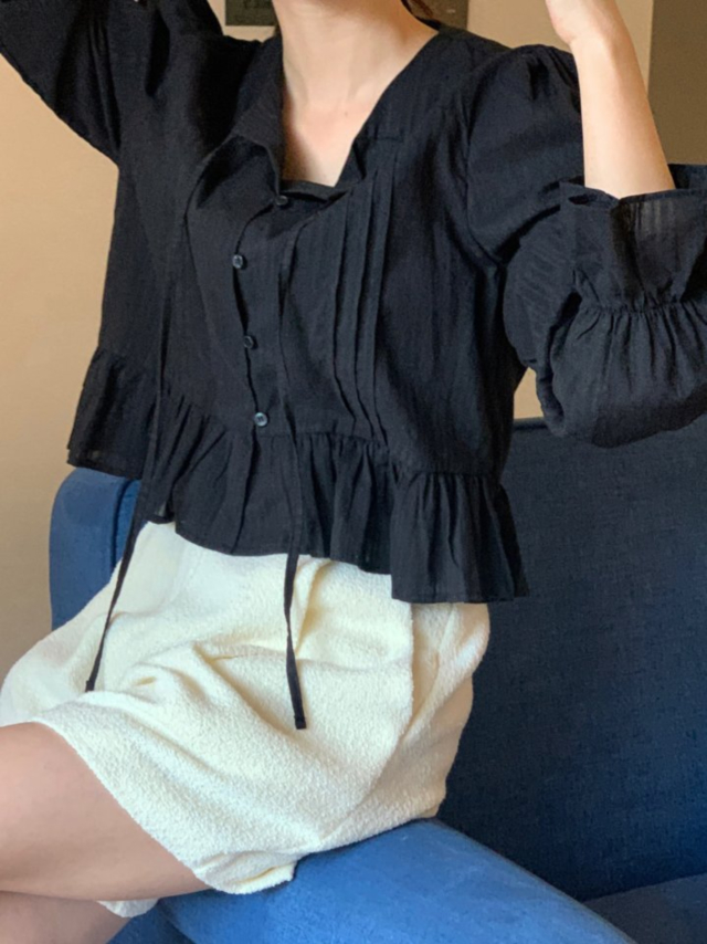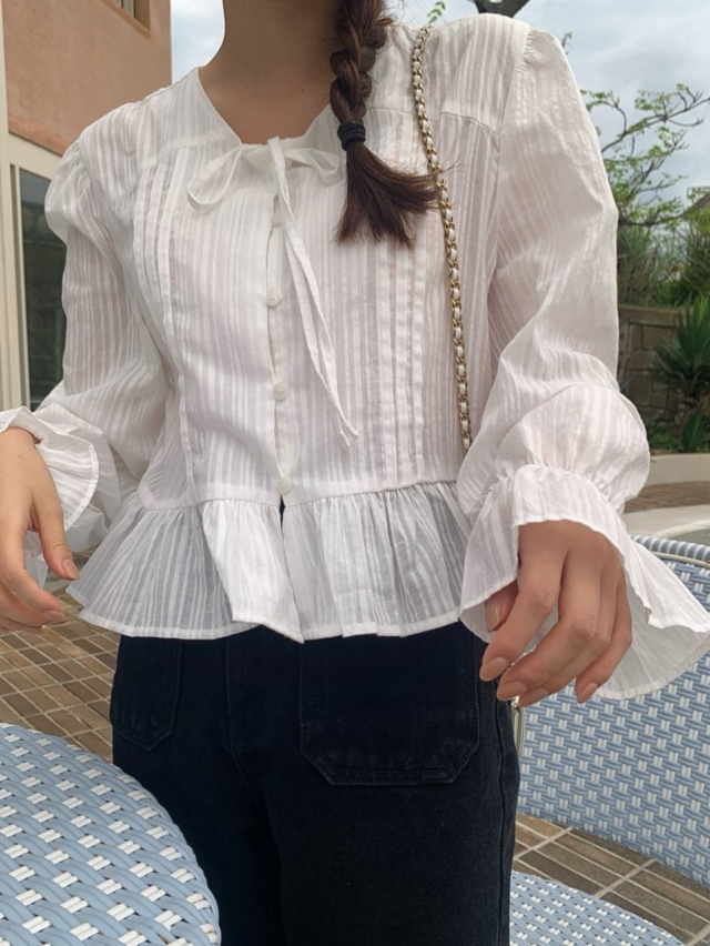 Mulverineオーバーサイズリボンフリルクロップドブラウス