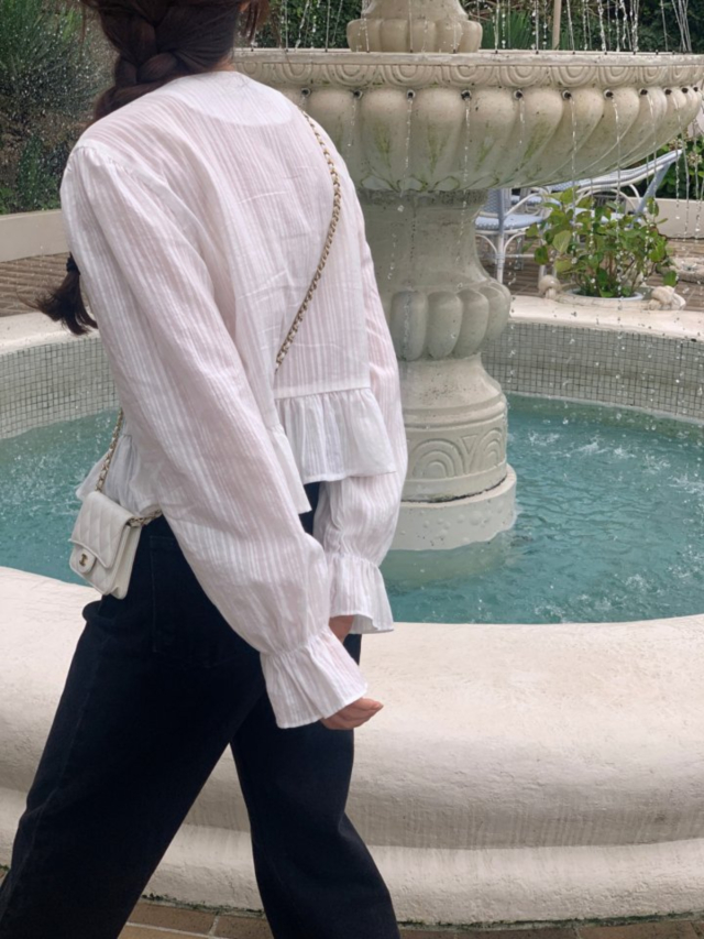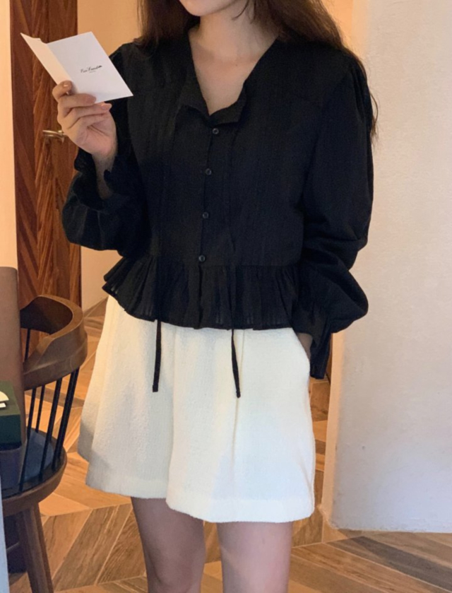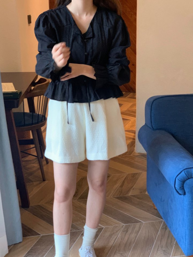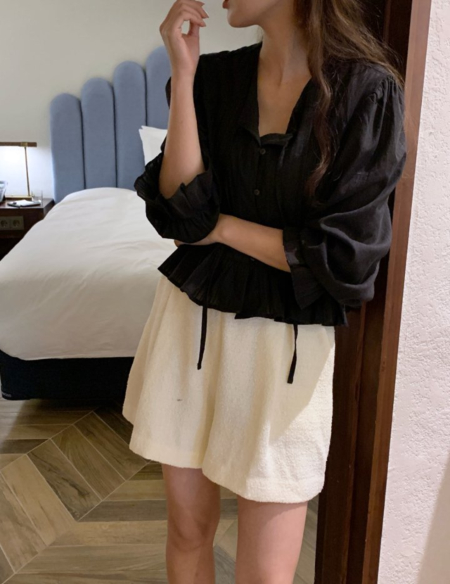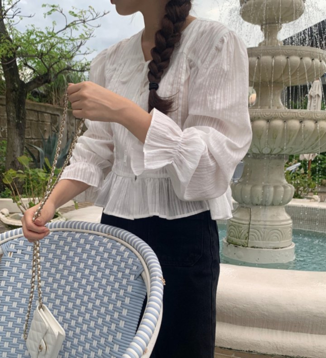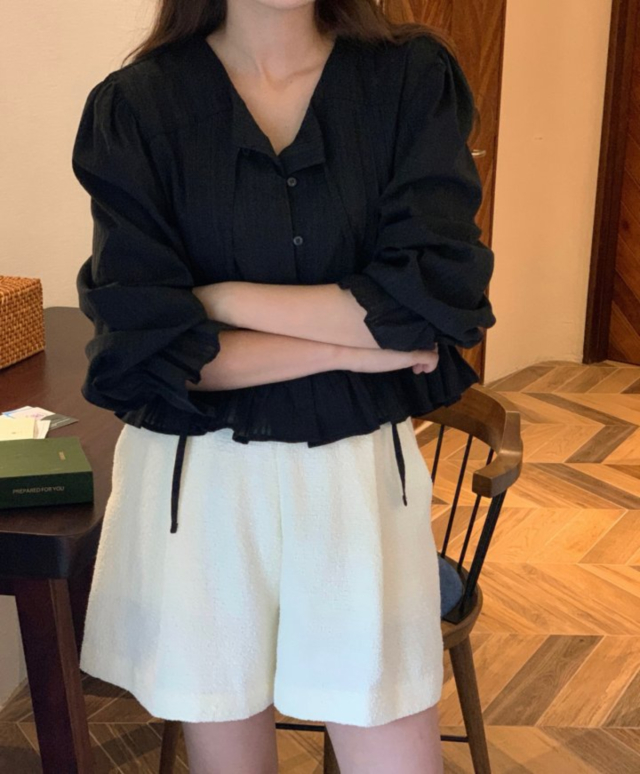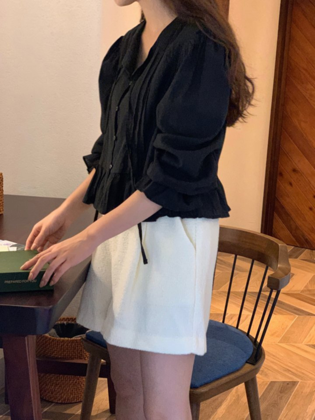 Mulverineオーバーサイズリボンフリルクロップドブラウス