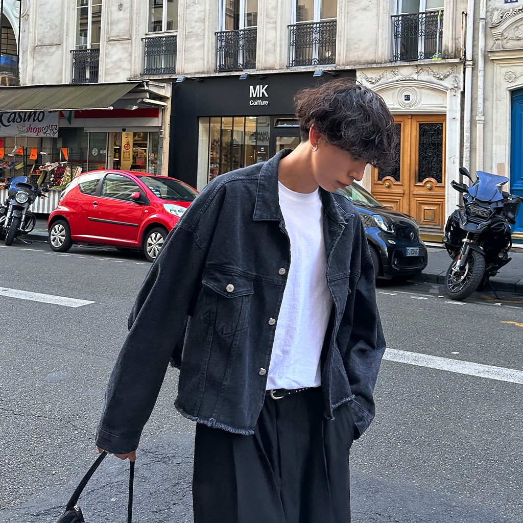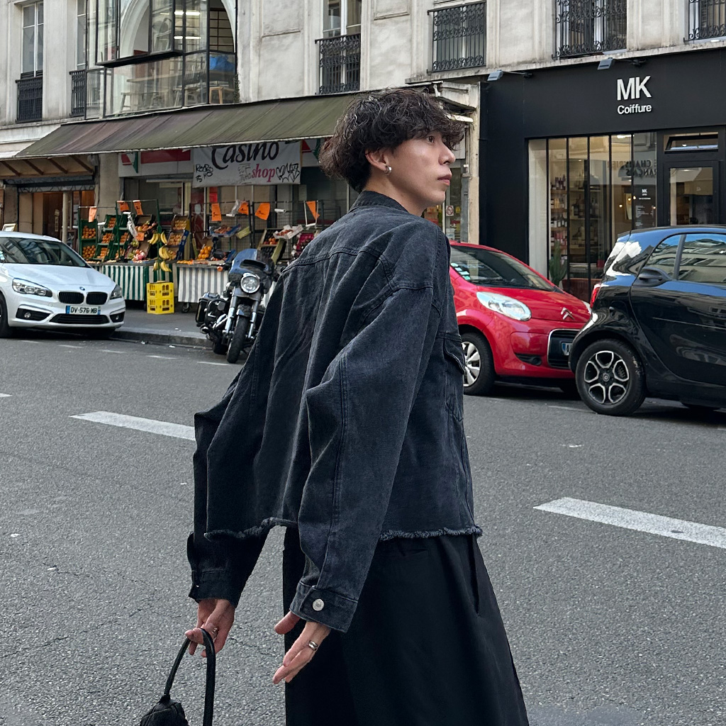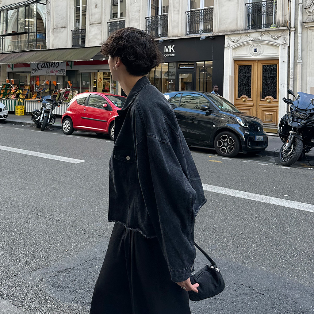 セミクロップダメージデニムジャケット