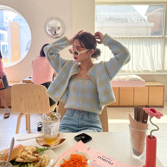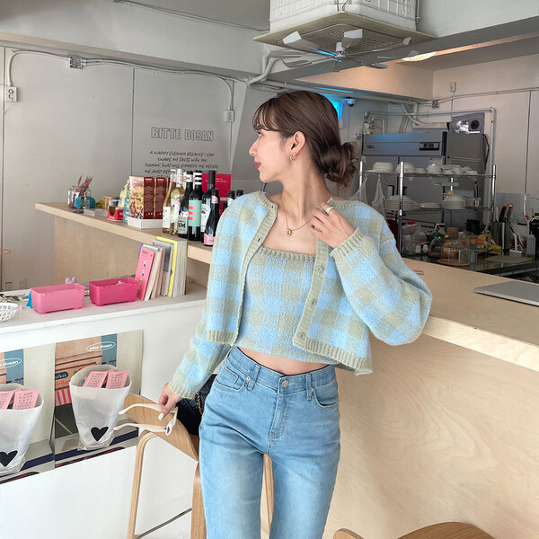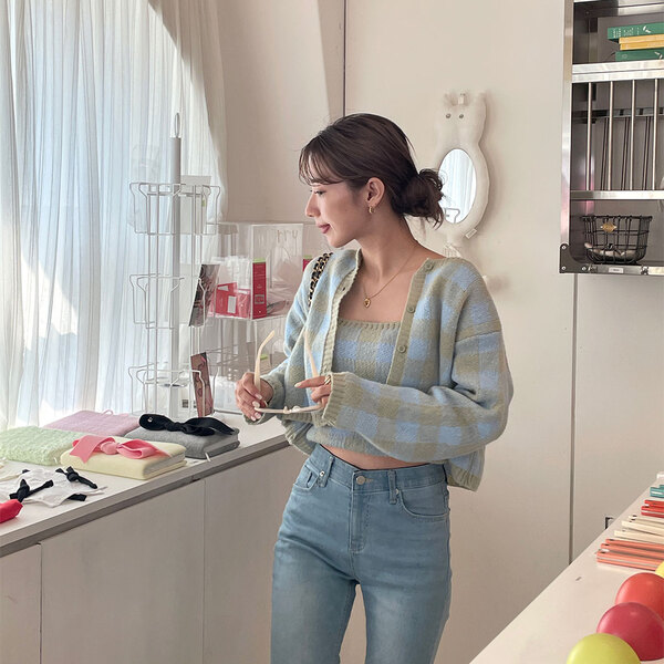 チェックカーディガンアンサンブル