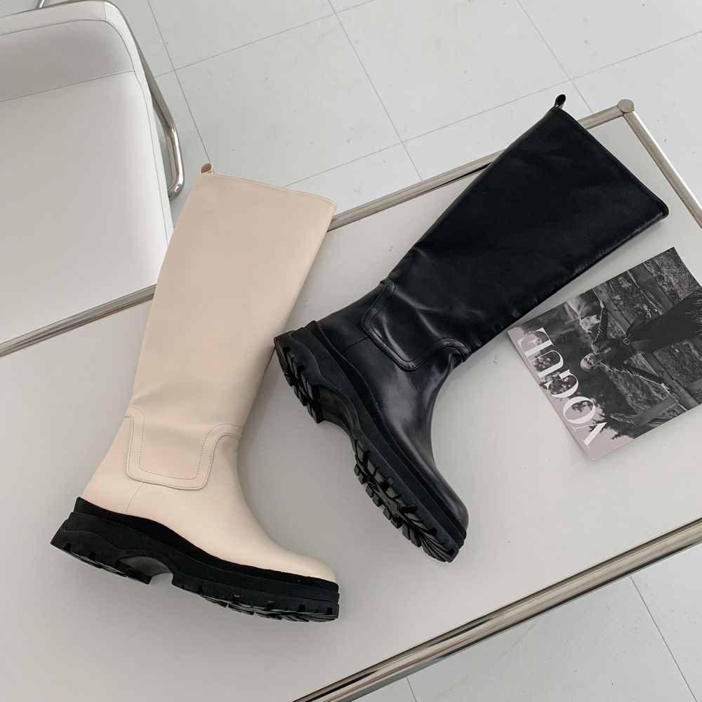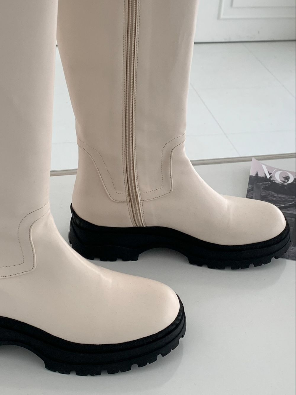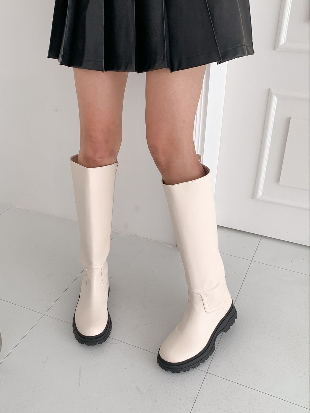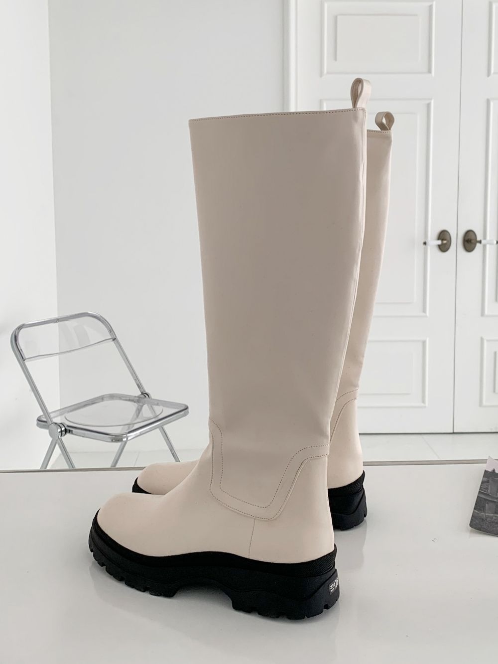 無地 Uネック ポリエステル ベーシック ソフト ロングブーツ