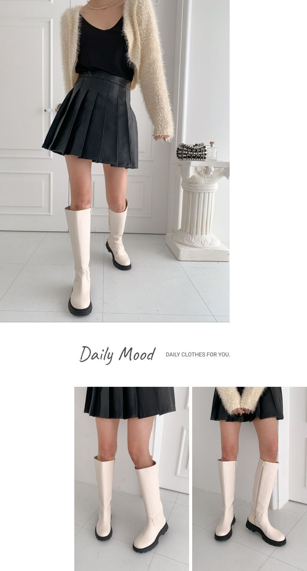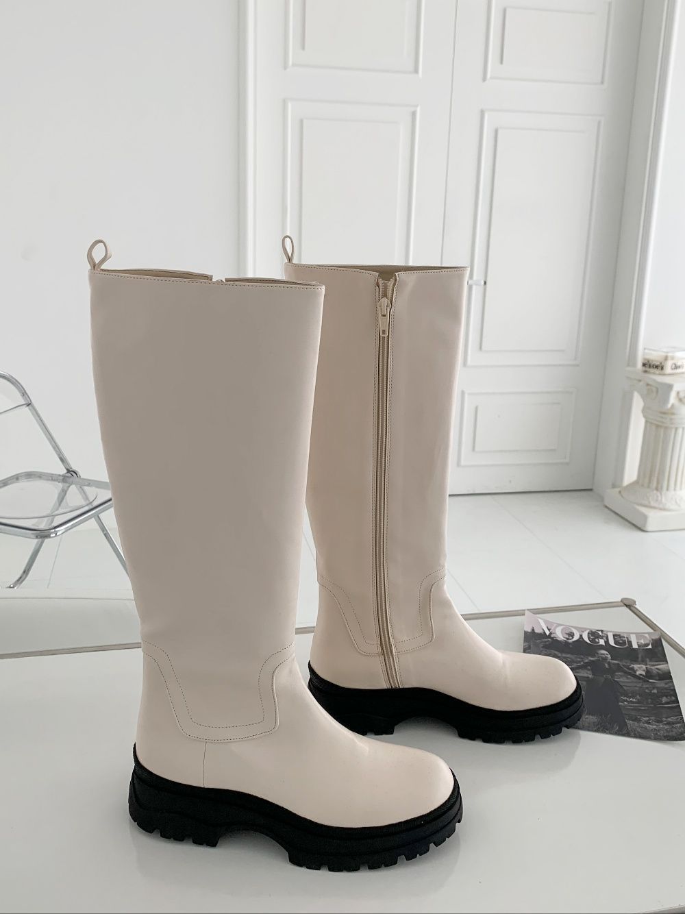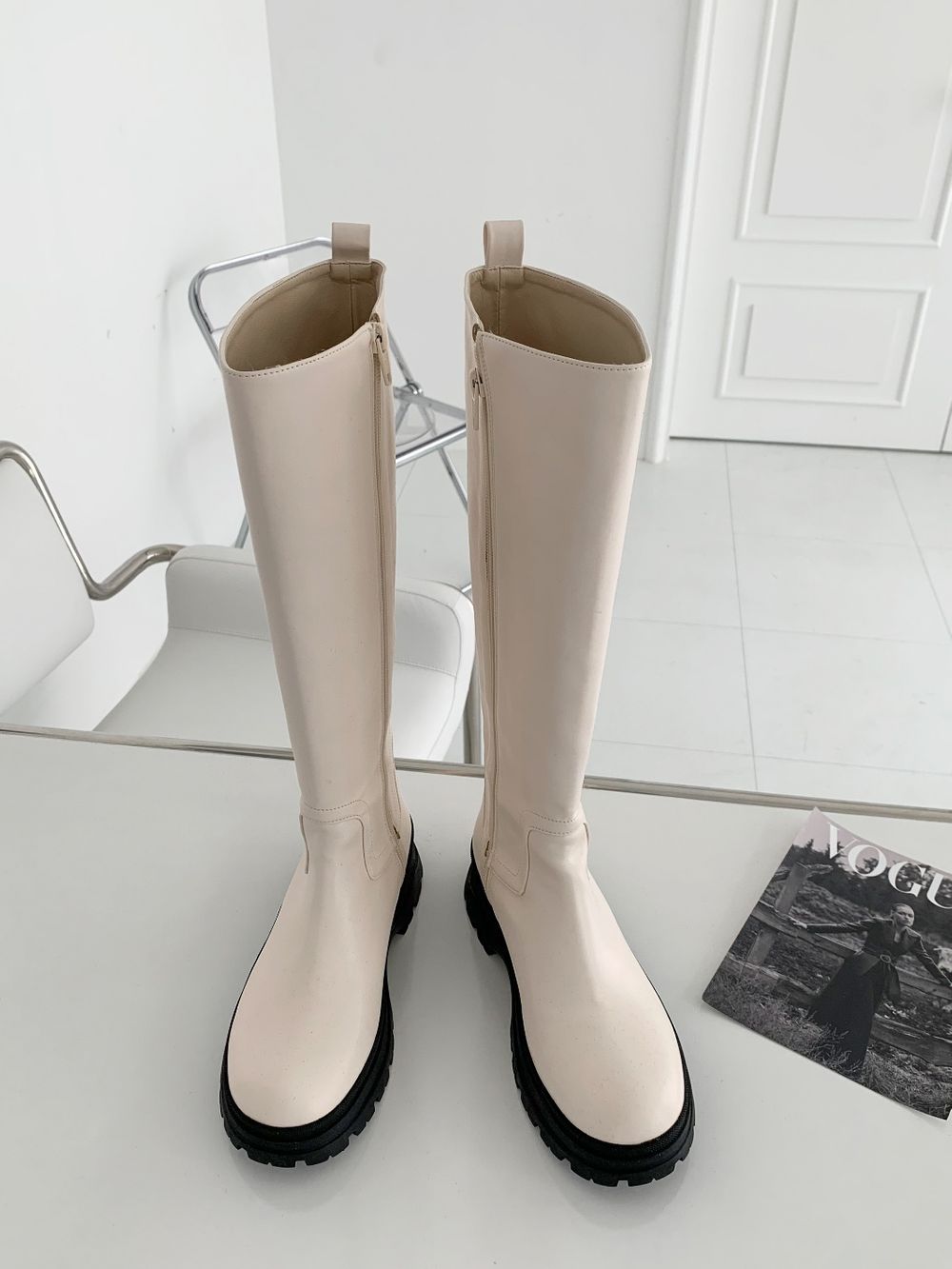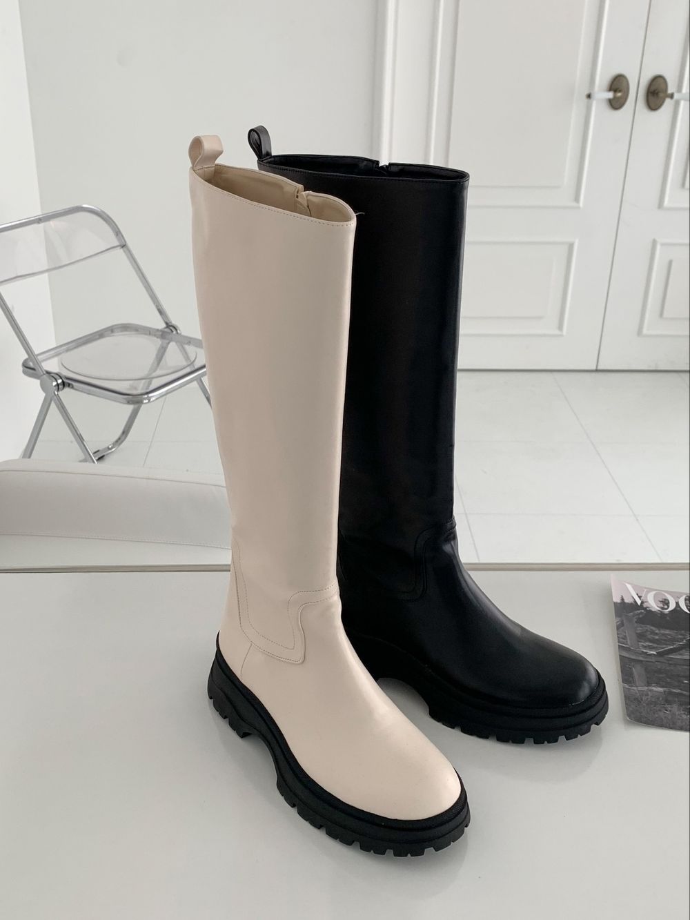 無地 Uネック ポリエステル ベーシック ソフト ロングブーツ