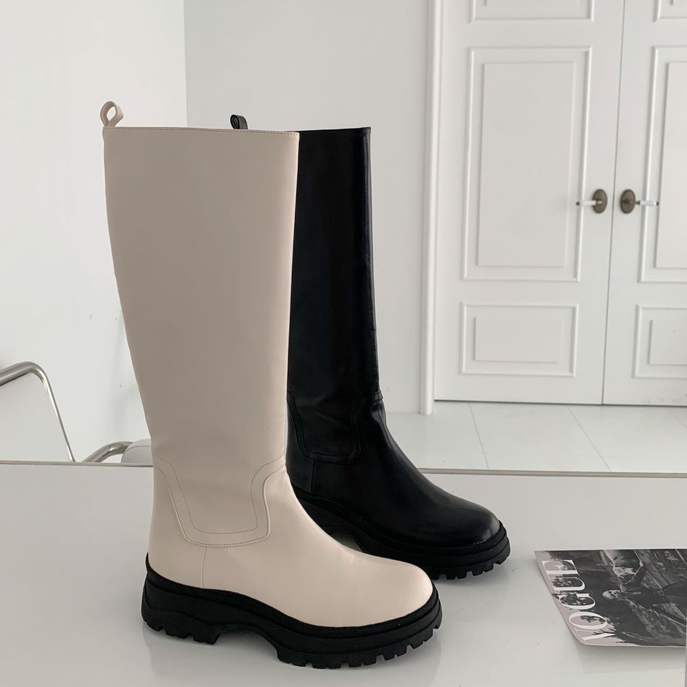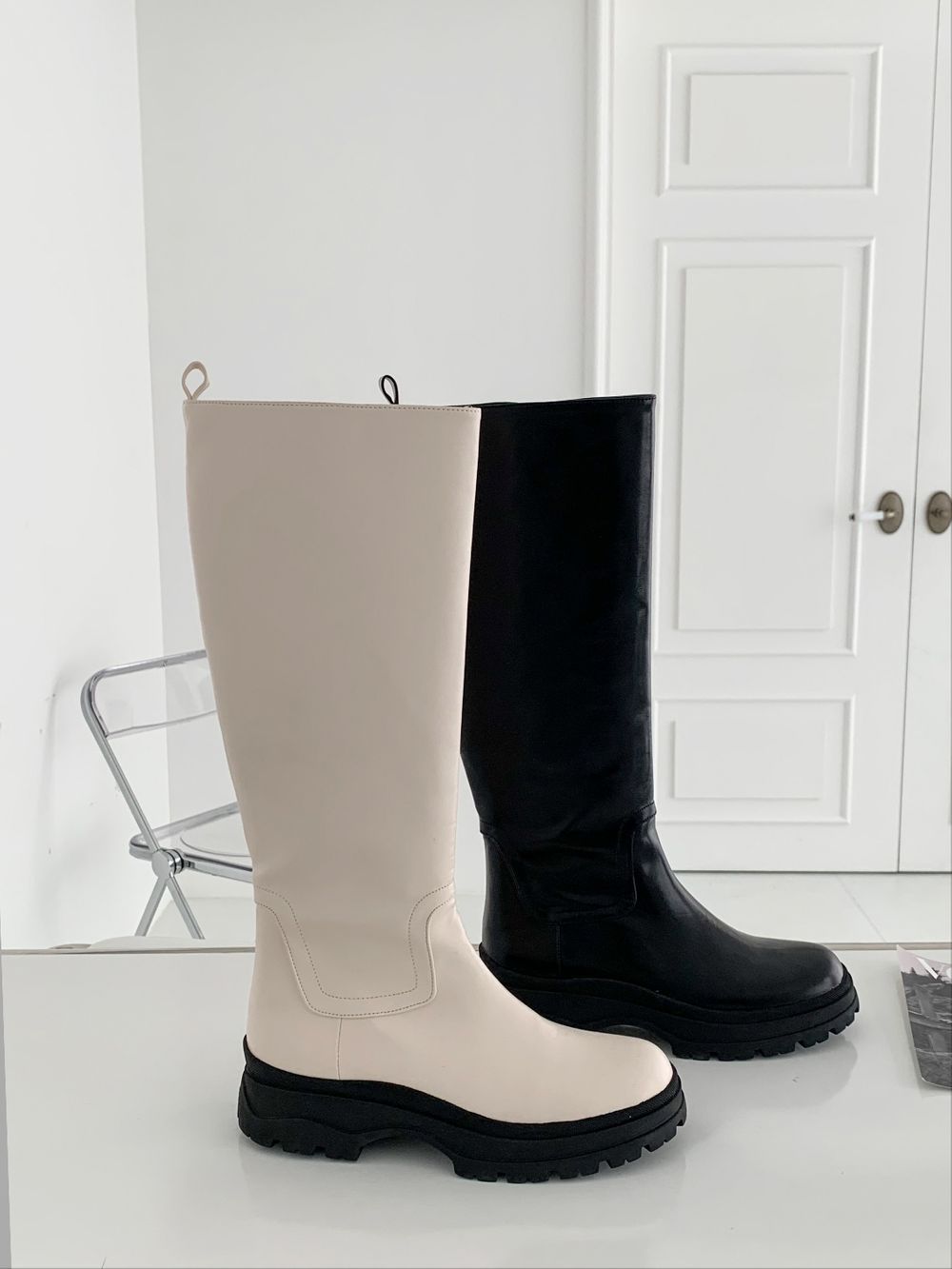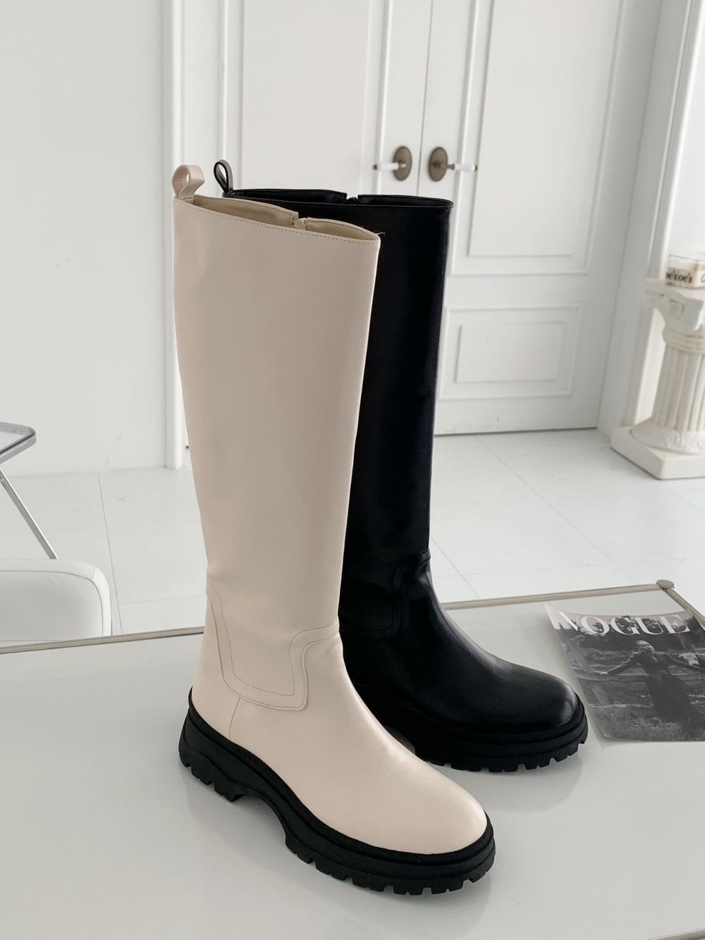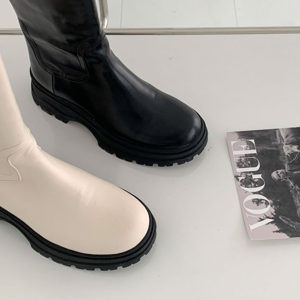 無地 Uネック ポリエステル ベーシック ソフト ロングブーツ