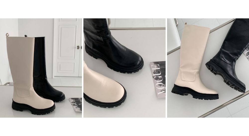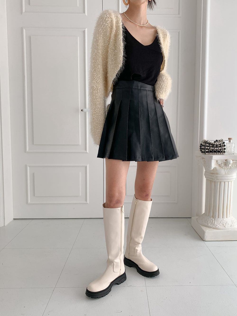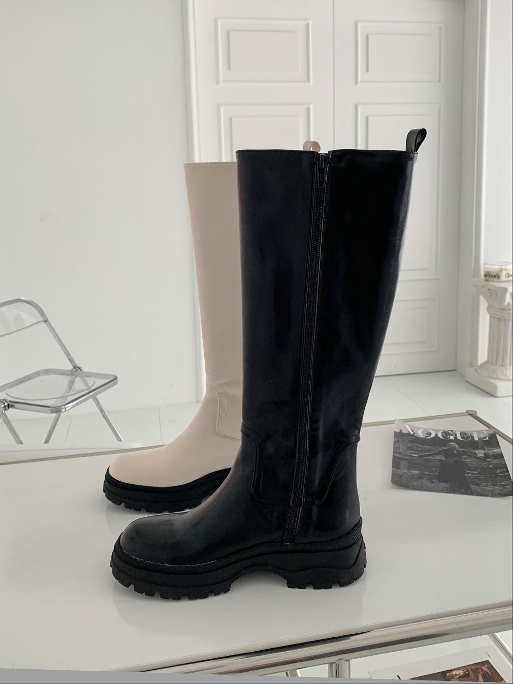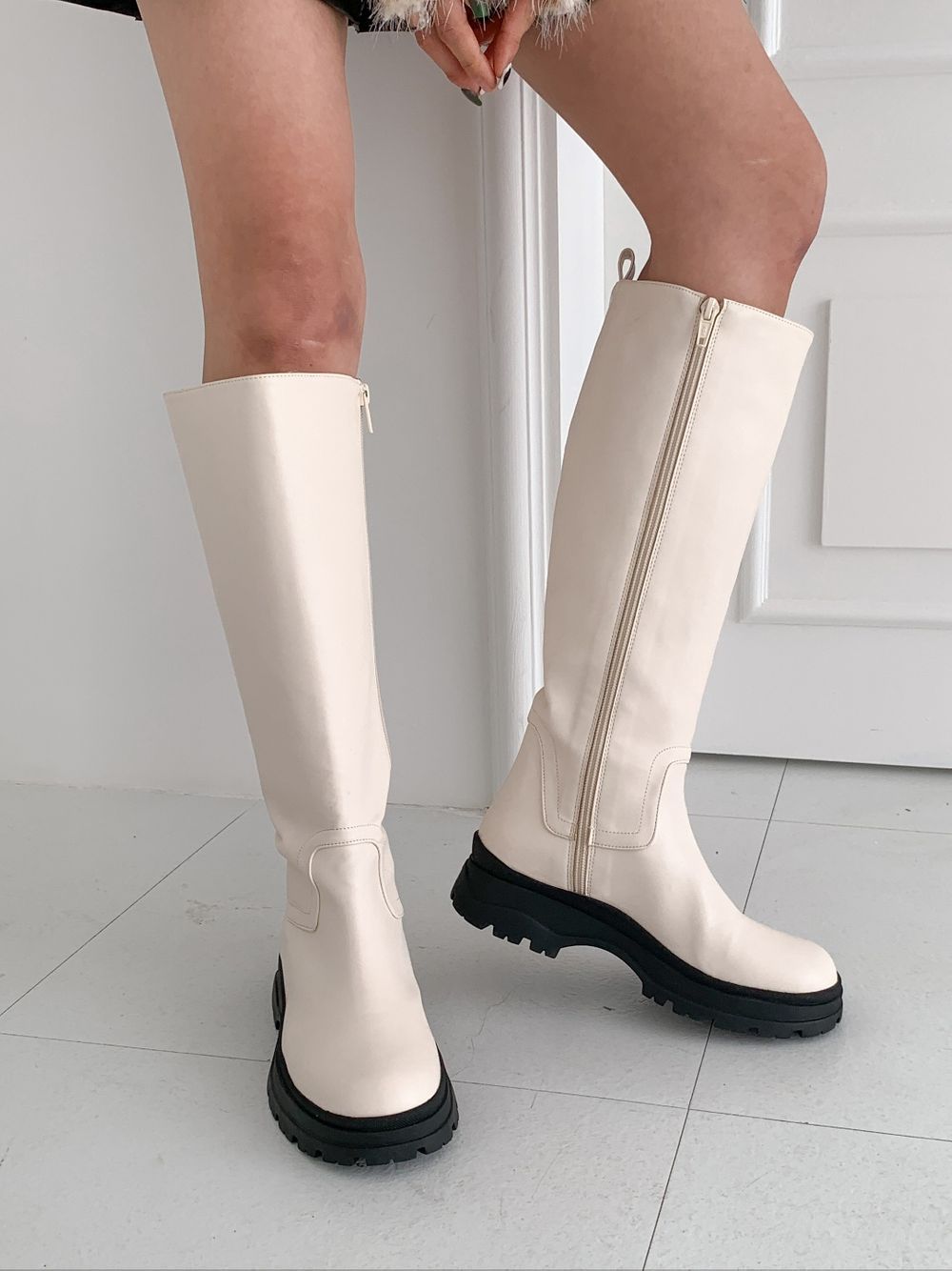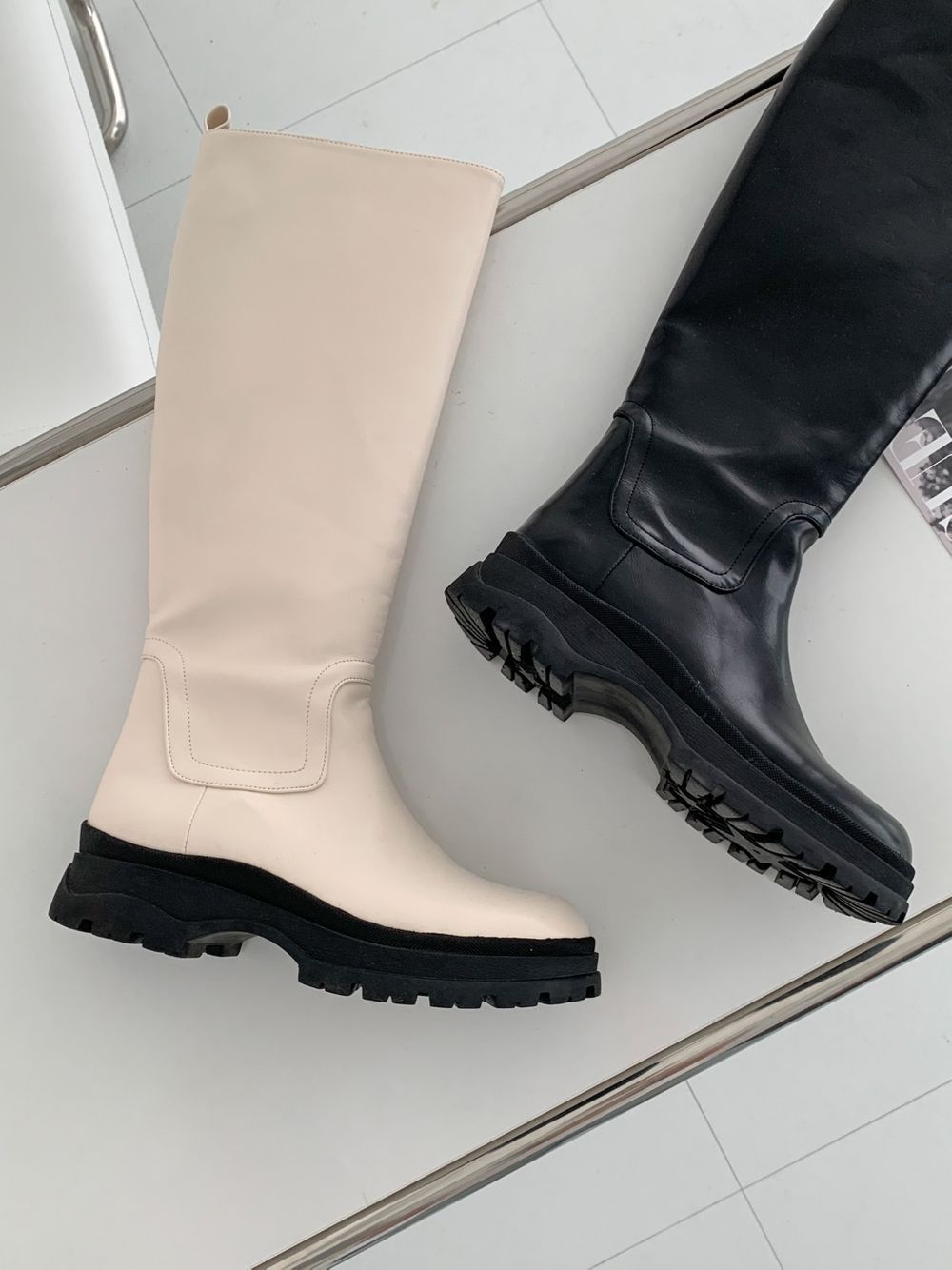 無地 Uネック ポリエステル ベーシック ソフト ロングブーツ