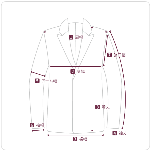 8 着丈 | 79.5 31.5 | 80.5 31.5 | 81.5 32 | 82.5 32.5 | 83.5 33 |