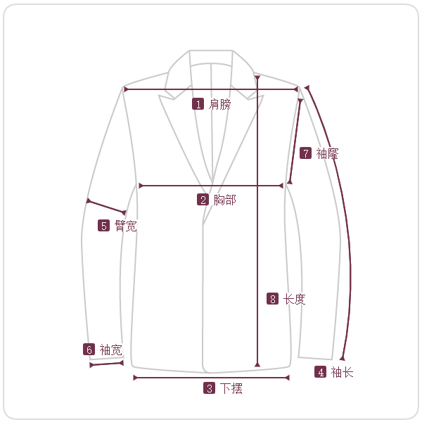 2 身幅 | 49.5 19.5 | 51.5 20.5 | 53.5 21 | 55.5 22 | 57.5 22.5 |