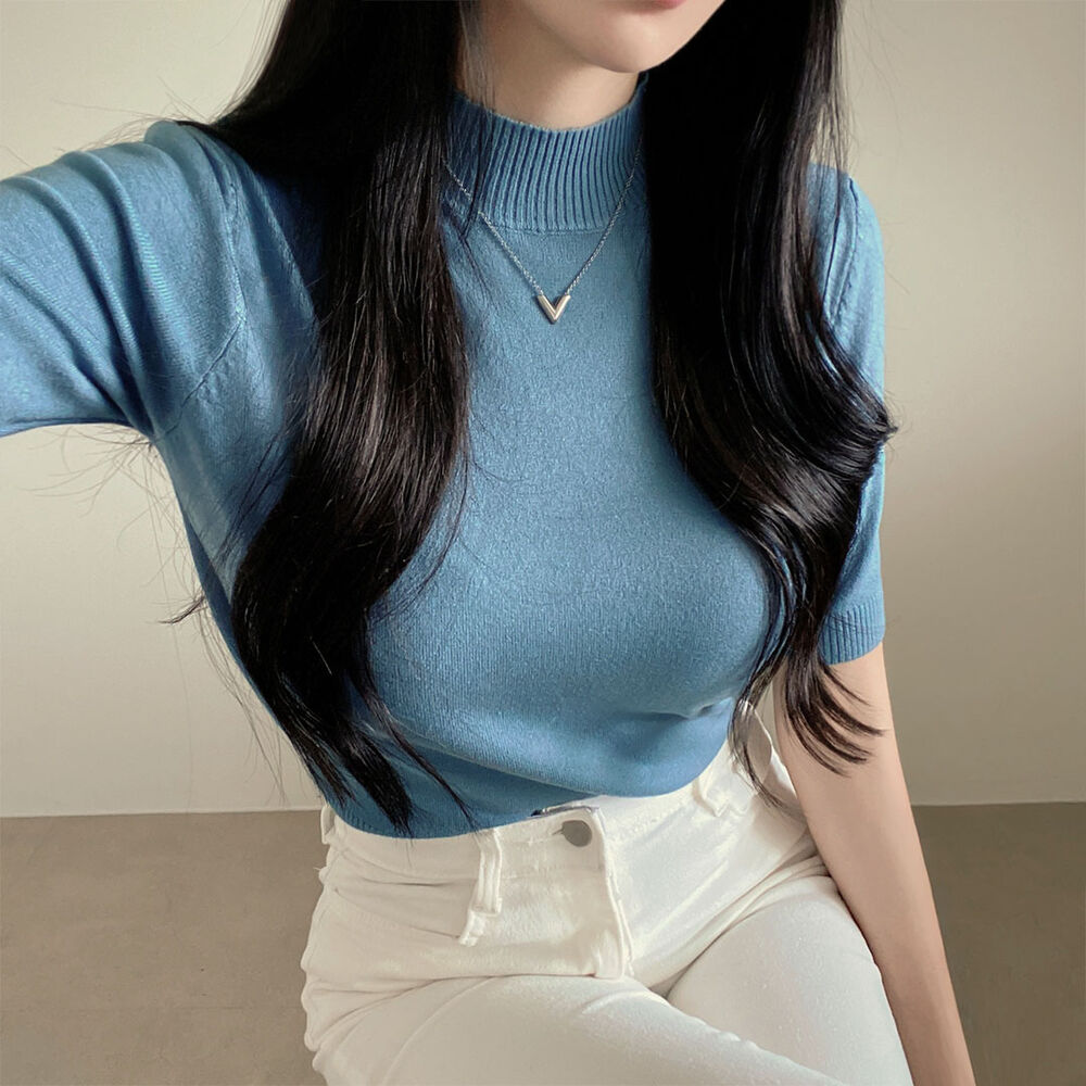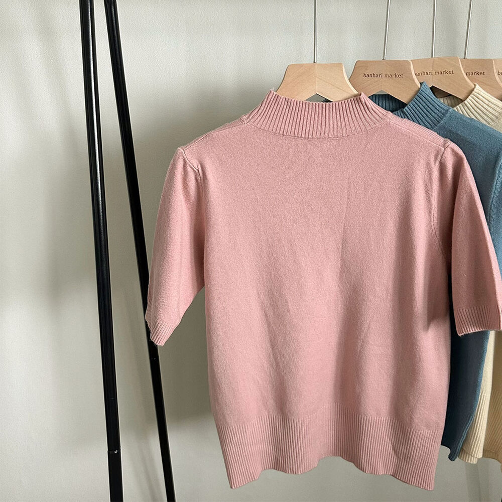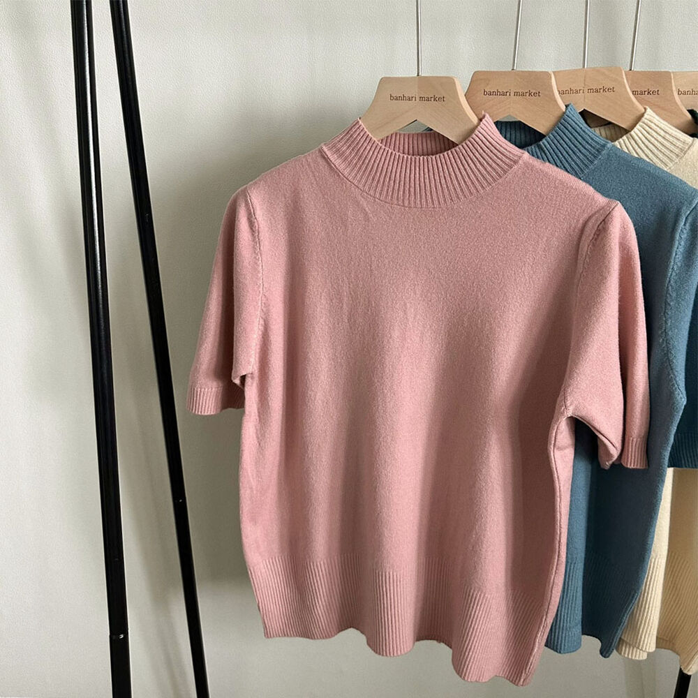 (6color)ハーフネック無地デイリー半袖ニット(秋の新商品)