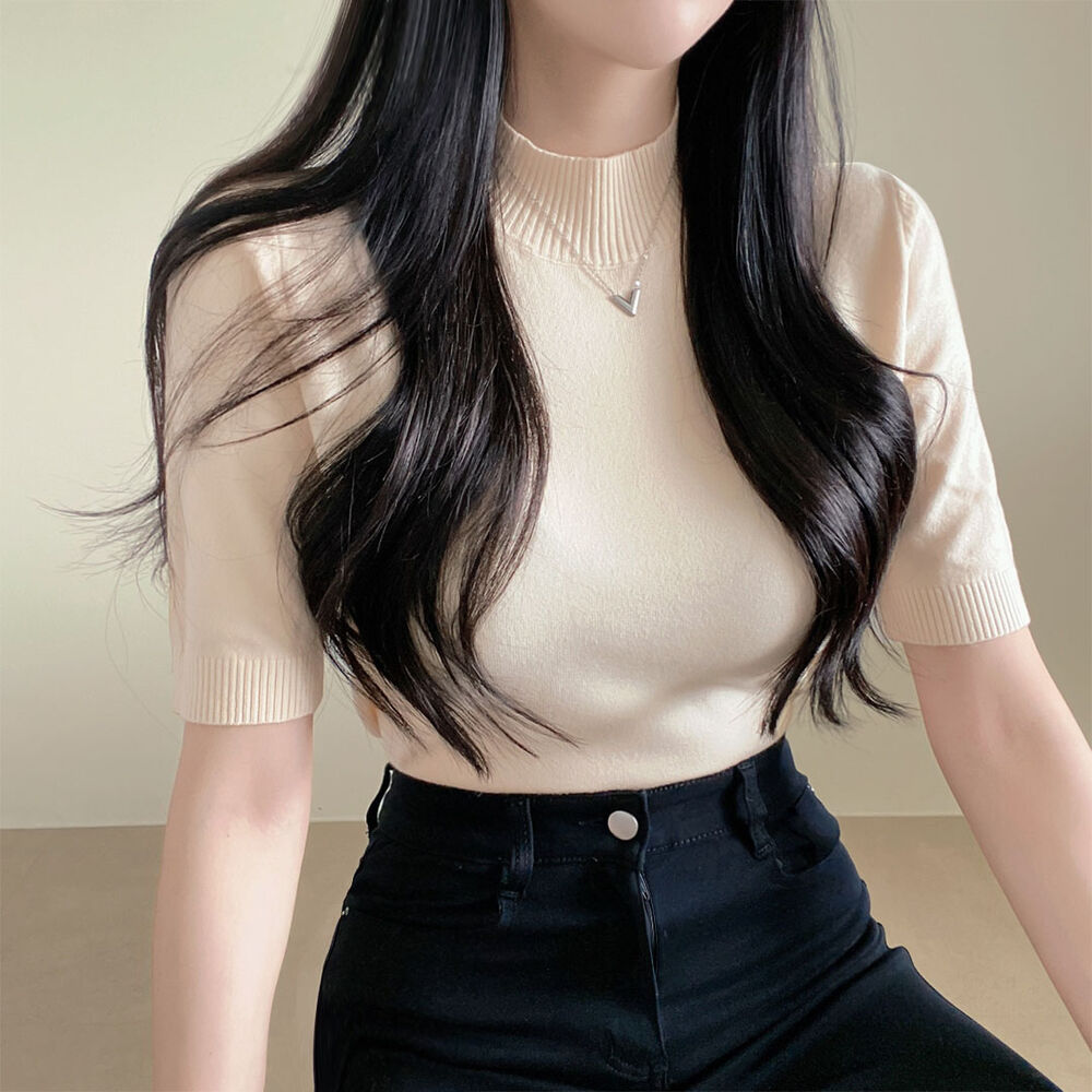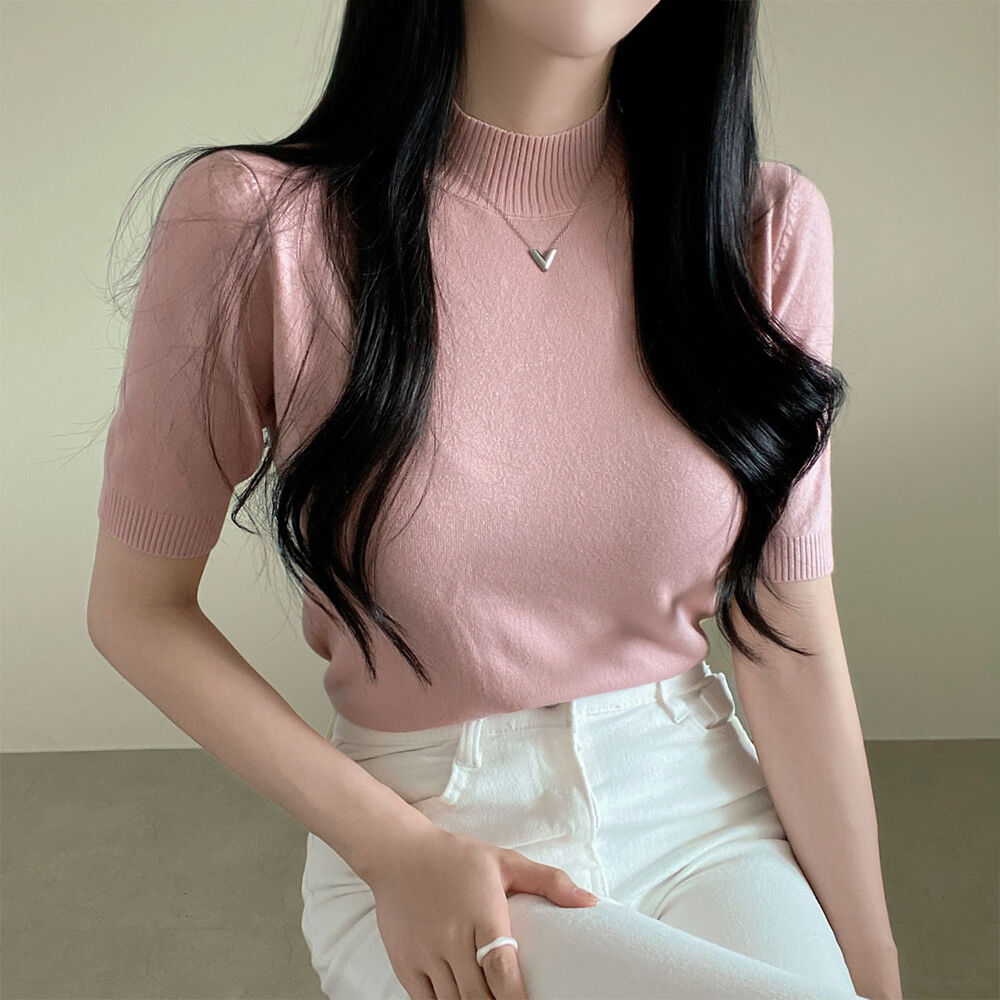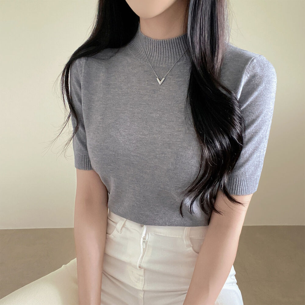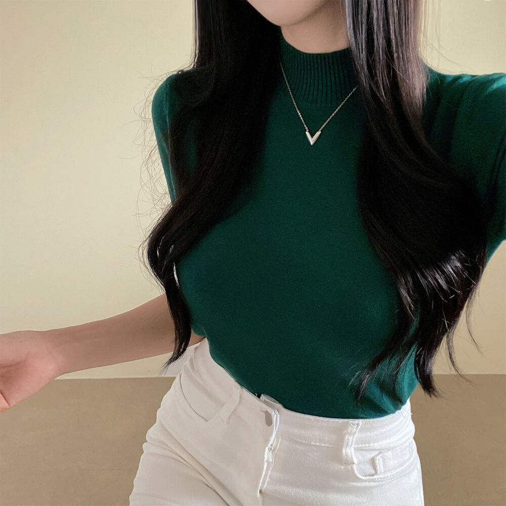 (6color)ハーフネック無地デイリー半袖ニット(秋の新商品)