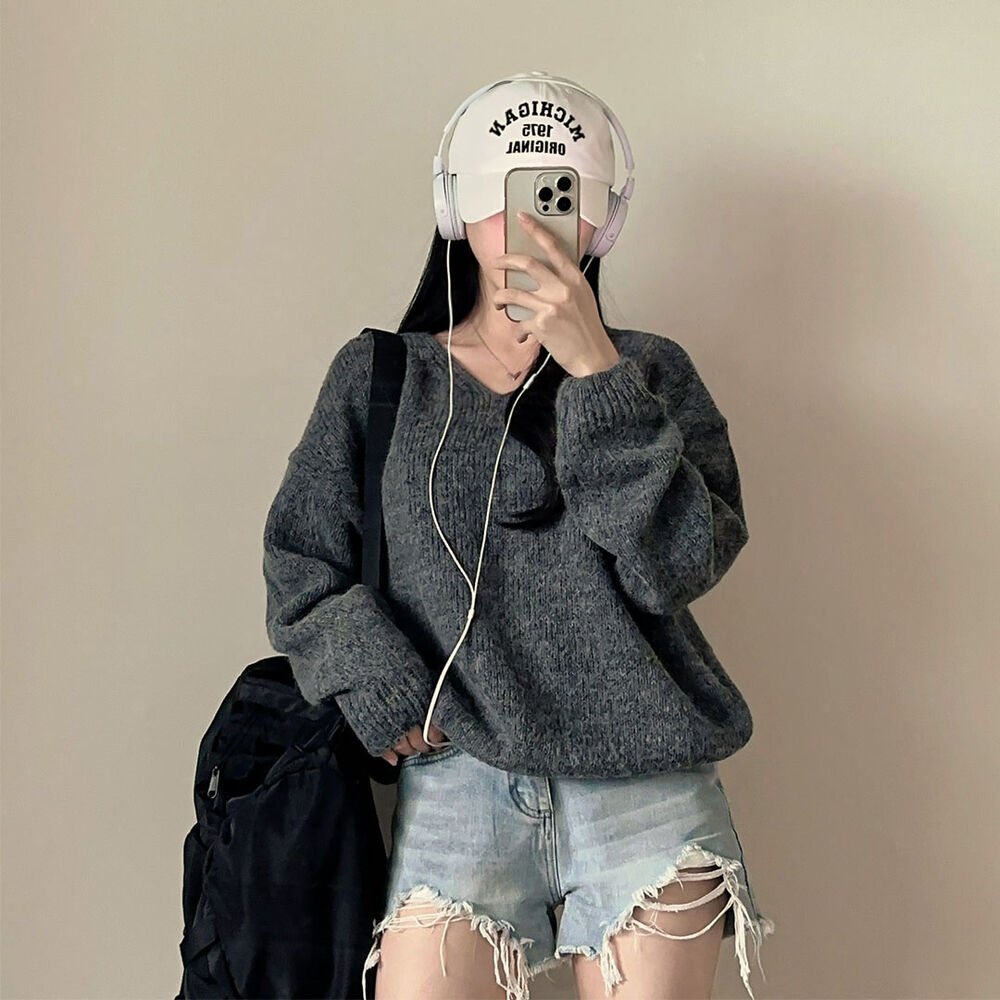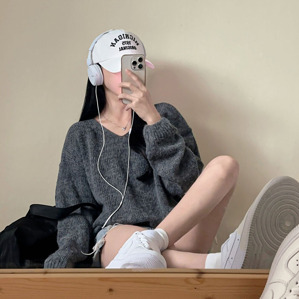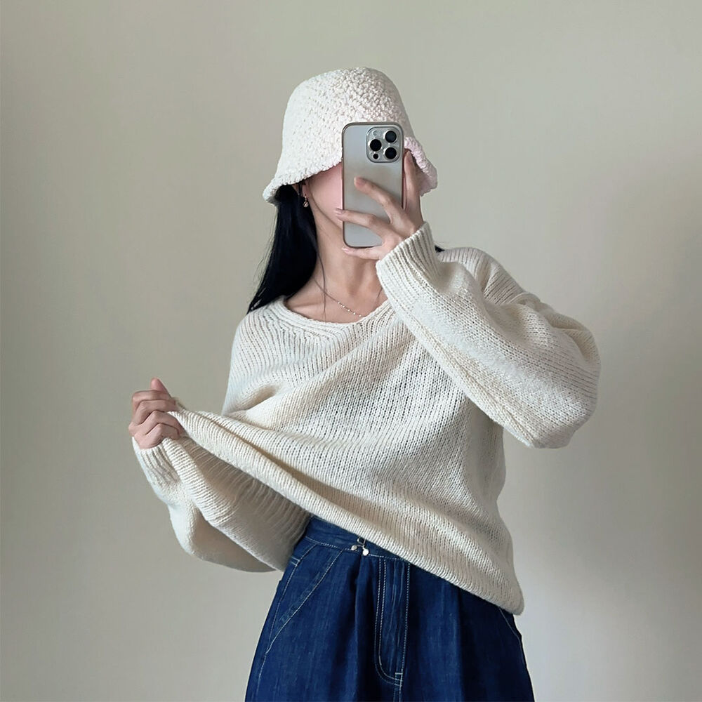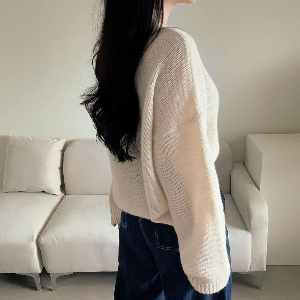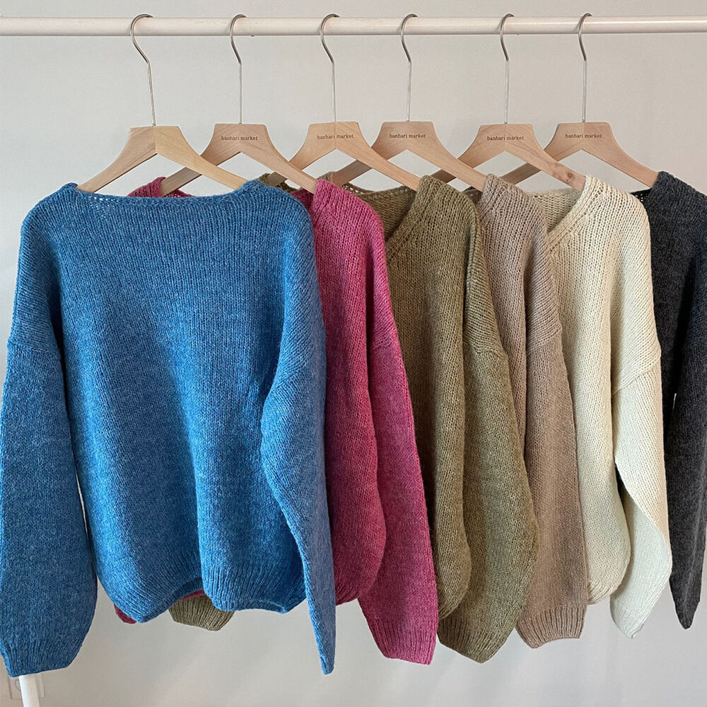(6color)ウール+アルパカオーバーサイズVネック無地長袖ニット(秋の新商品)