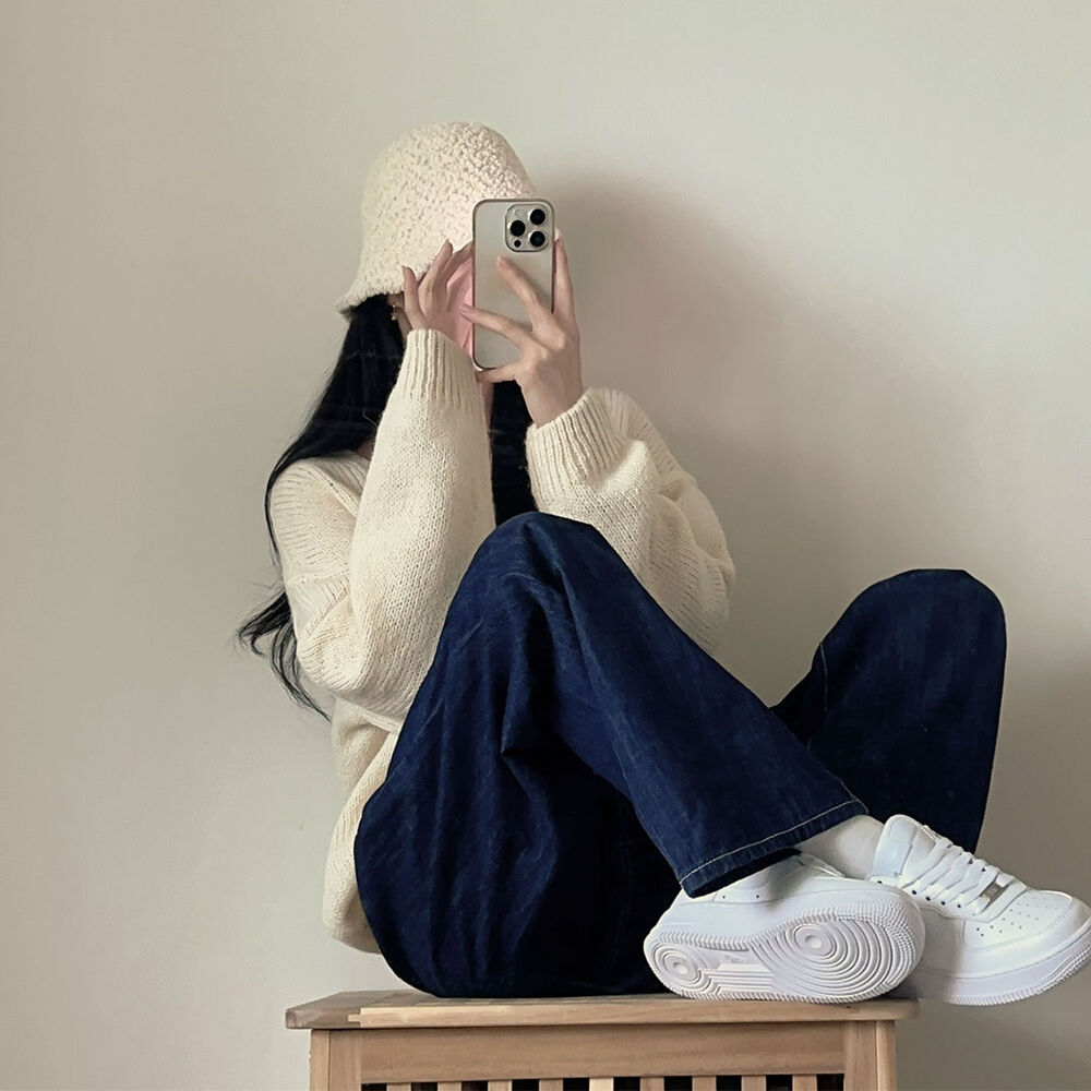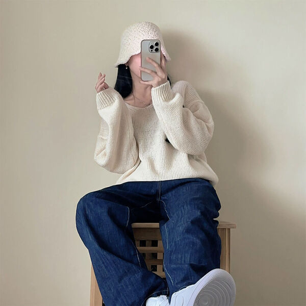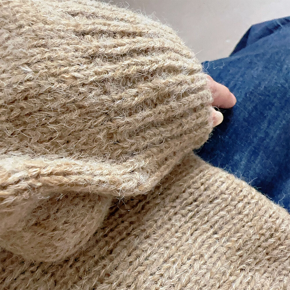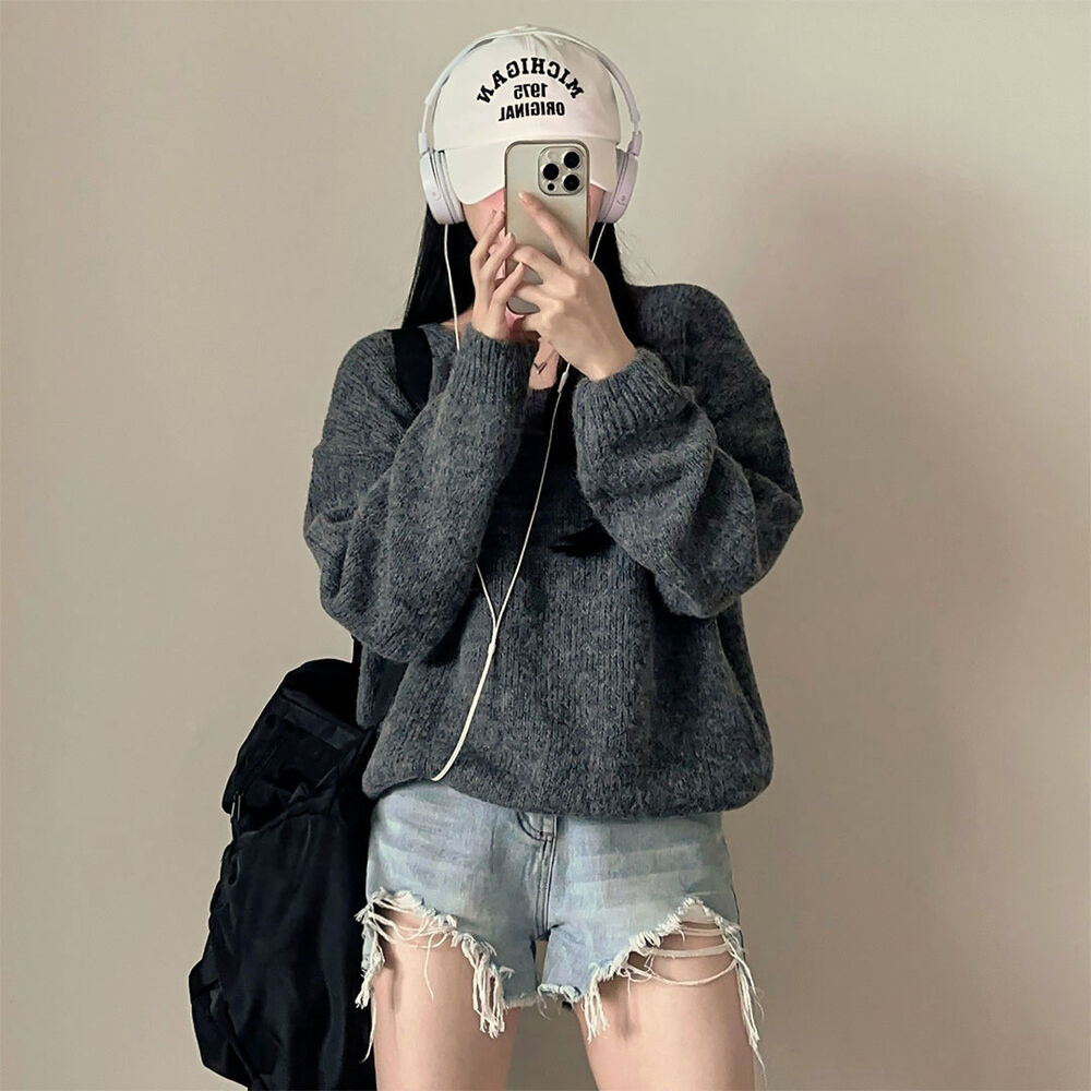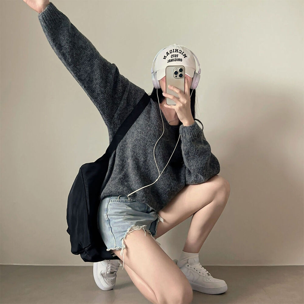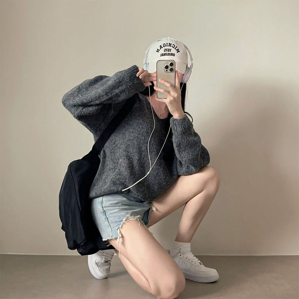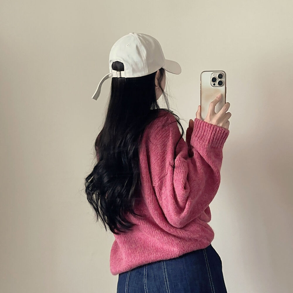 (6color)ウール+アルパカオーバーサイズVネック無地長袖ニット(秋の新商品)