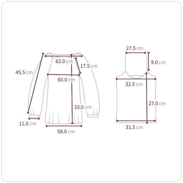 - 上記のサイズ情報は「平置きして採寸した長さ」です。
