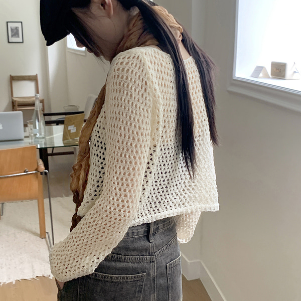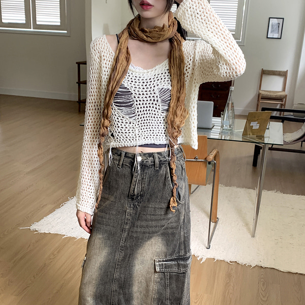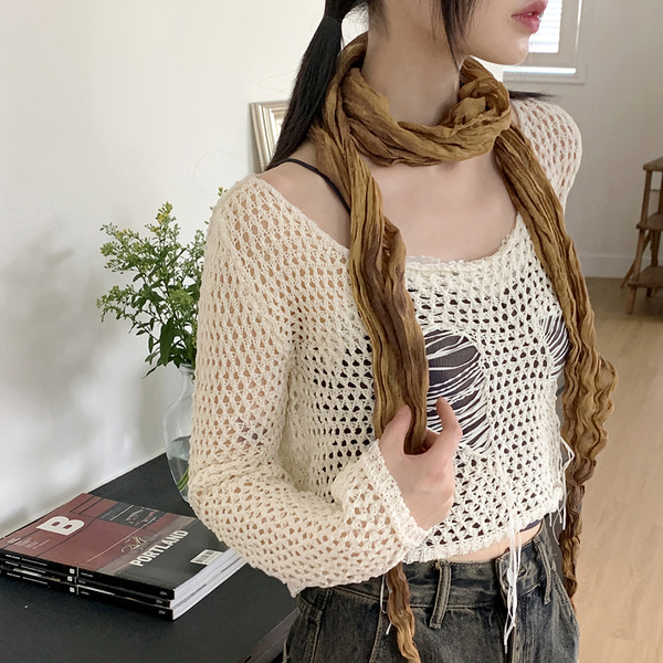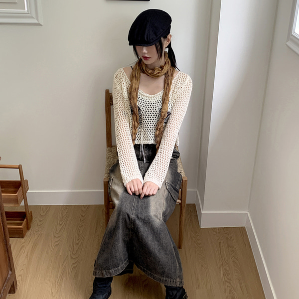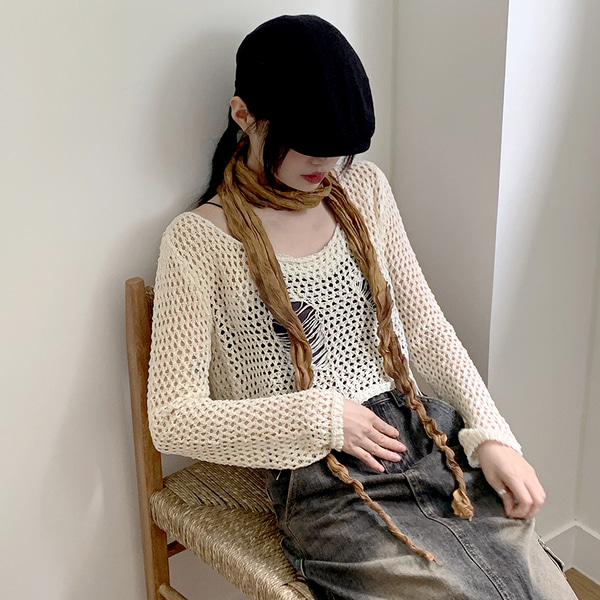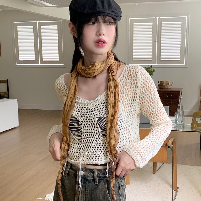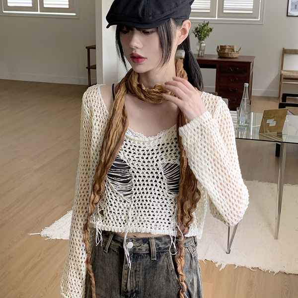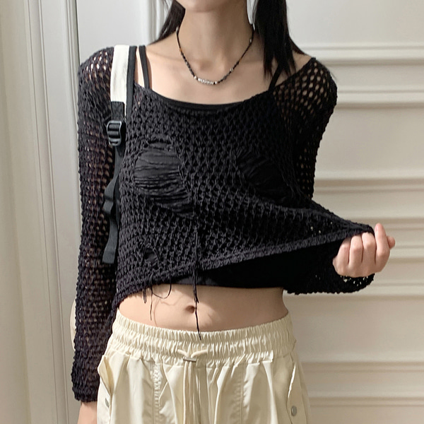 ヴィンテージダメージネットメッシュクロップド長袖ニット