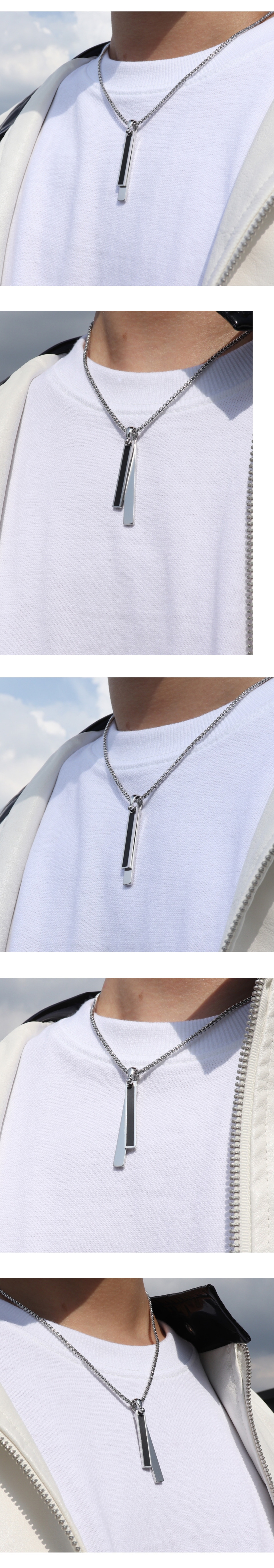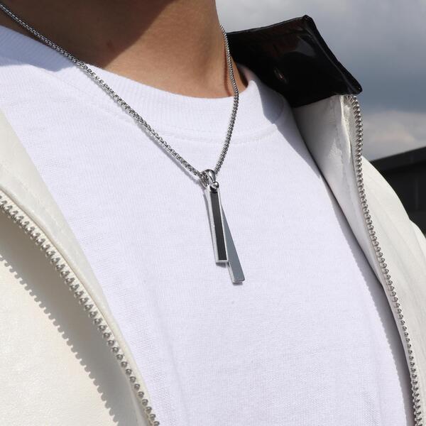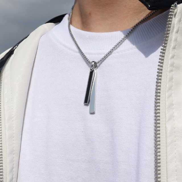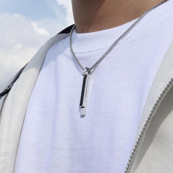 メンズネックレスブラックシルバーサージカルステンレス