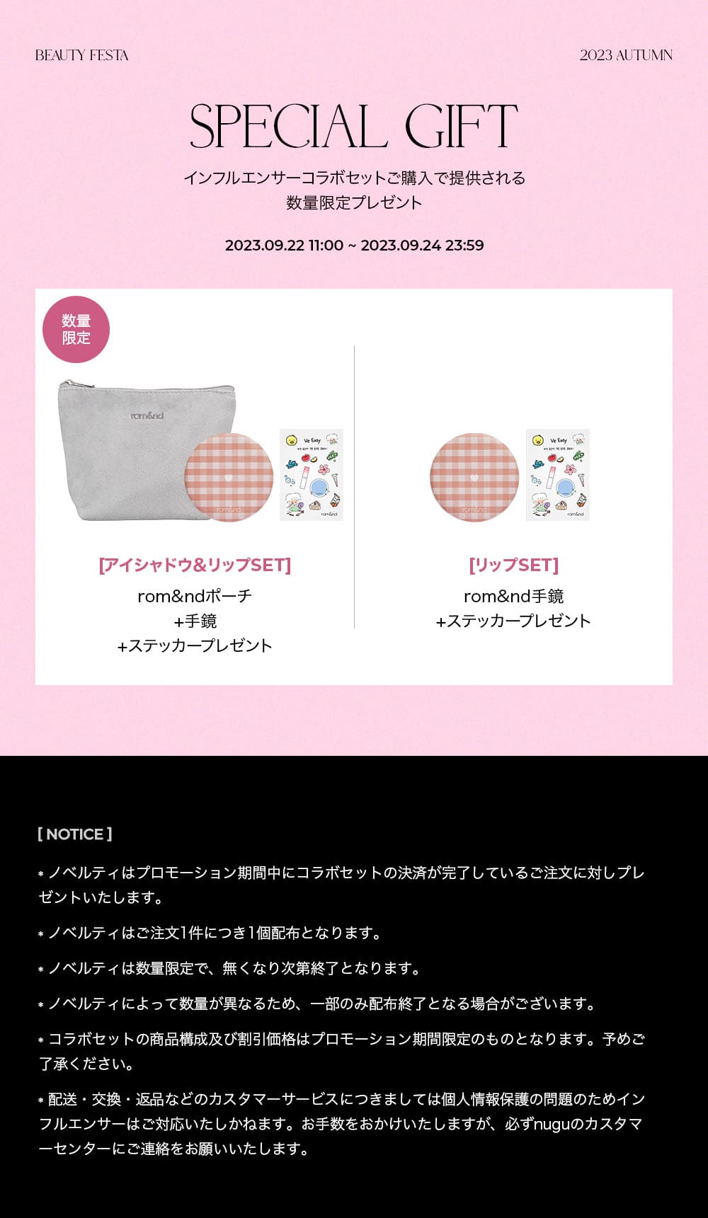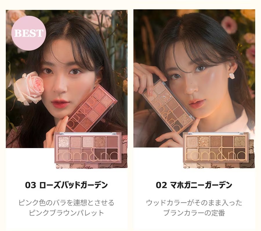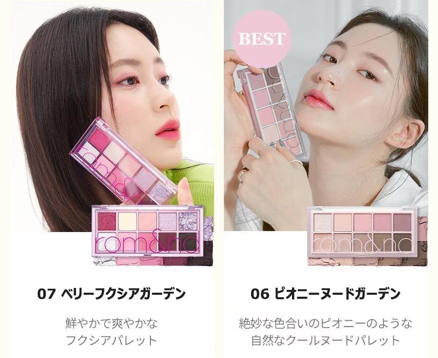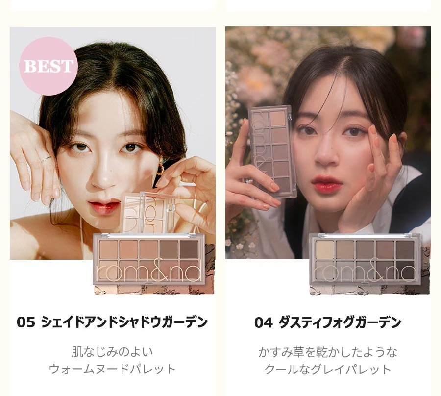[アイシャドウ&リップSET]ロムアンドベターザンパレット(1種選択)+ロムアンドジューシーラスティングティント(1種選択)+グラスティングメルティングバーム(1種選択)