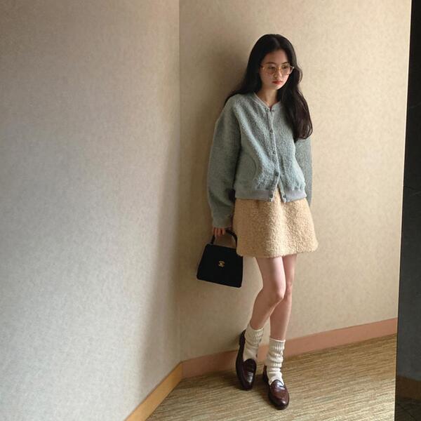 [Dearest] BloomブークレAラインミニスカート(ベージュ)