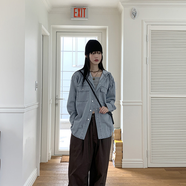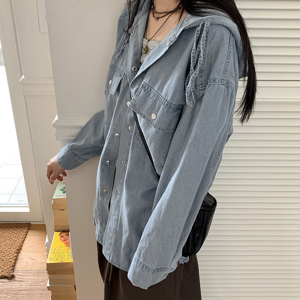 フード付きデニムジャケットシャツ