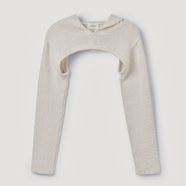 KNIT CROPPED HOODIE MUFFLER SET DOVE
