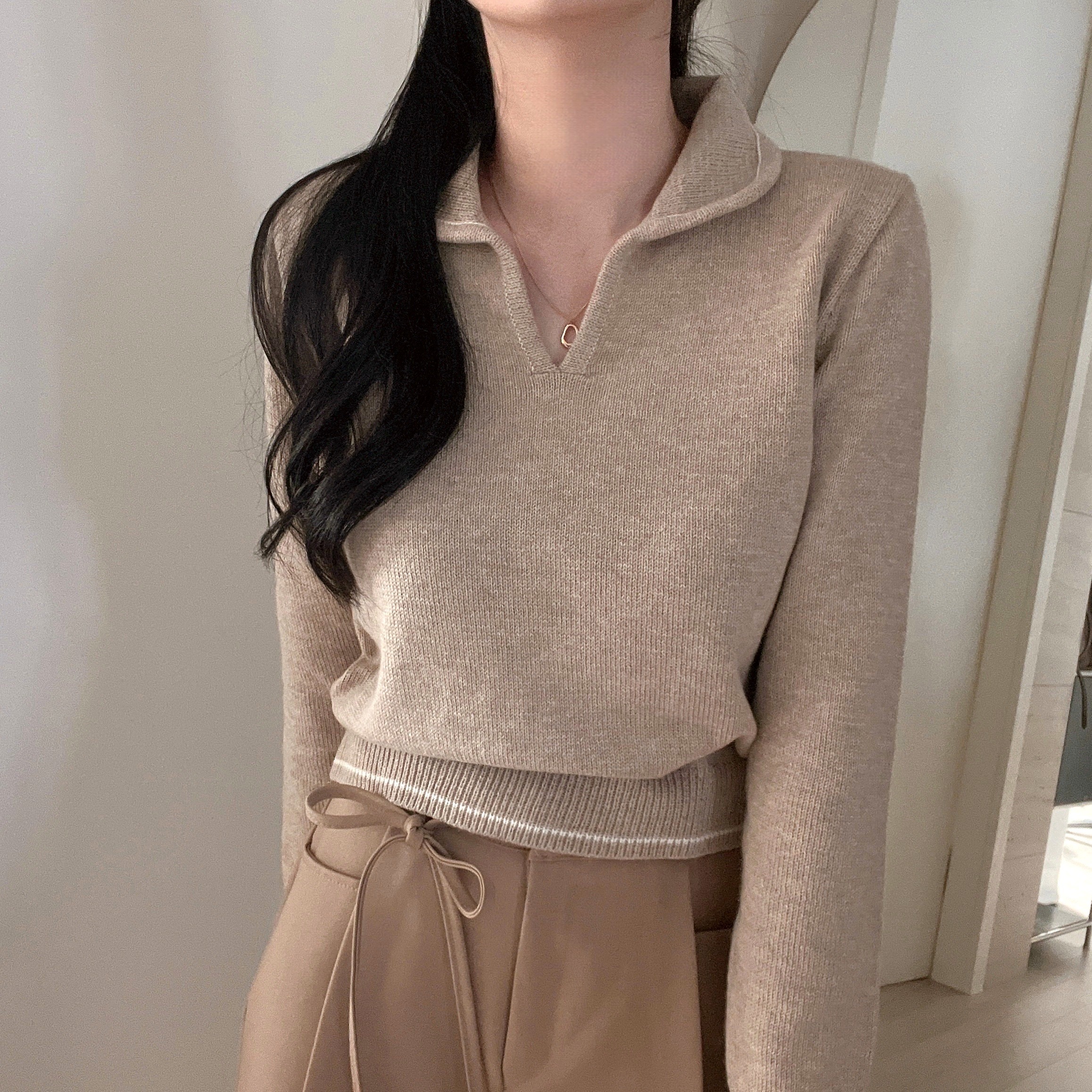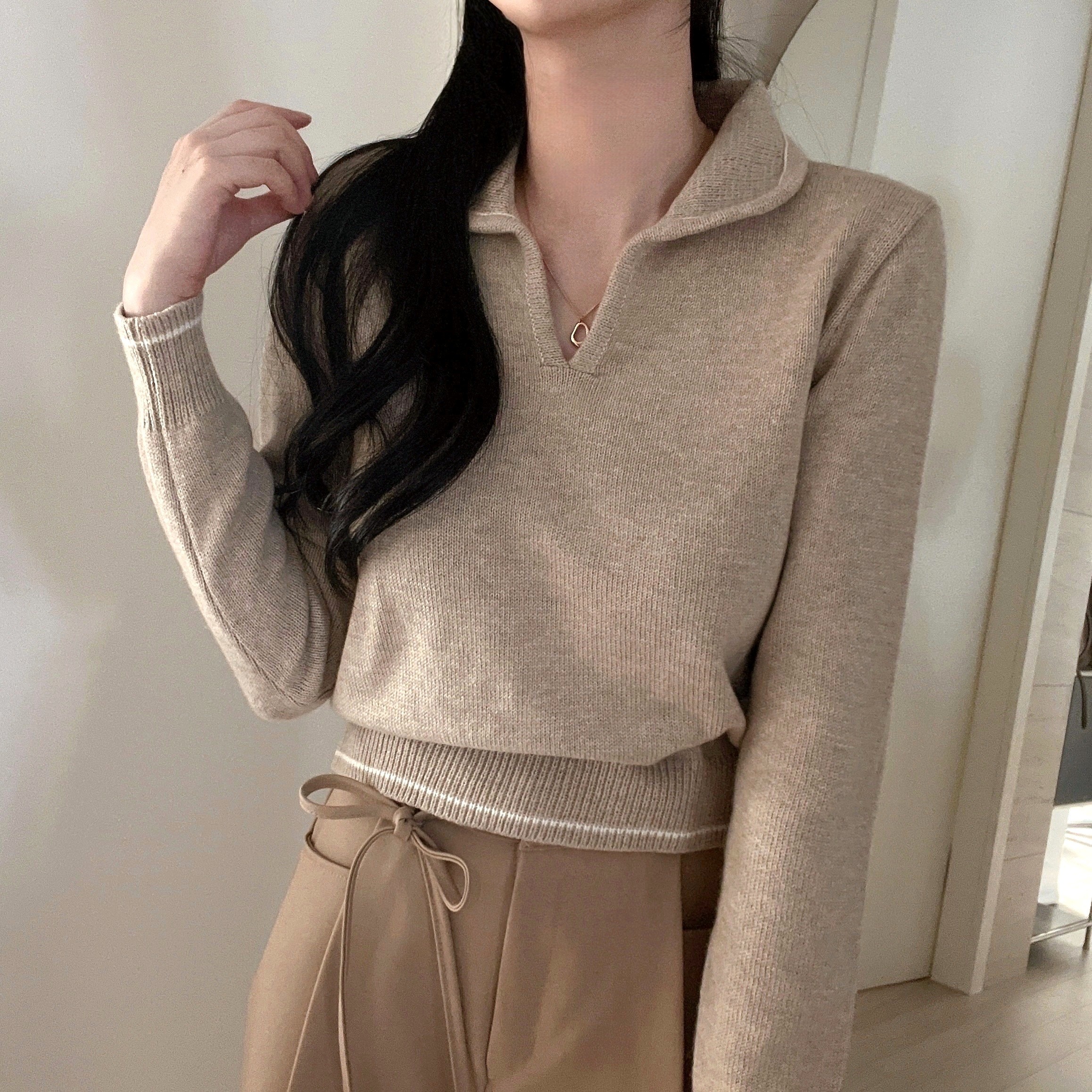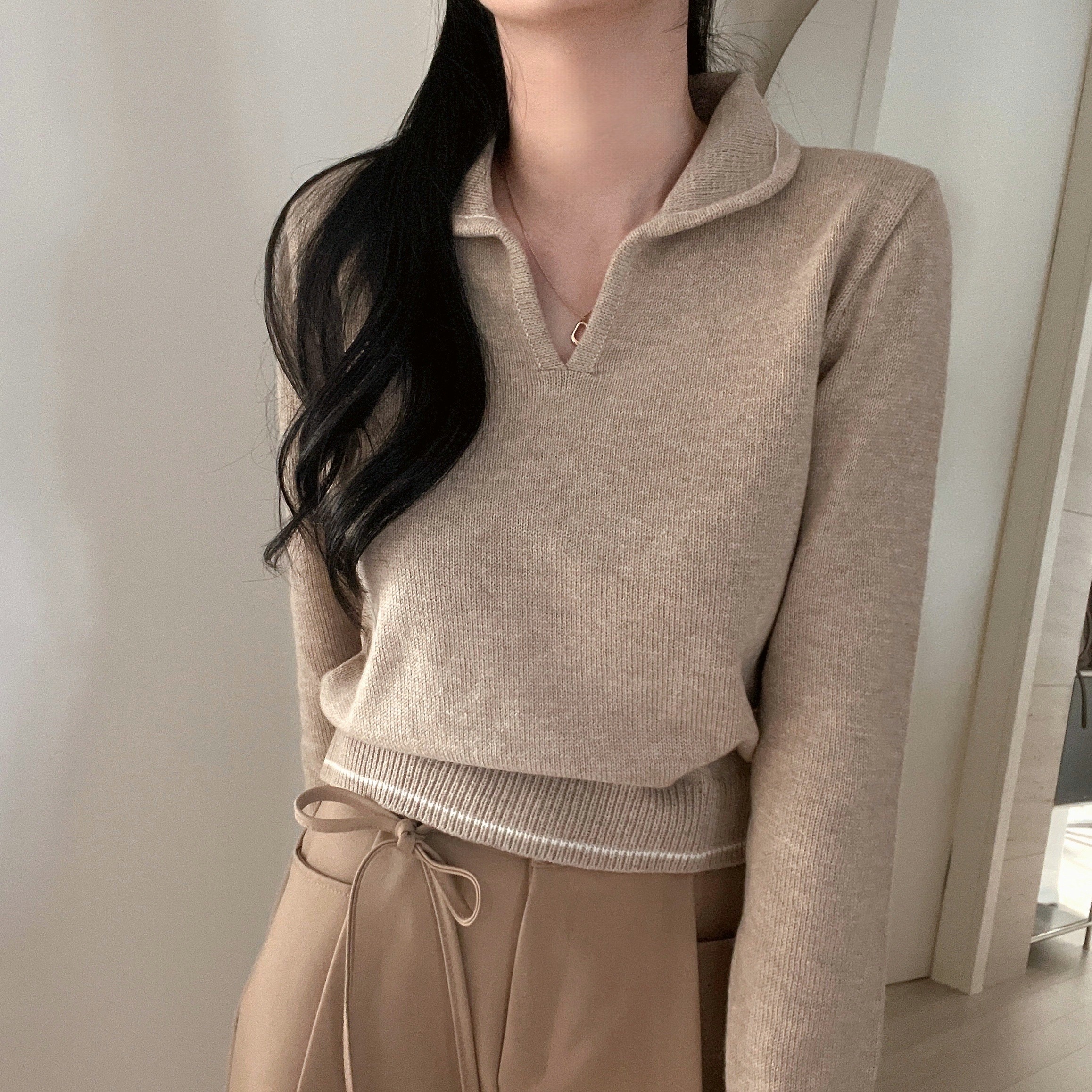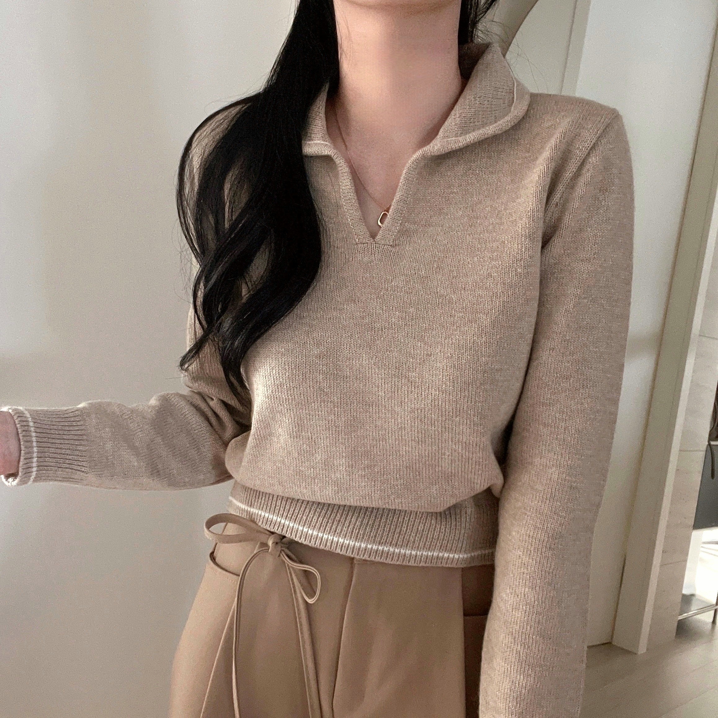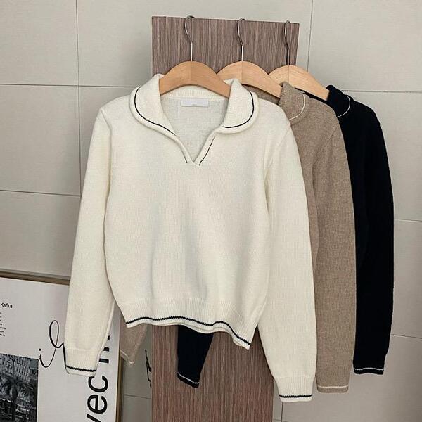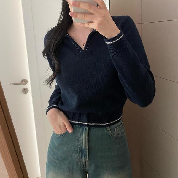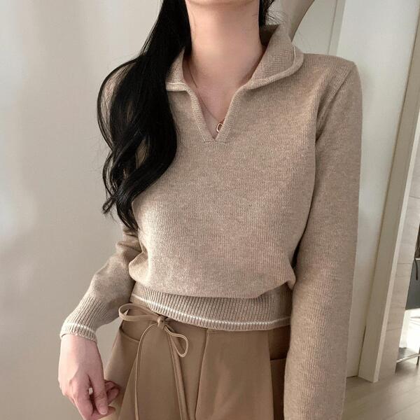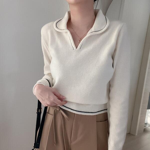 ラインポイントVネックカラーニット