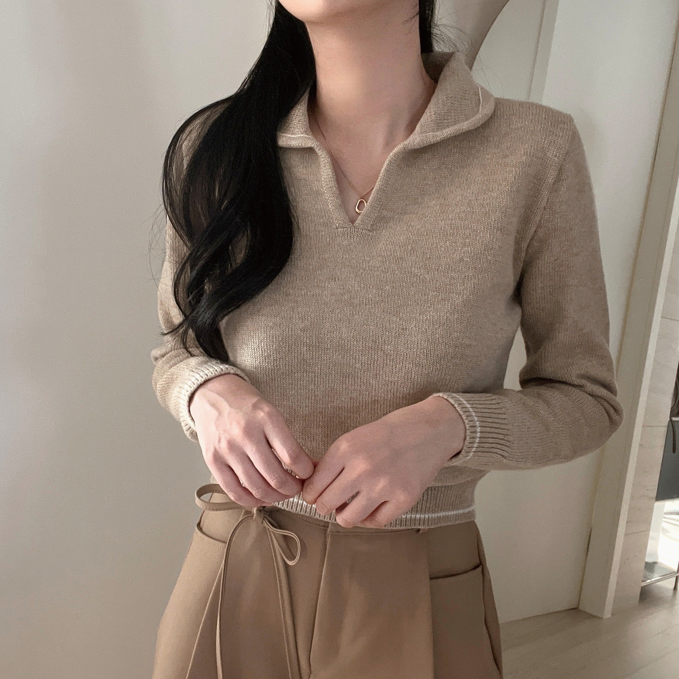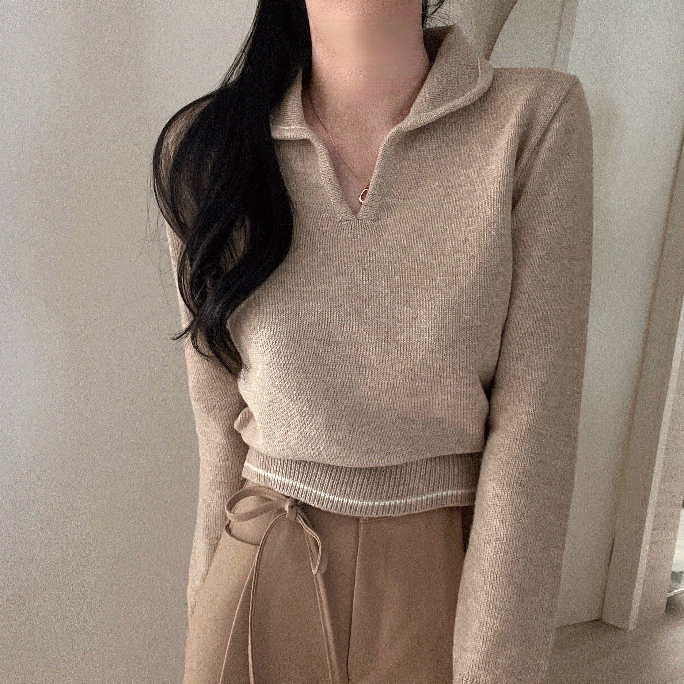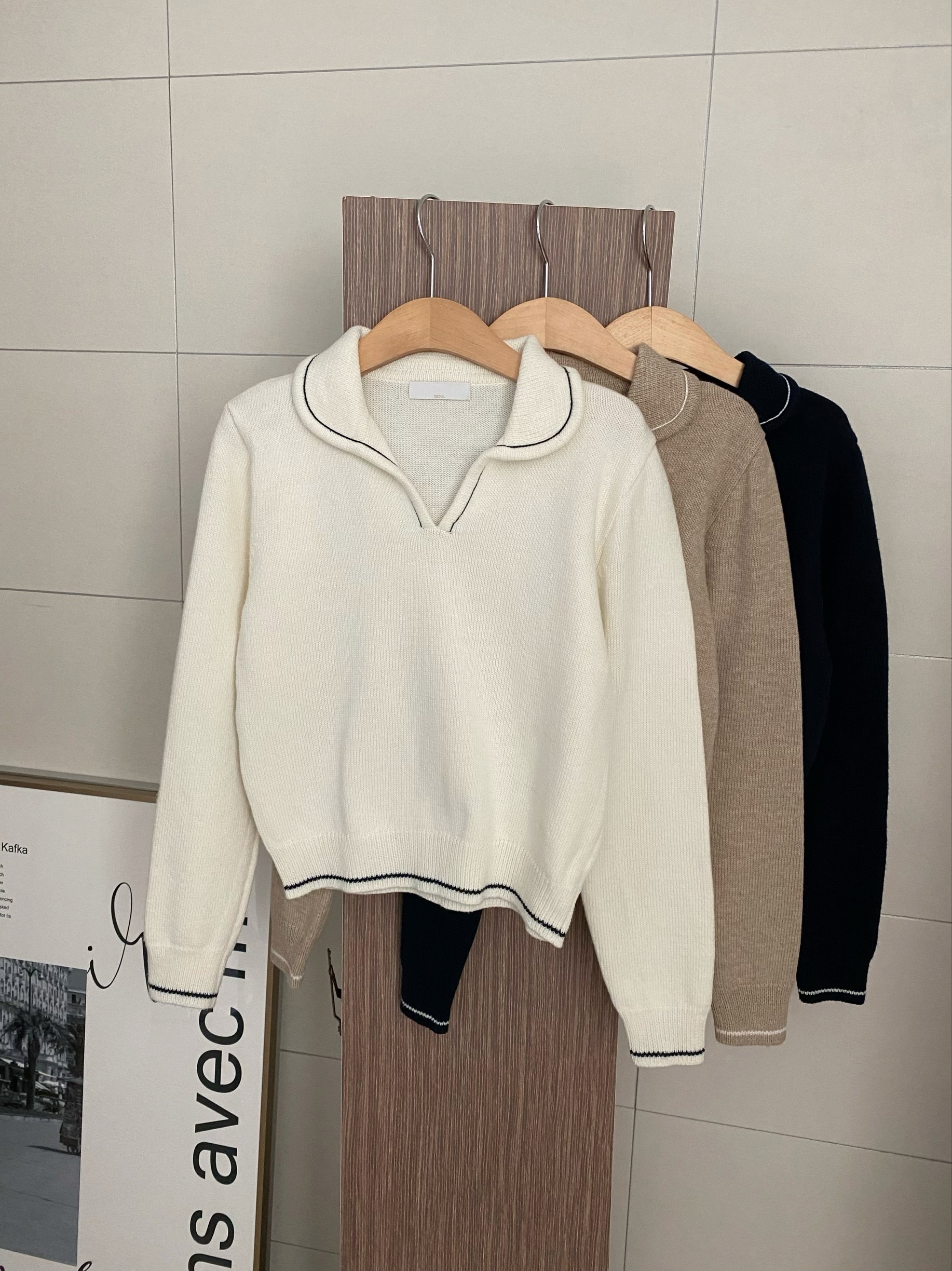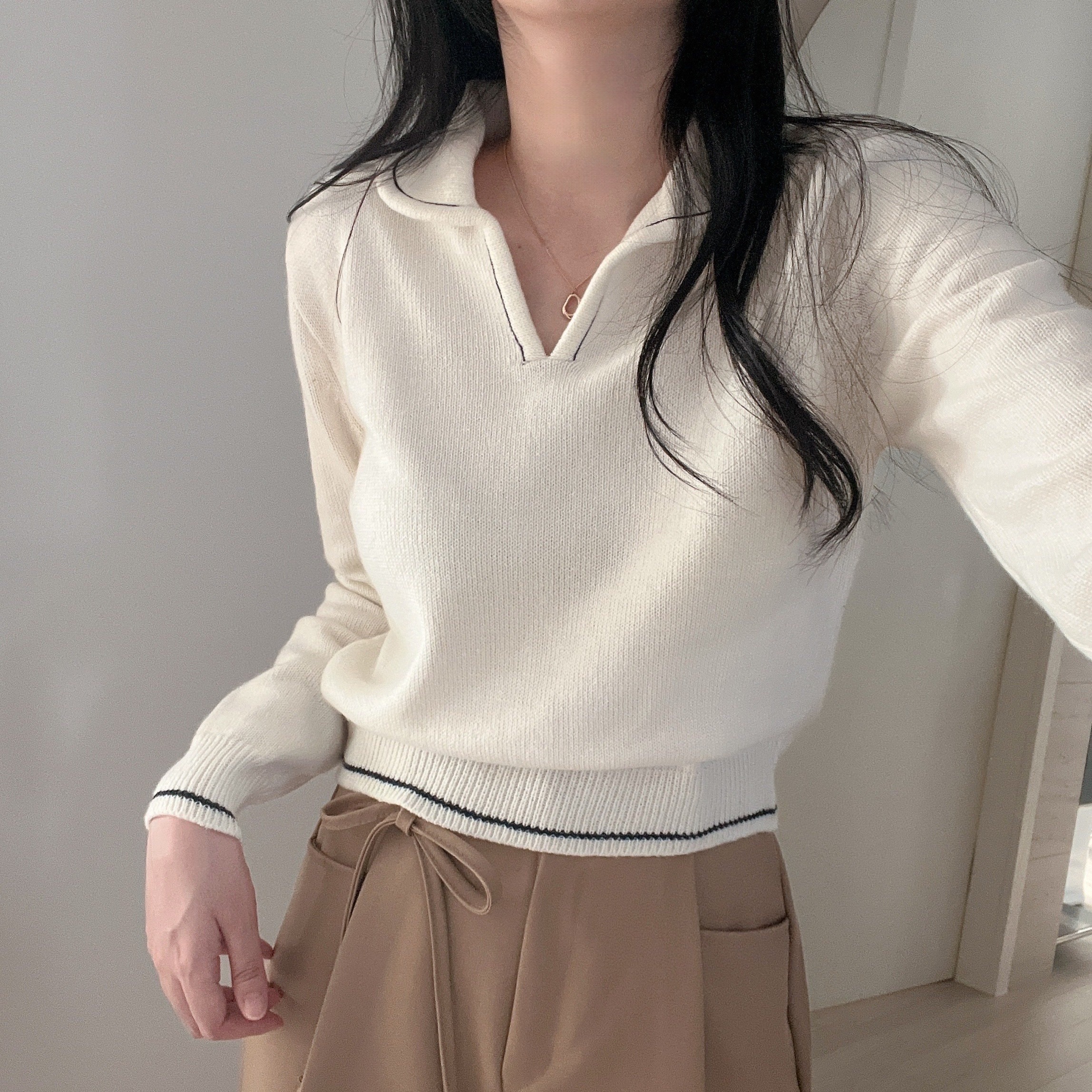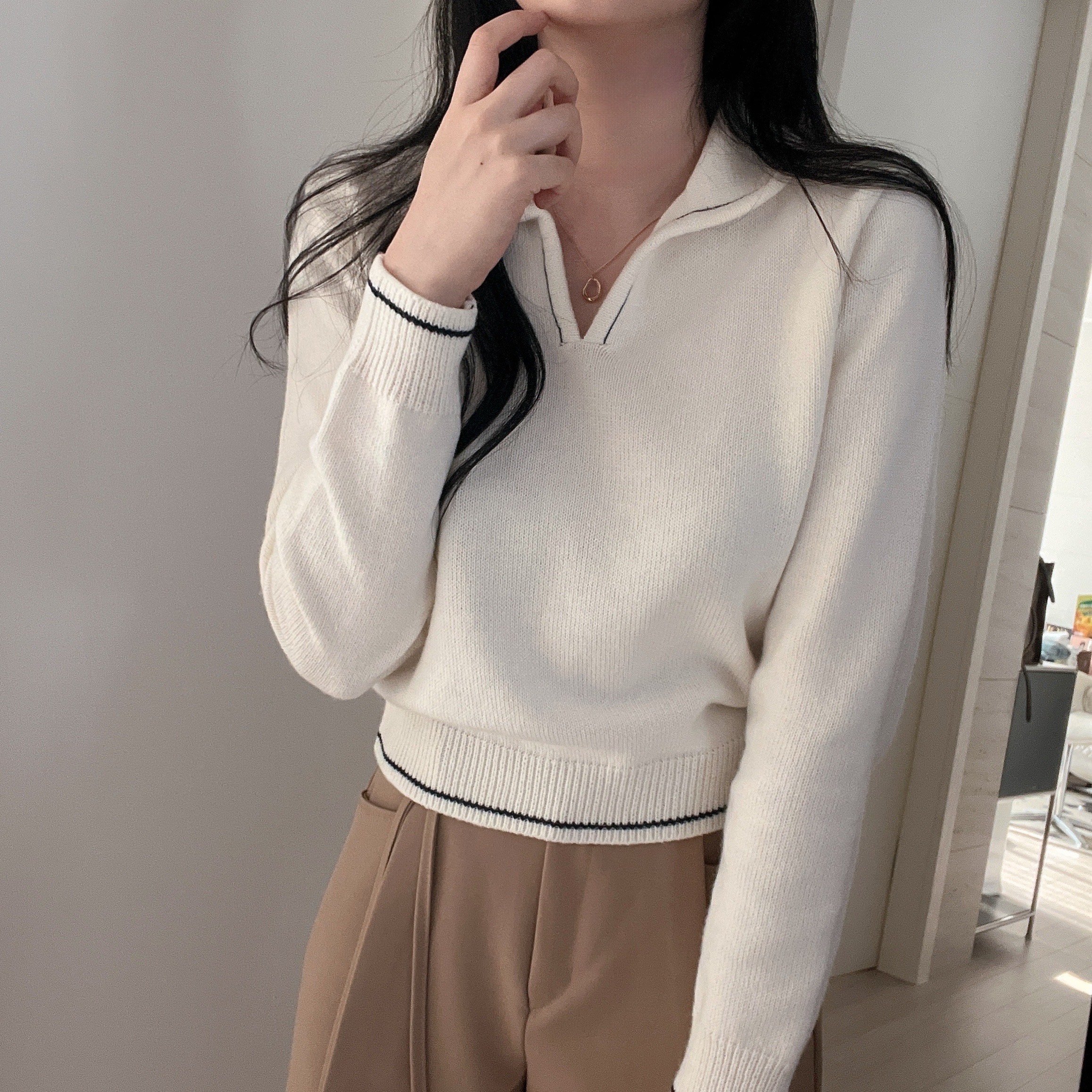 ラインポイントVネックカラーニット