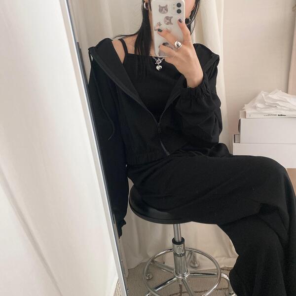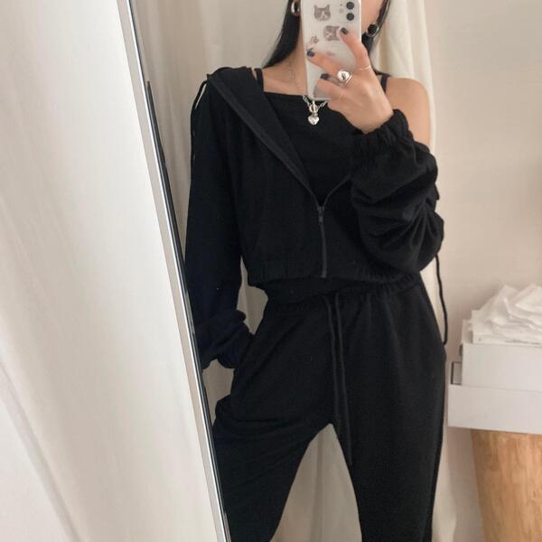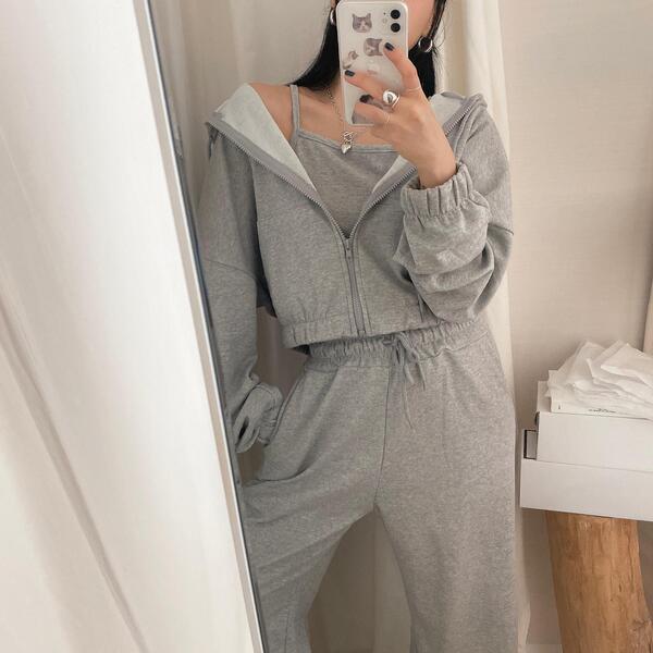 [SET] ジップアップ+キャミソール+トレーニングパンツ