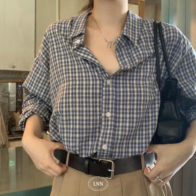 [original] smoreオーバーサイズチェック柄シャツ (blue)