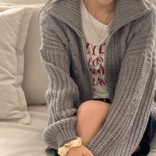 Sweetieケーブルオーバーサイズニットジップカーディガン