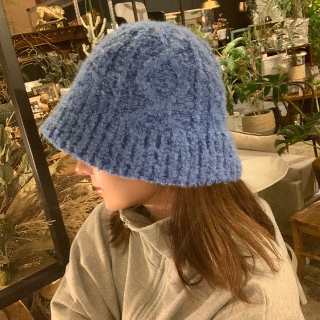 ケーブルニットバケットハット