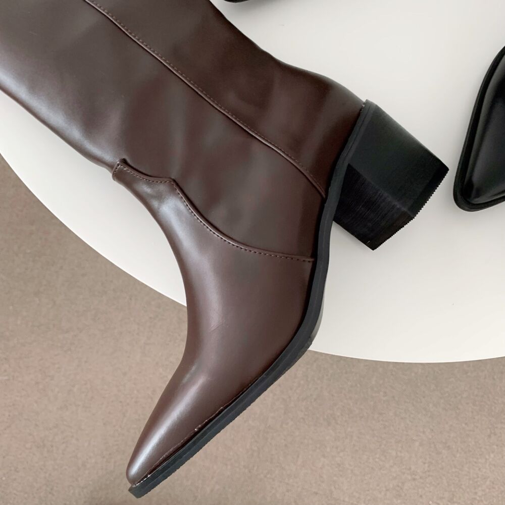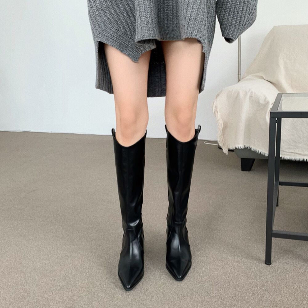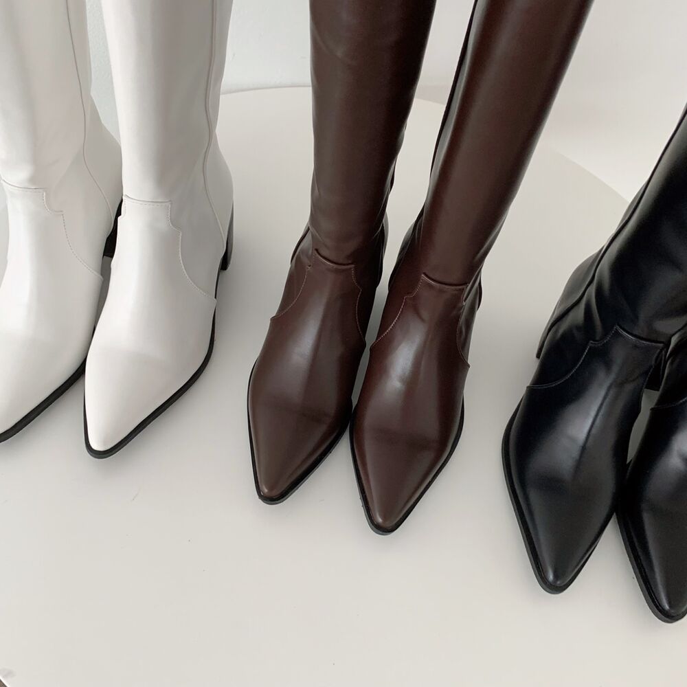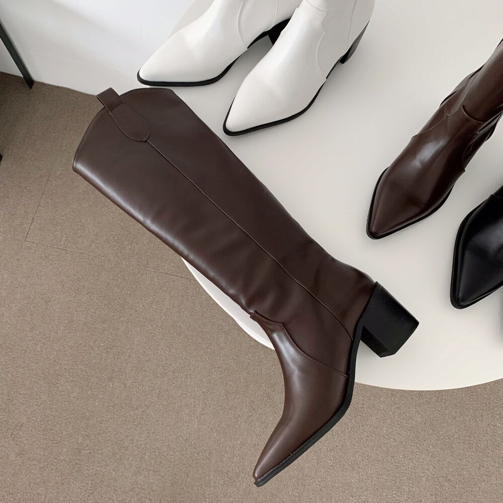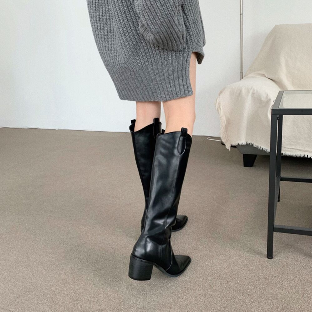 [6cm] ロングウエスタンミドルヒールブーツ(3color)
