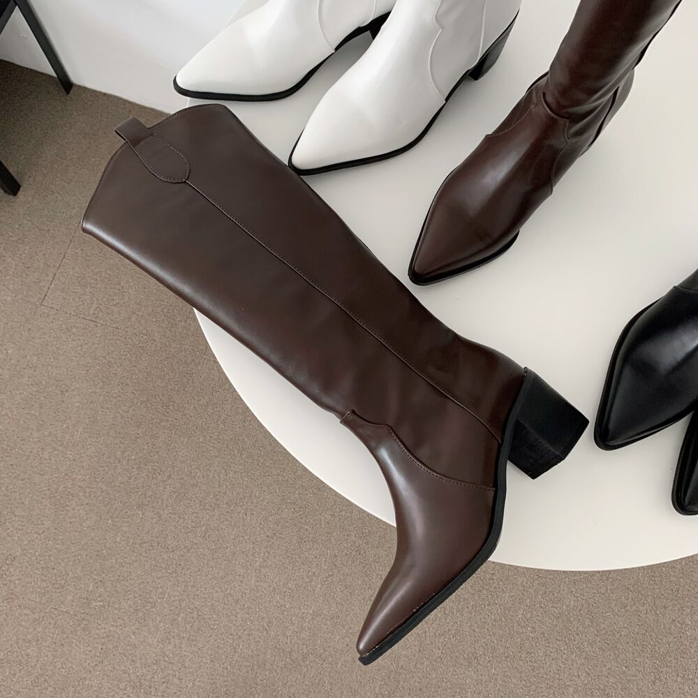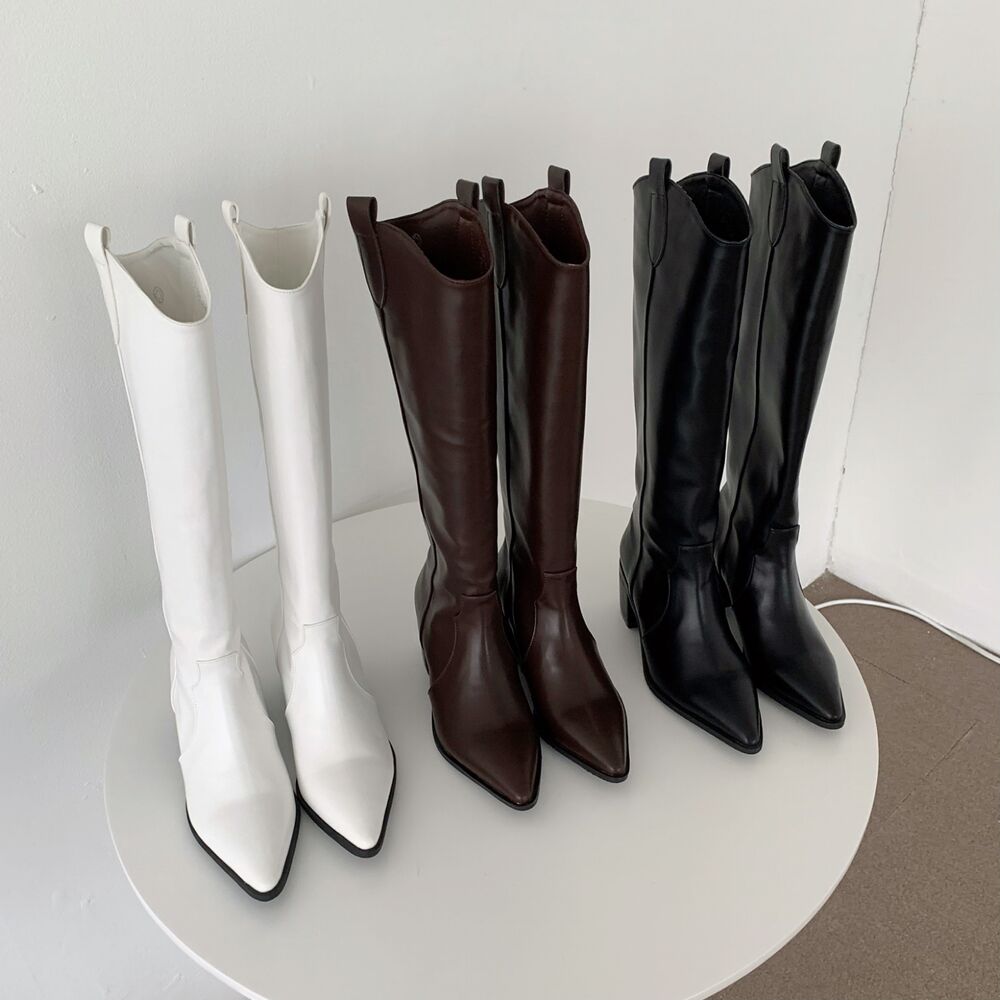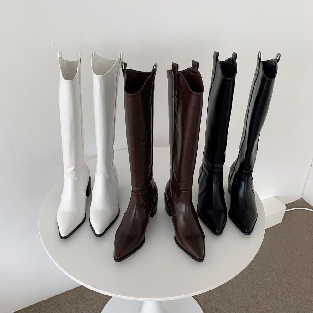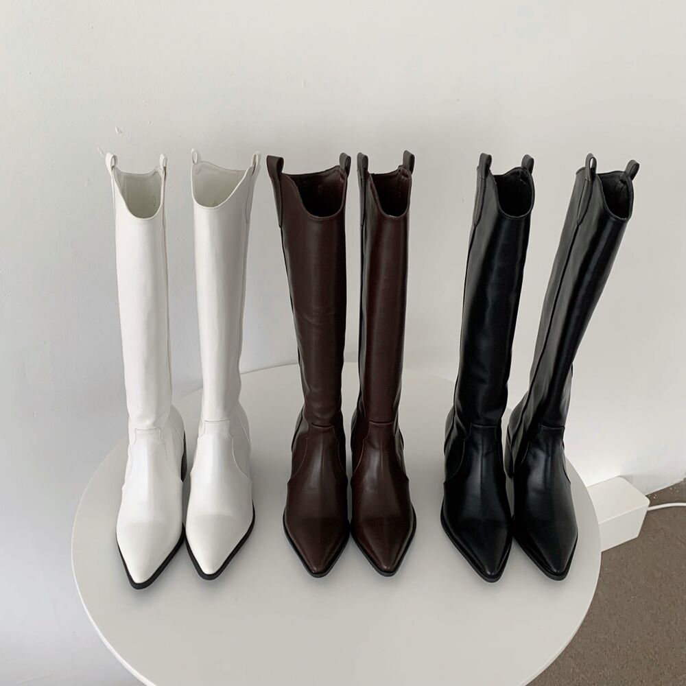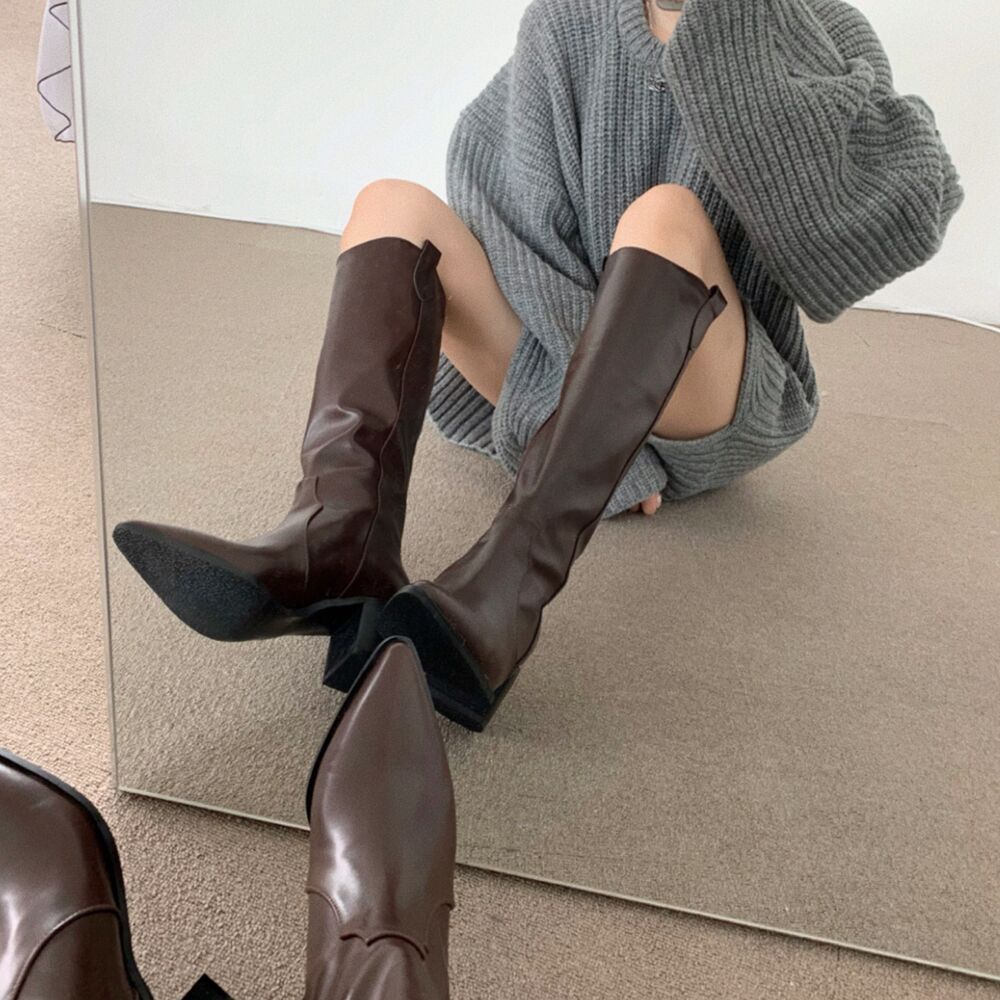 [6cm] ロングウエスタンミドルヒールブーツ(3color)