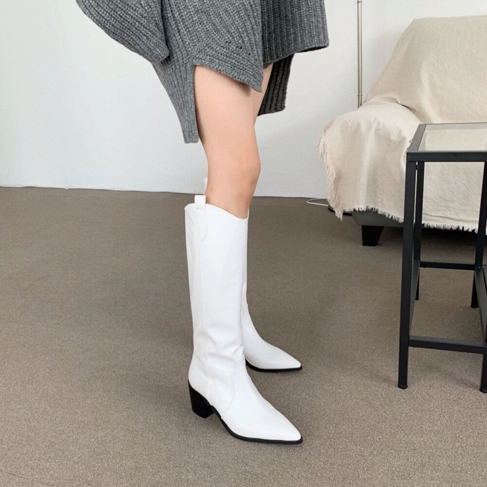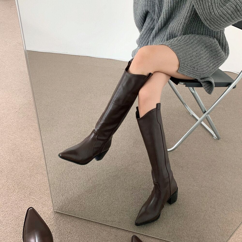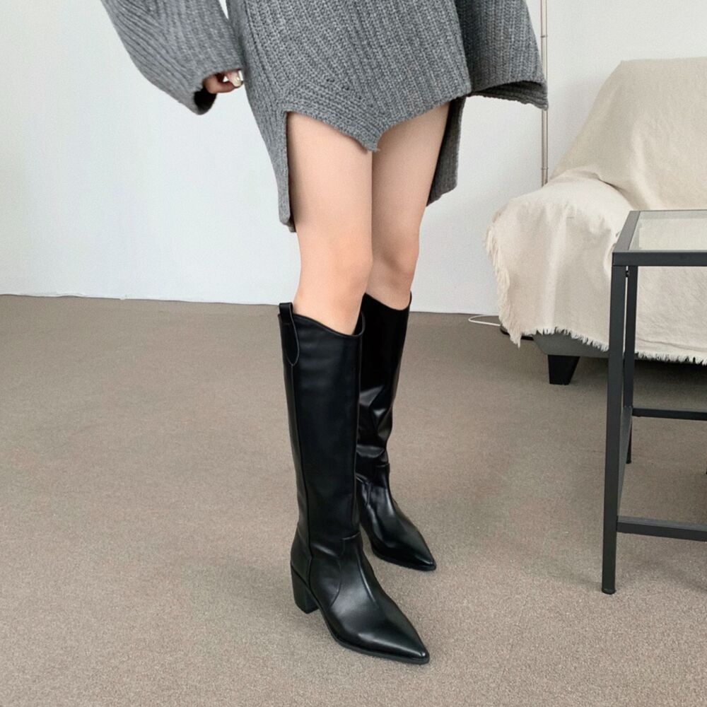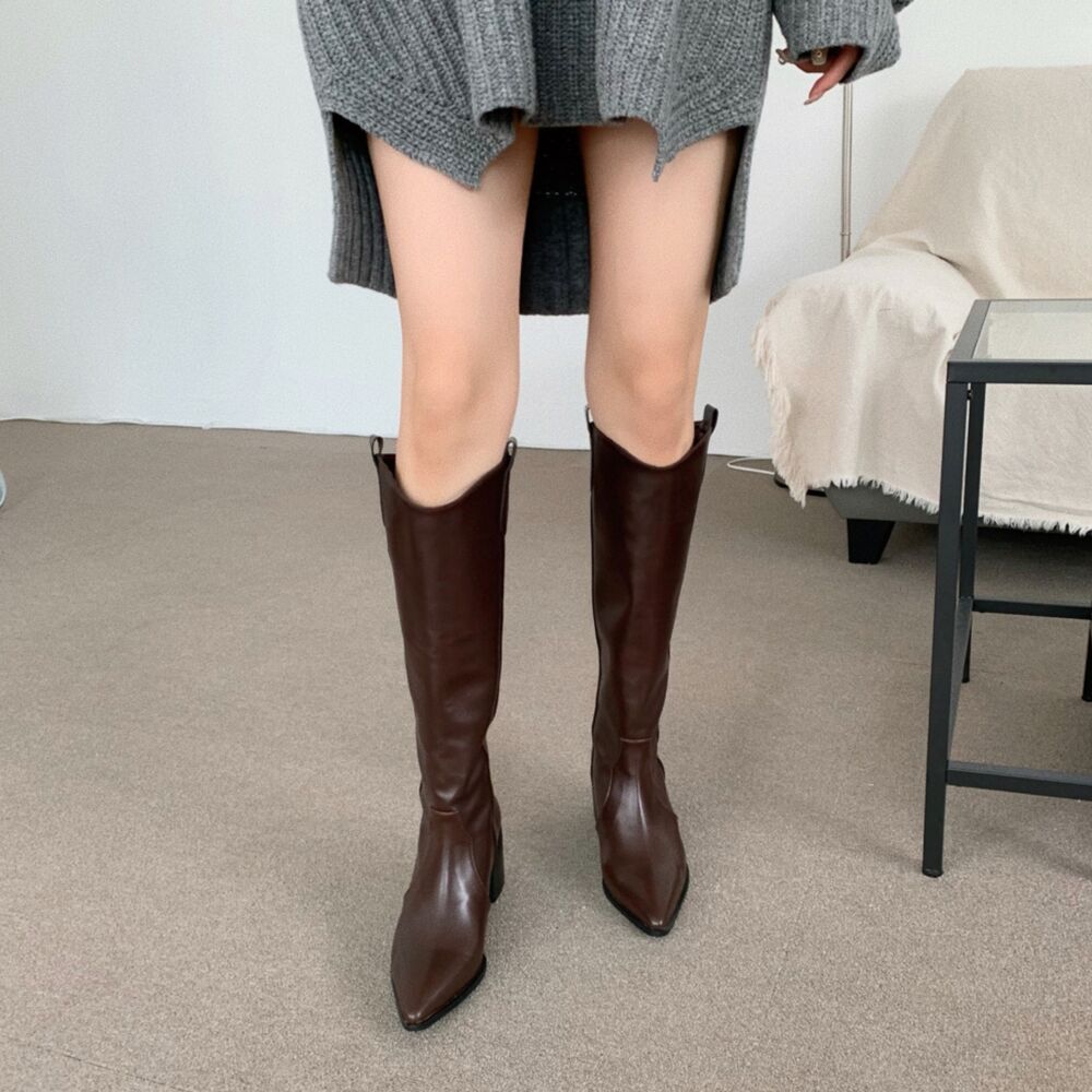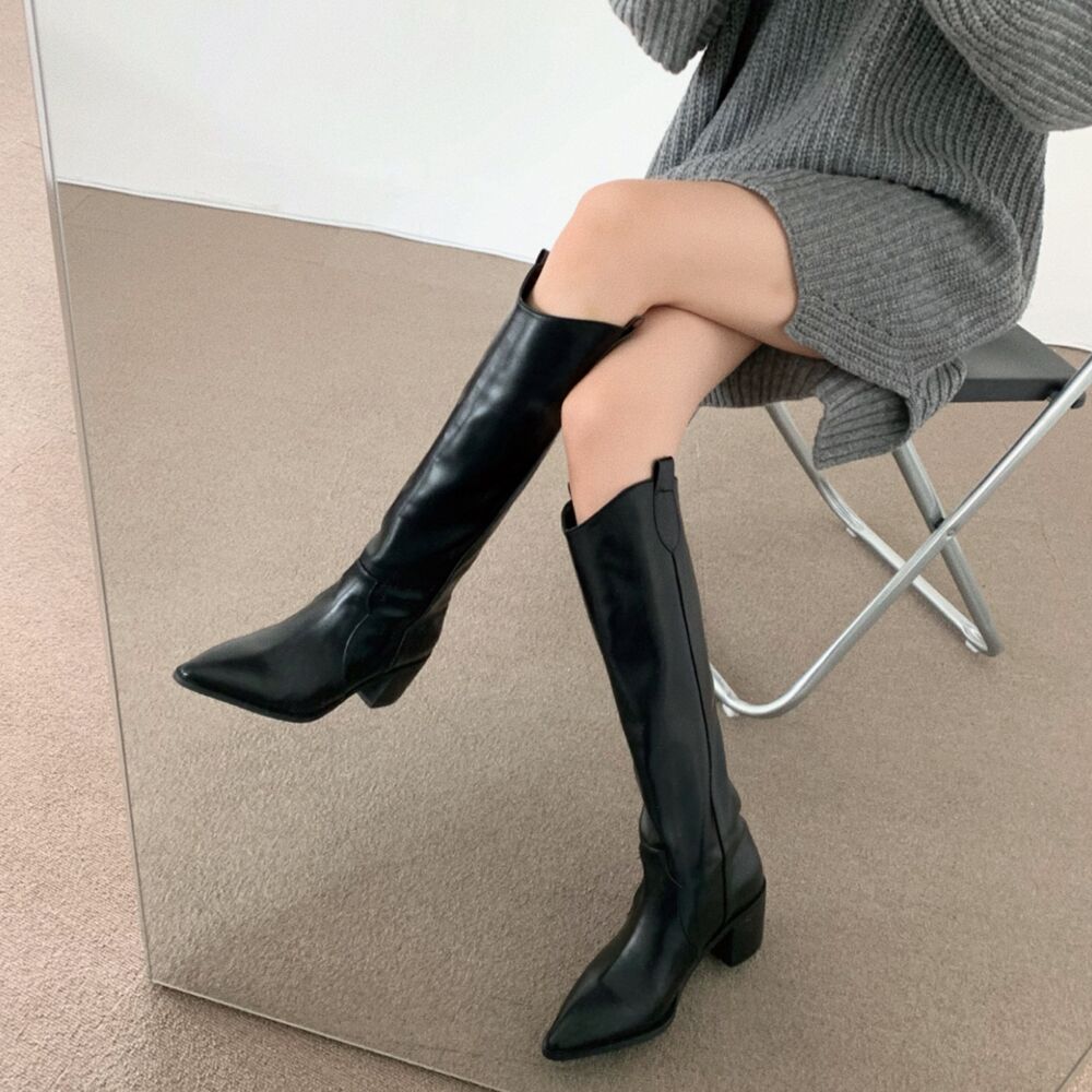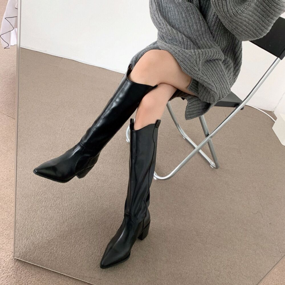[6cm] ロングウエスタンミドルヒールブーツ(3color)