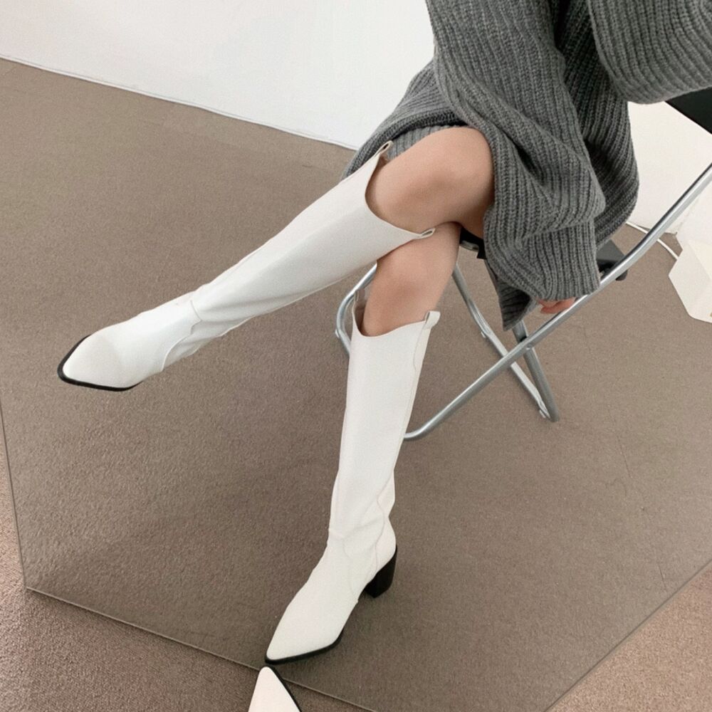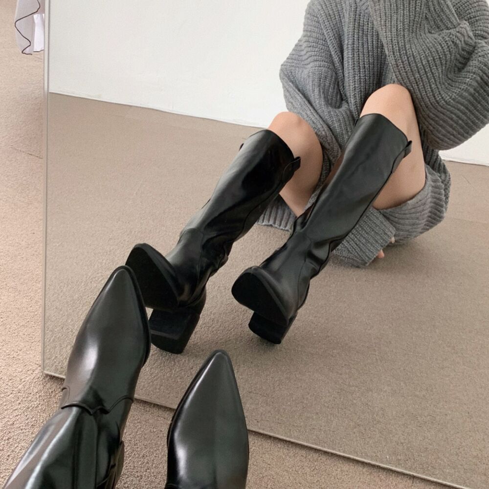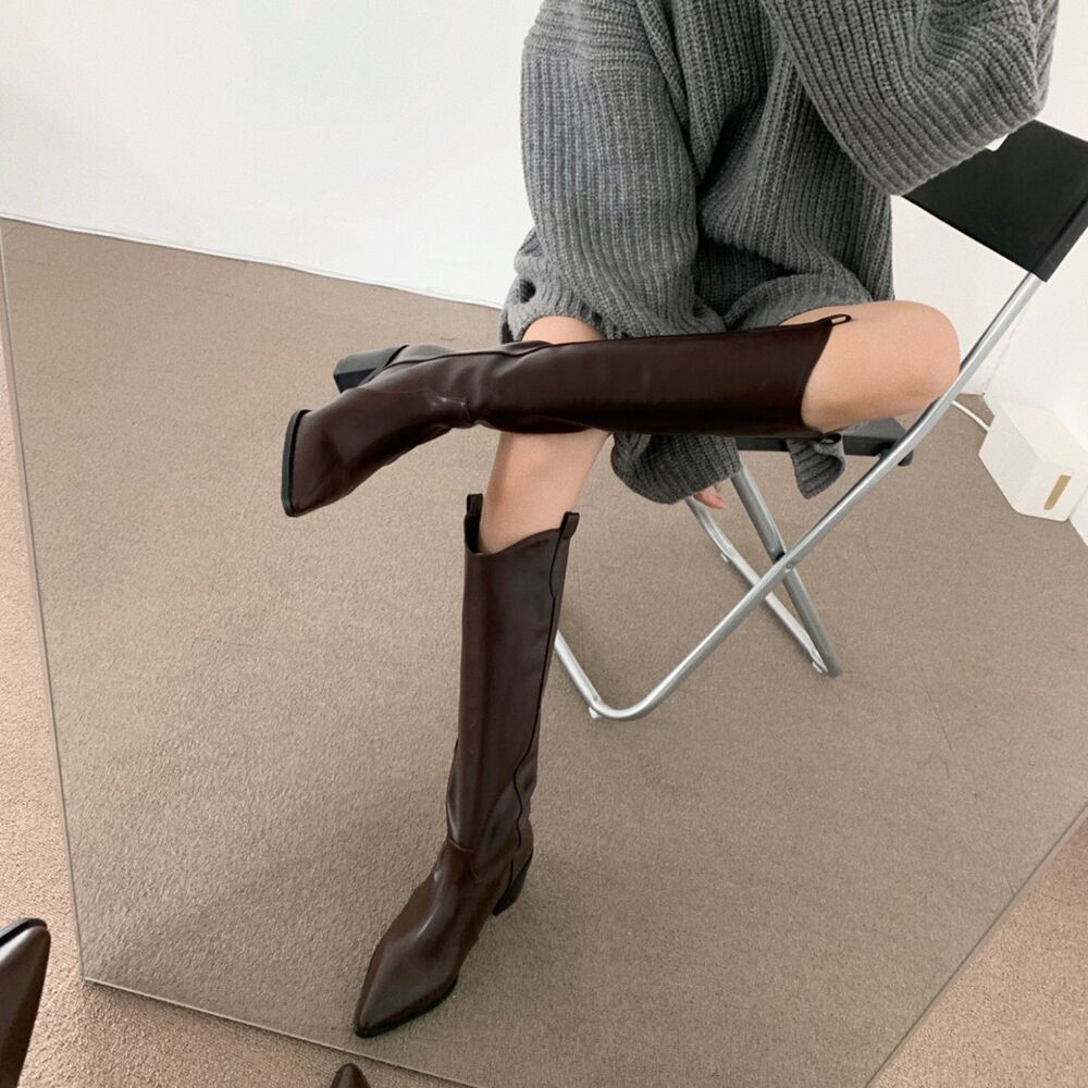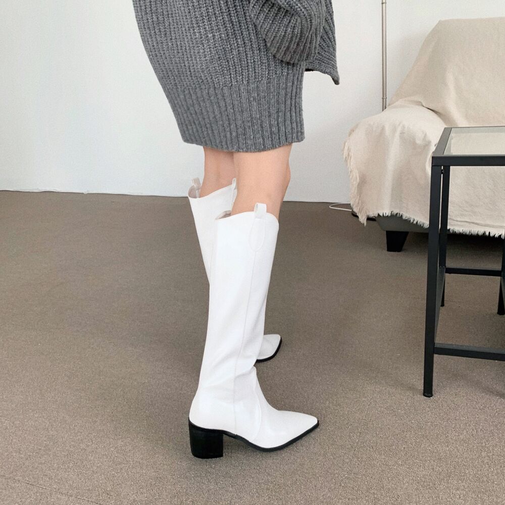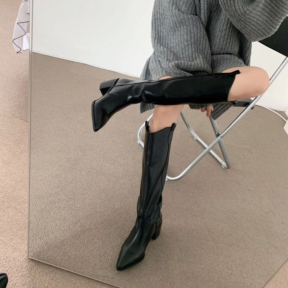 [6cm] ロングウエスタンミドルヒールブーツ(3color)