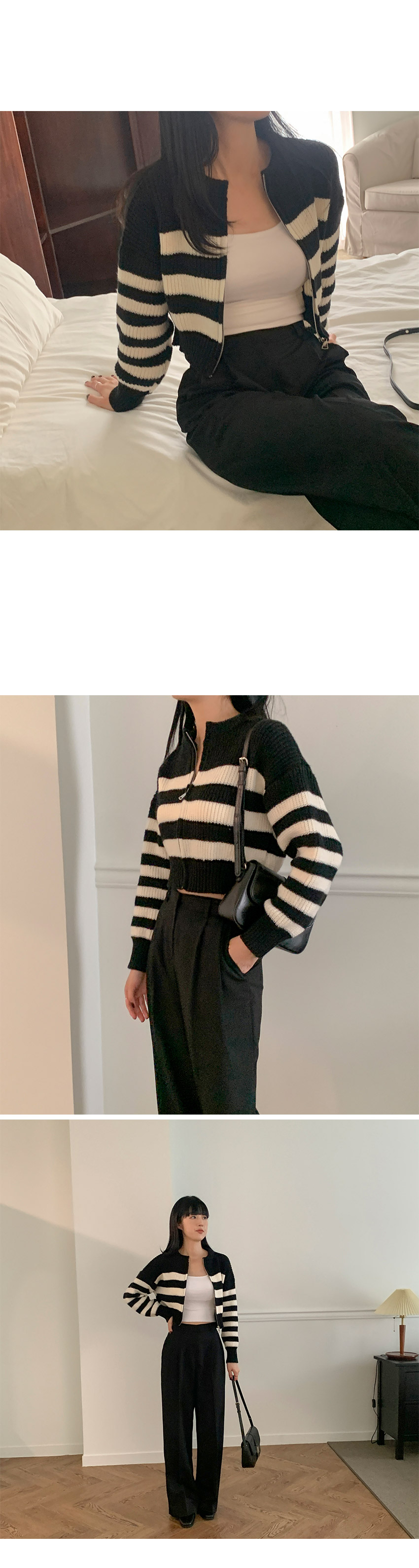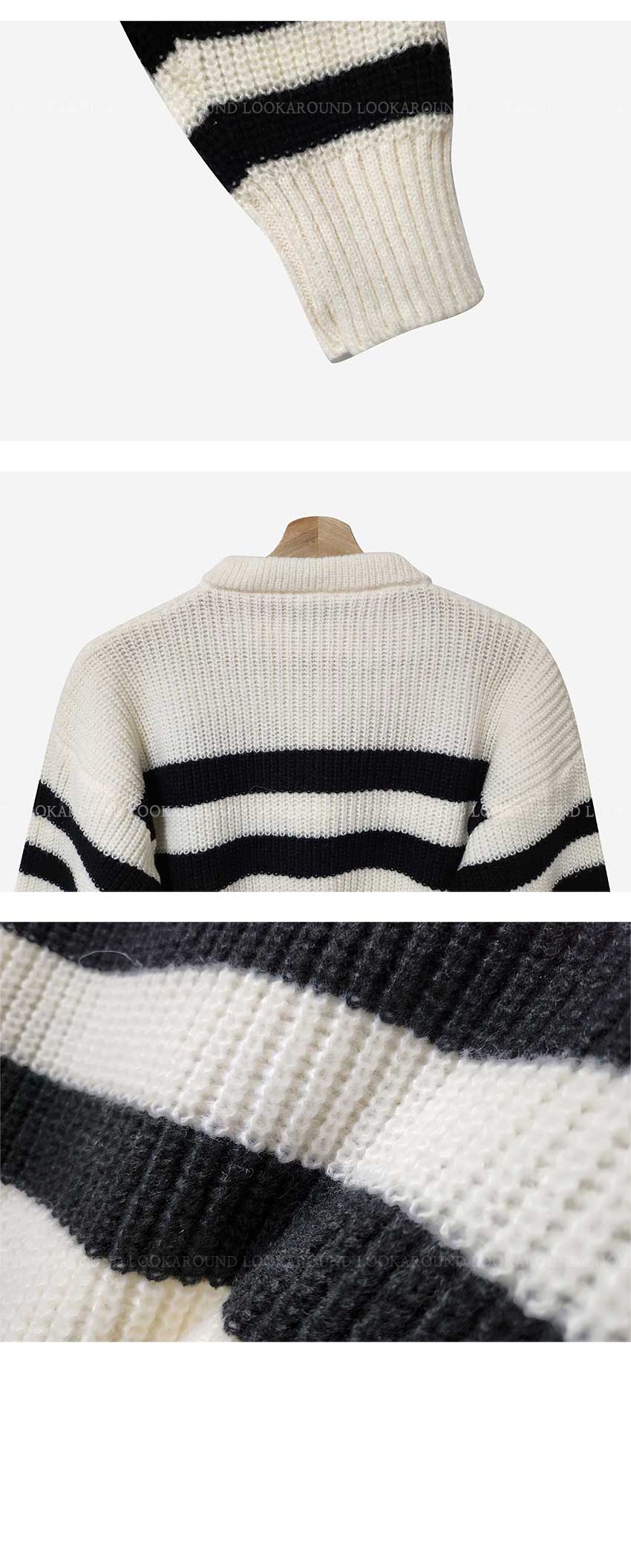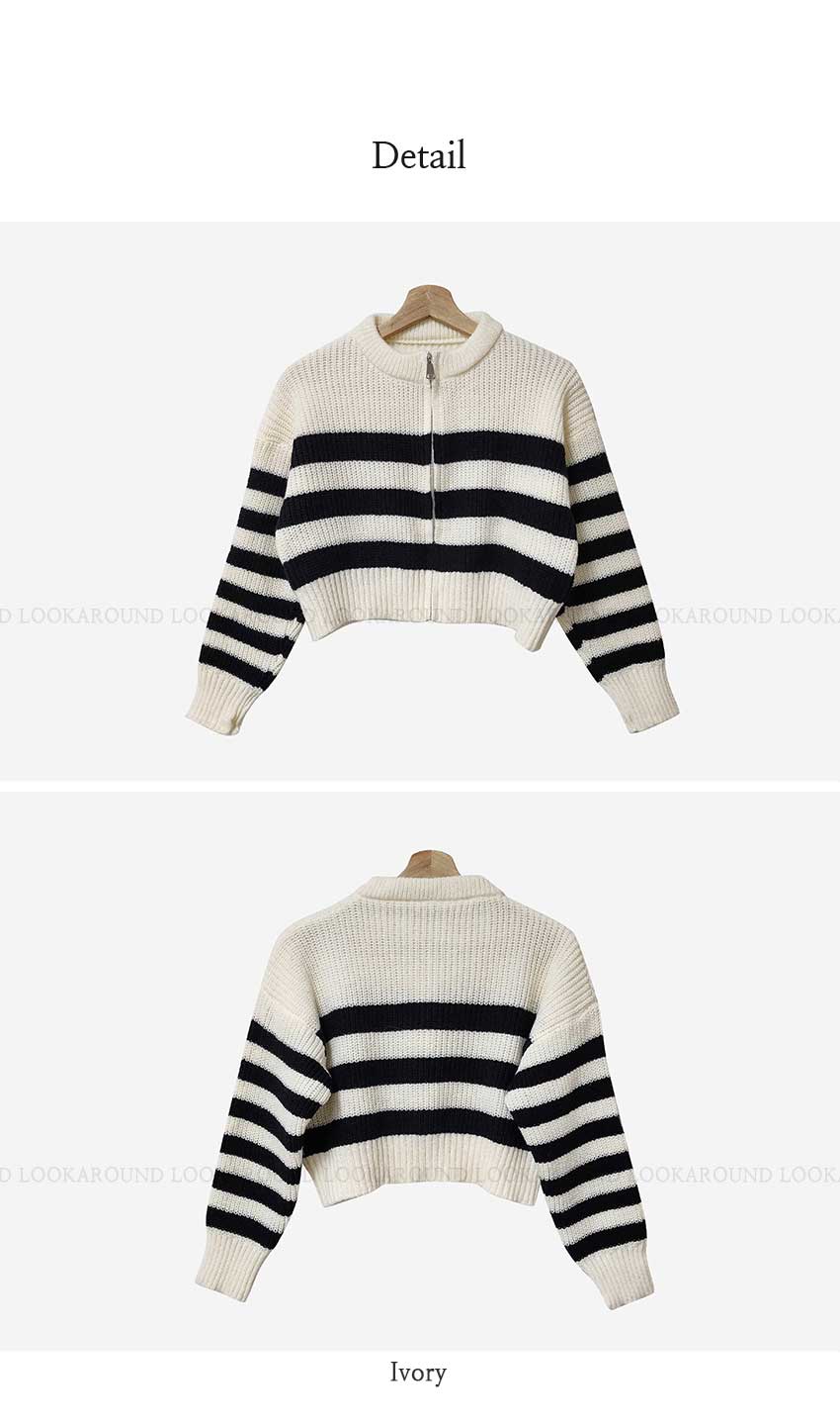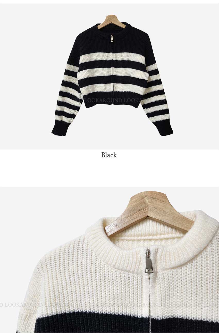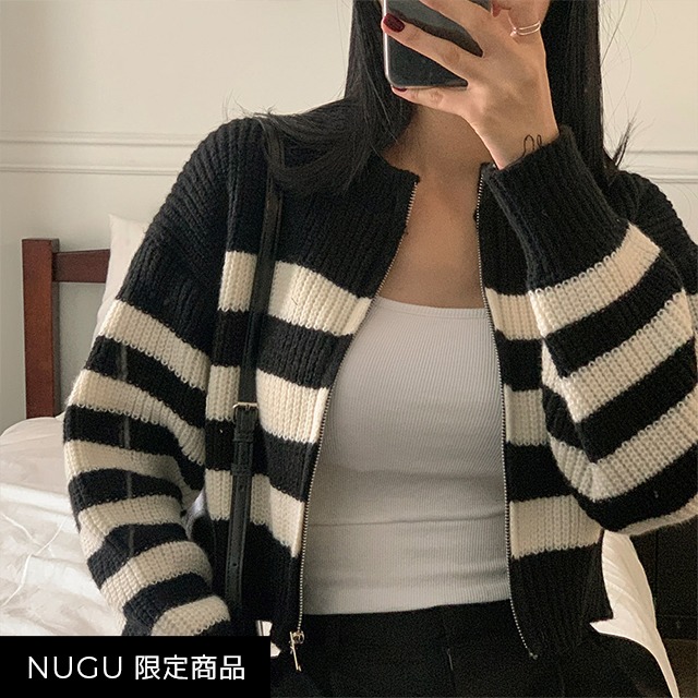 ボーダーニット長袖ジップアップ