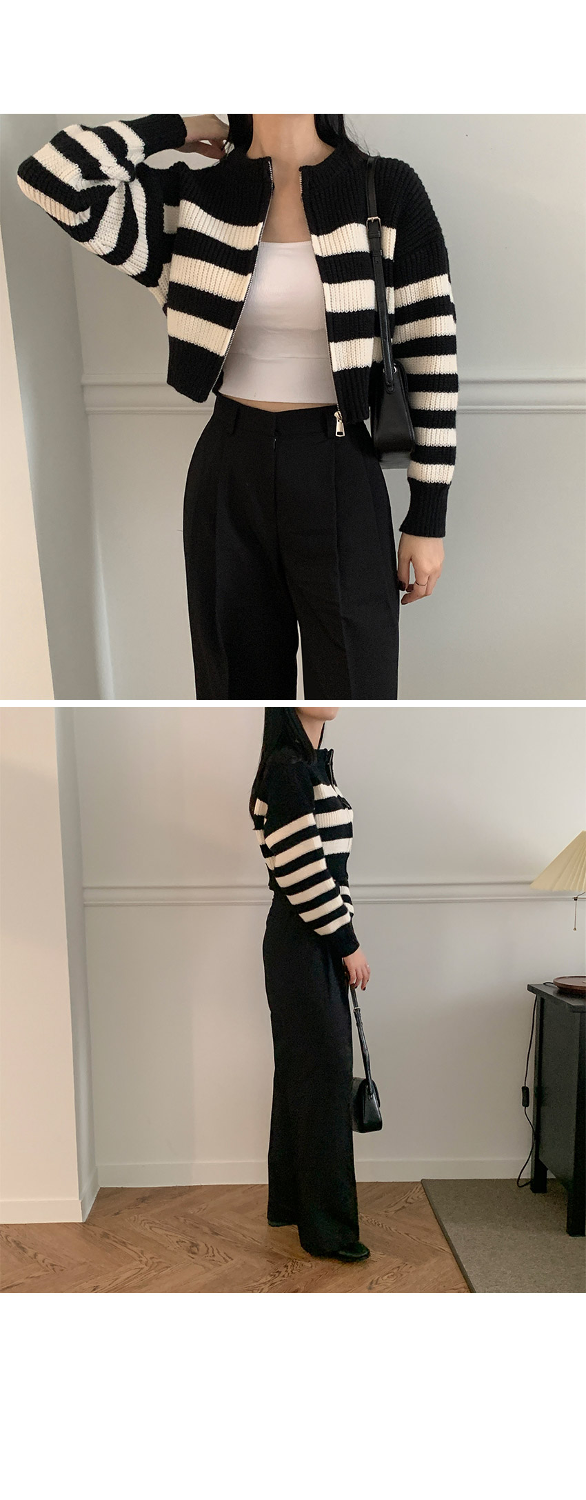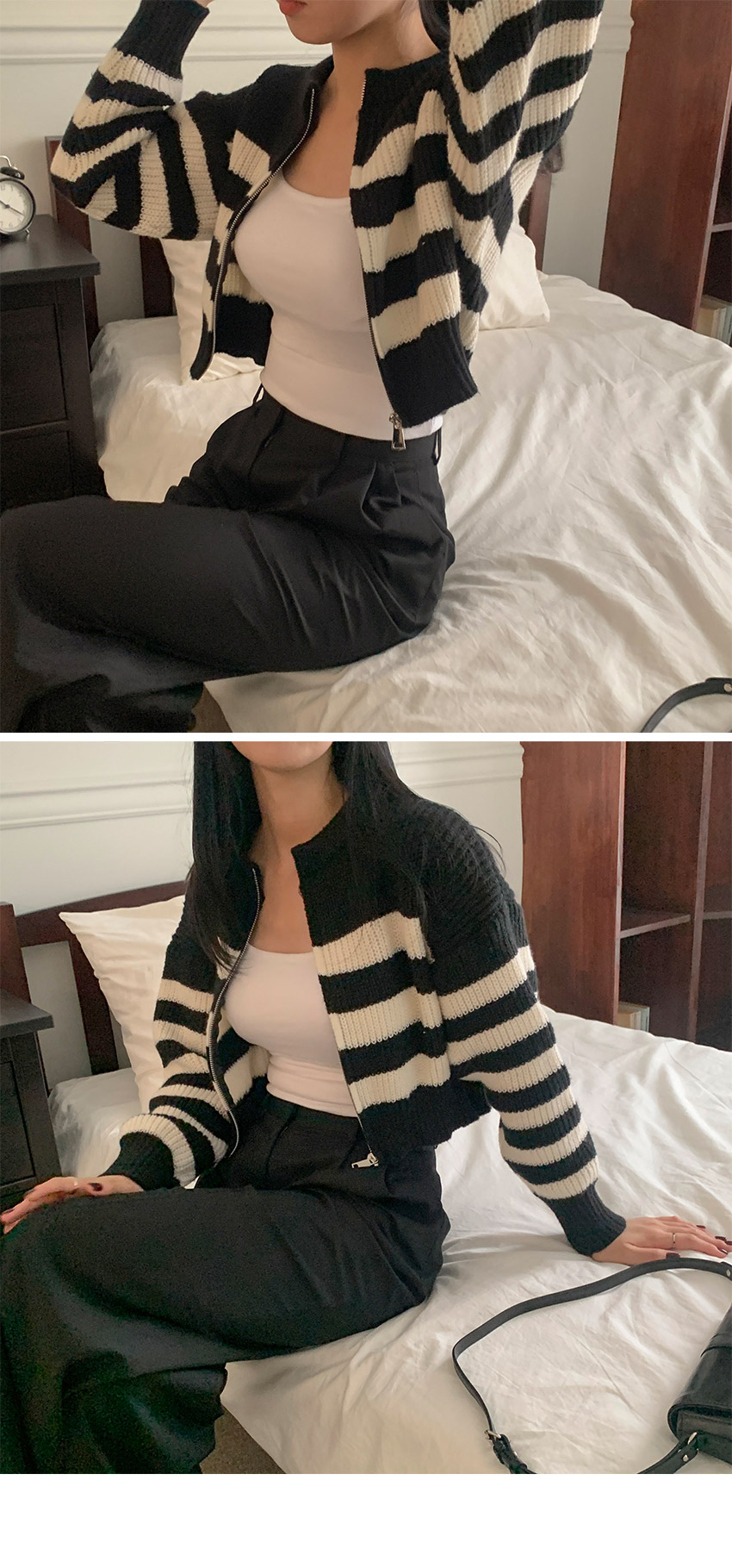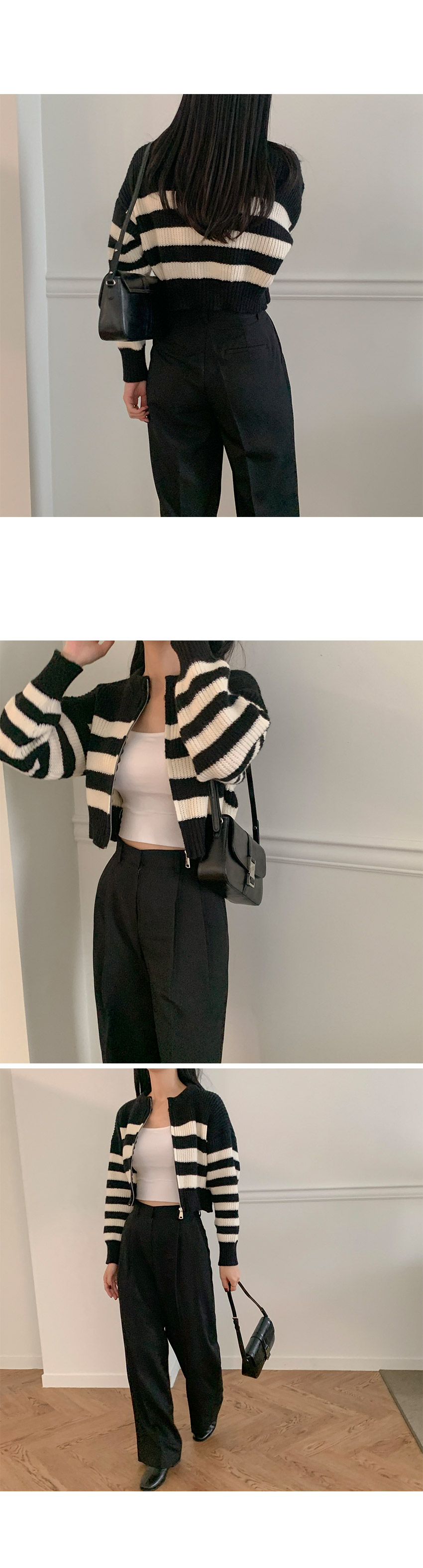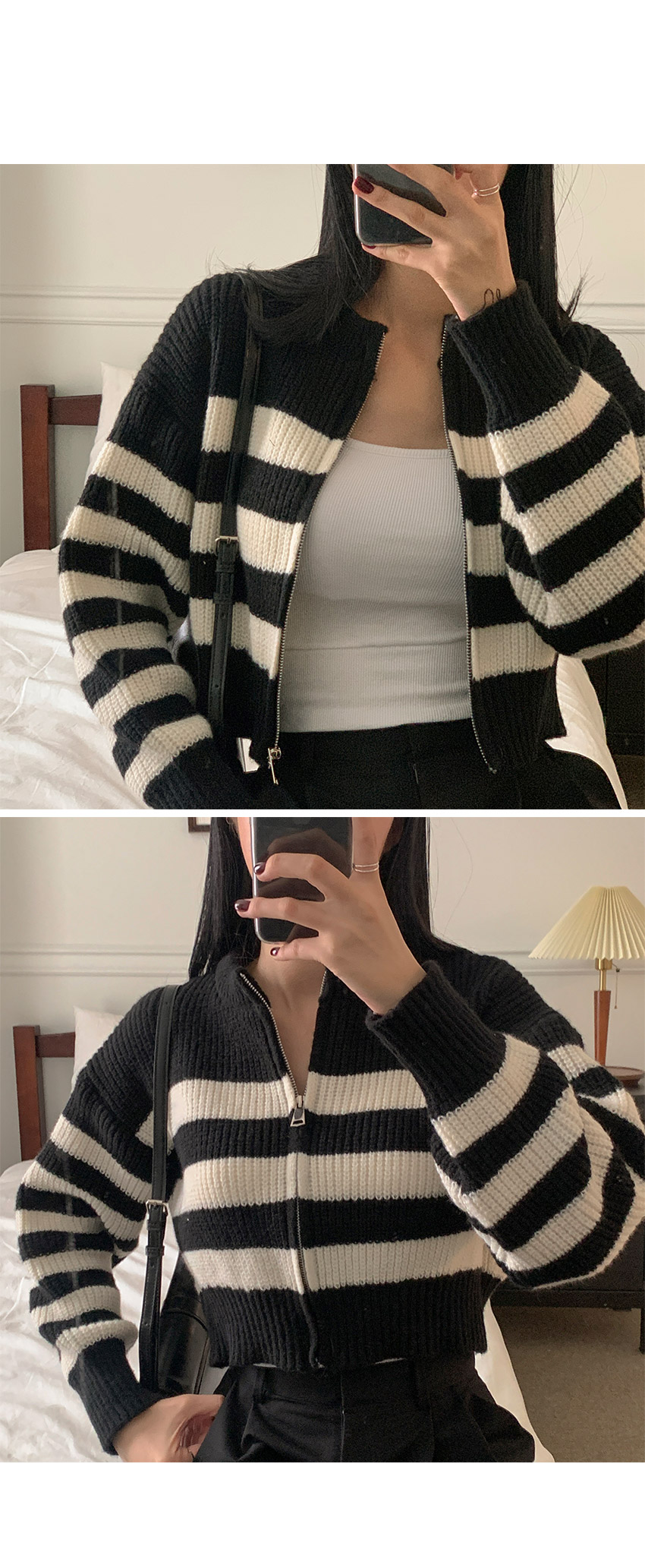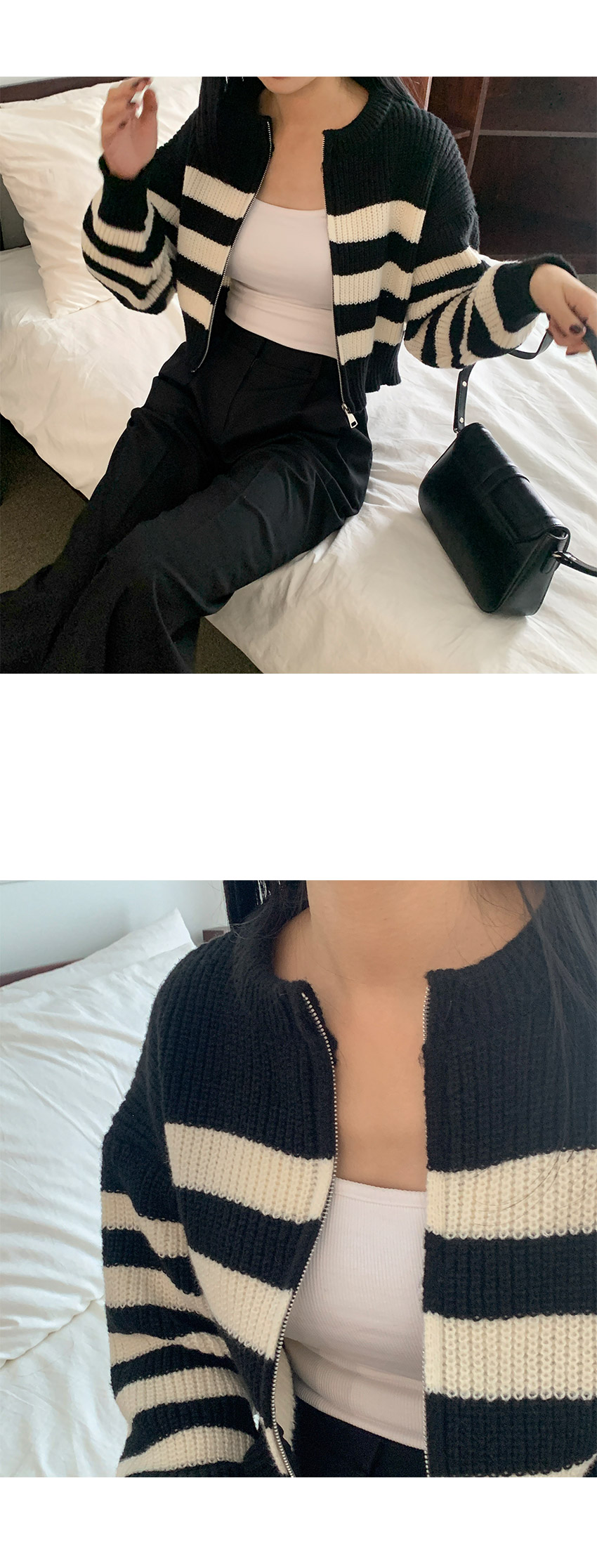 ボーダーニット長袖ジップアップ