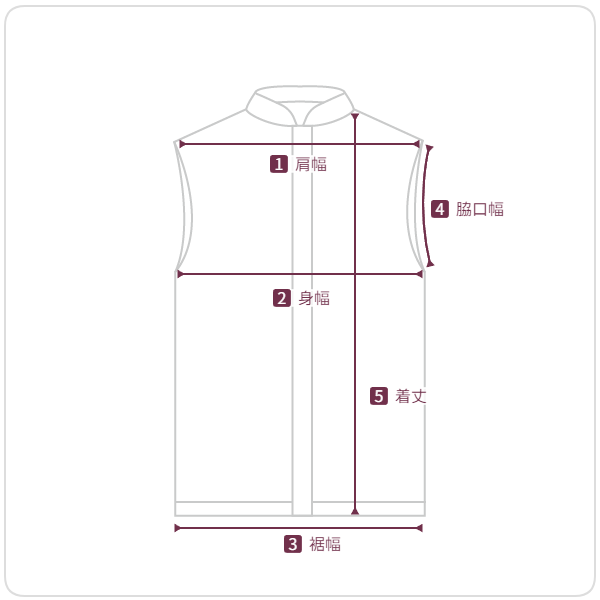 5 着丈 | 61 24 | 62 24.5 | 63 25 | 64 25 |