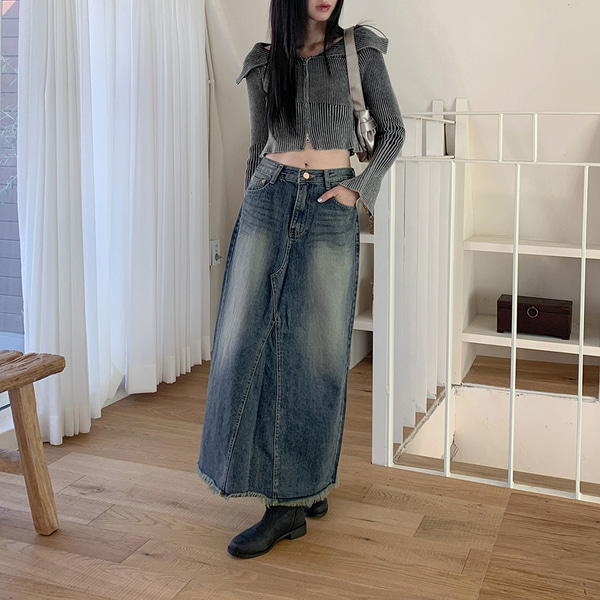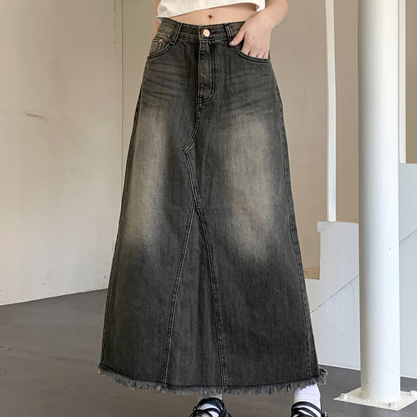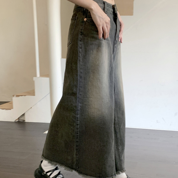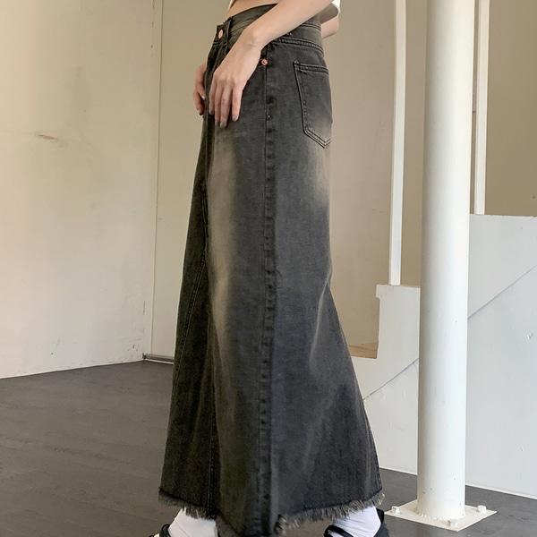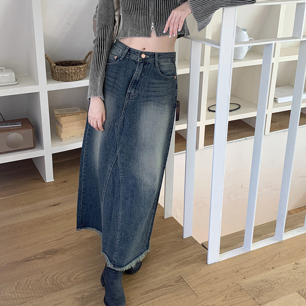 ウォッシュロングデニムスカート