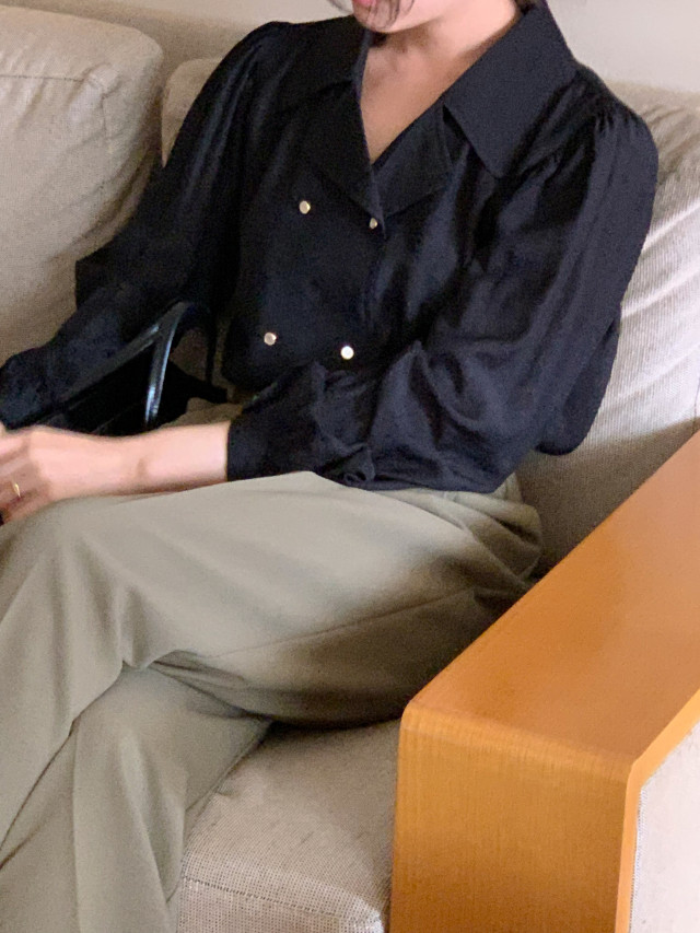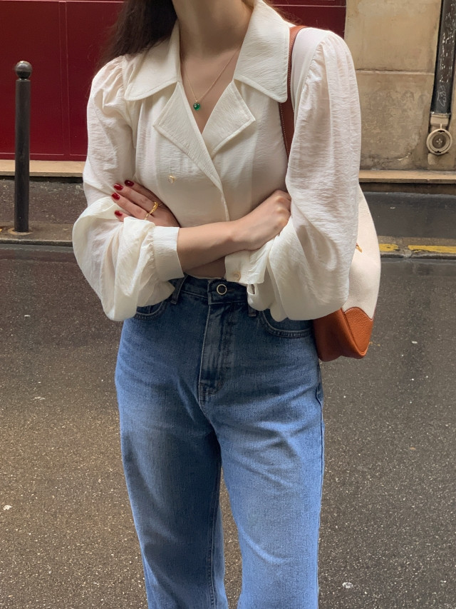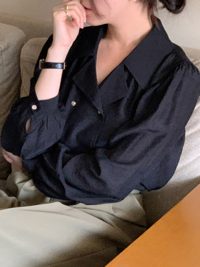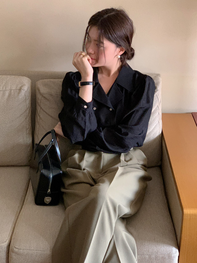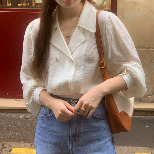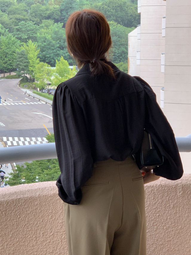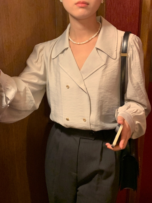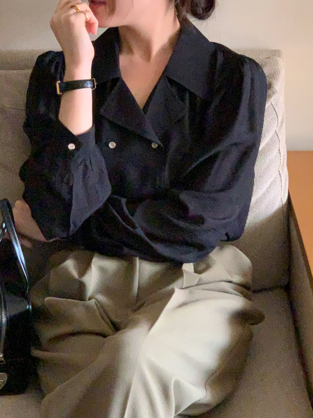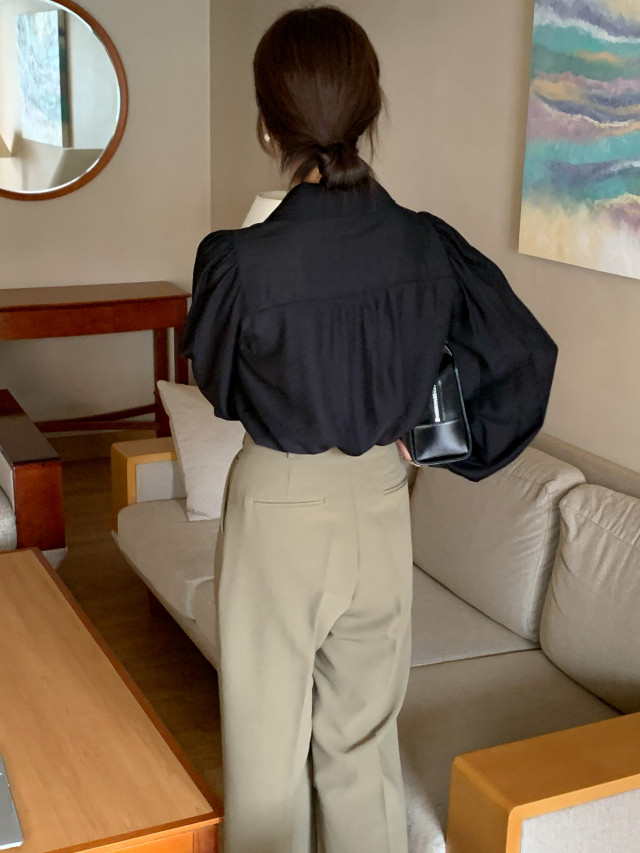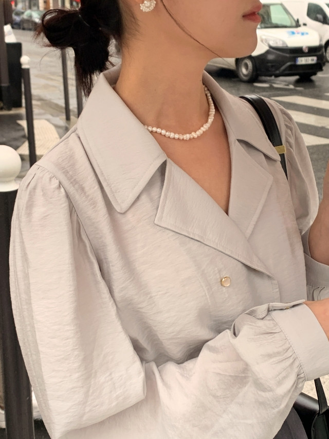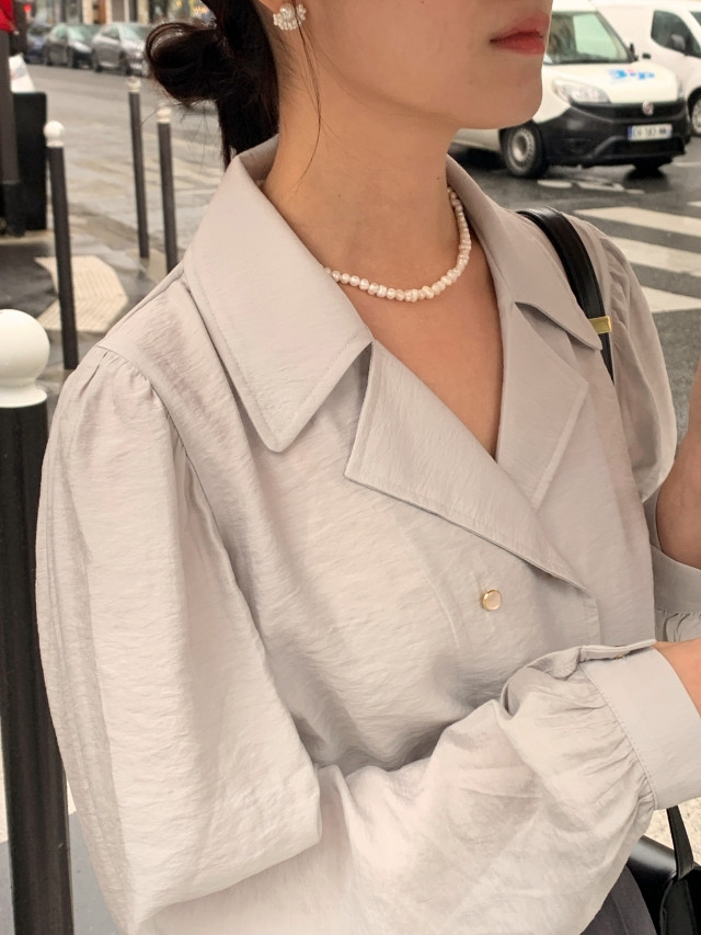 [original] Monetサテンシャーリングカラーパフブラウス