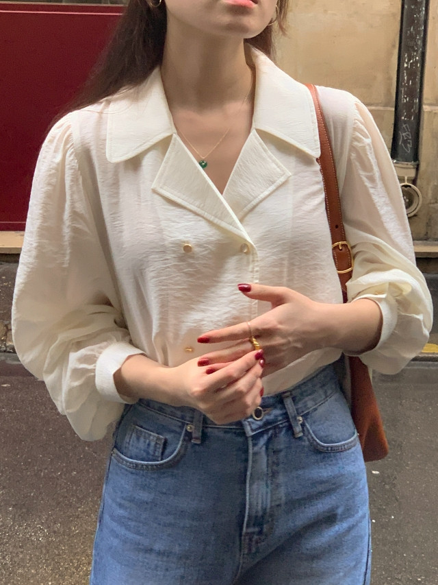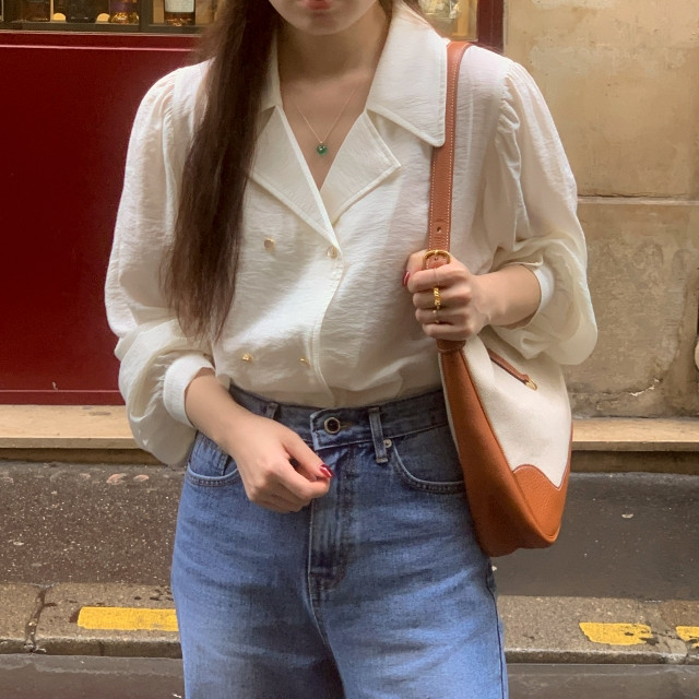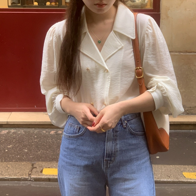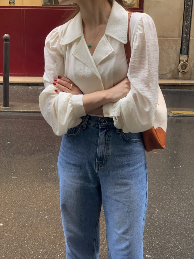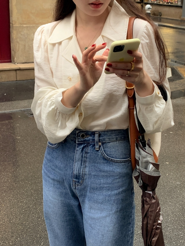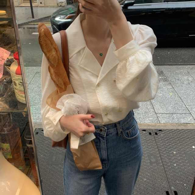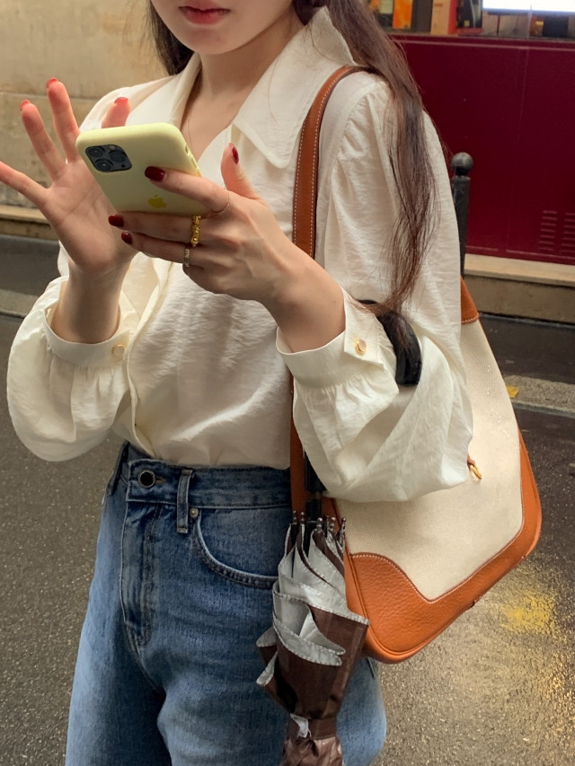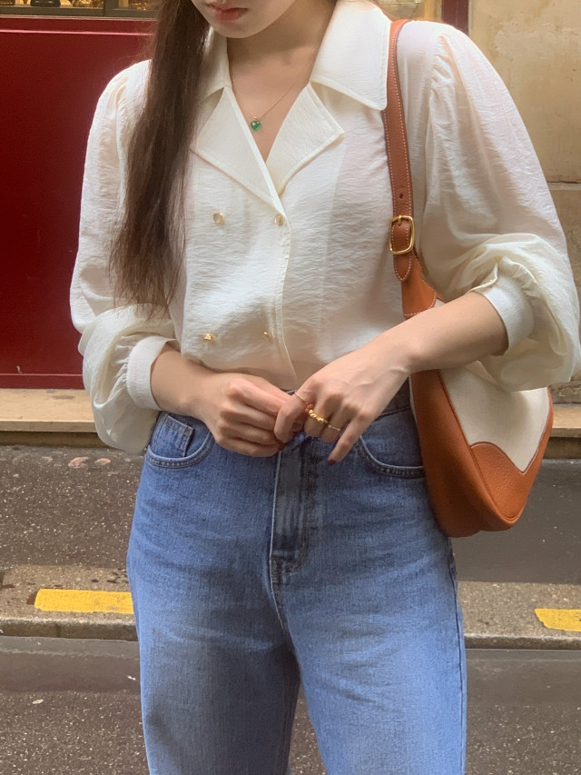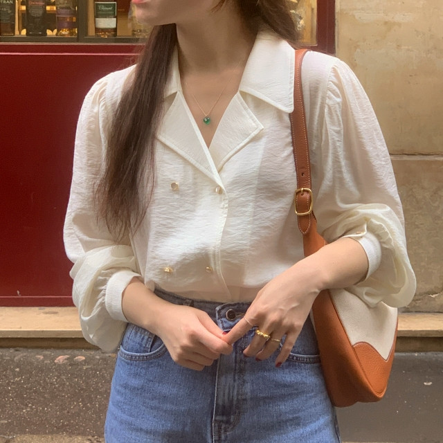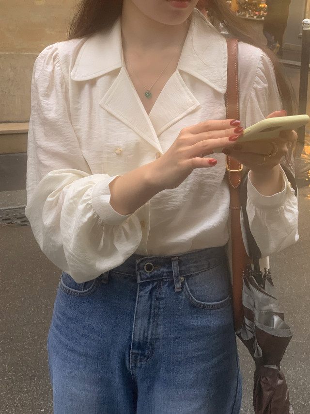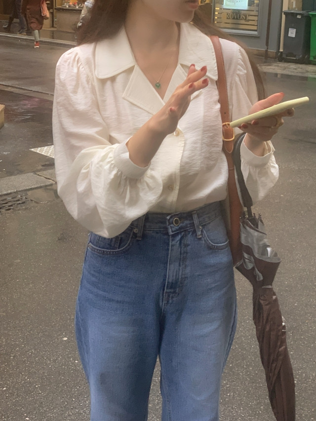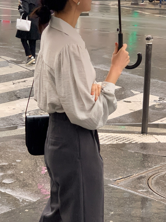 [original] Monetサテンシャーリングカラーパフブラウス