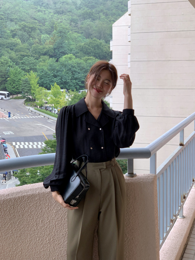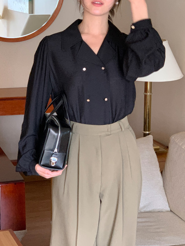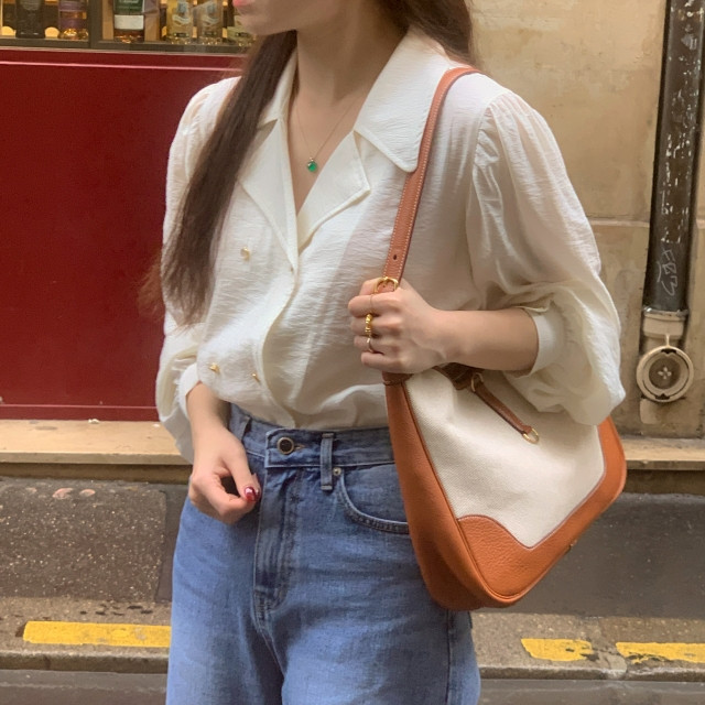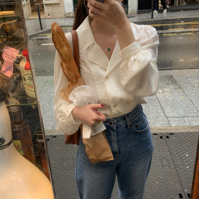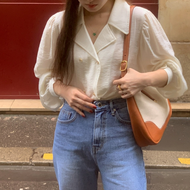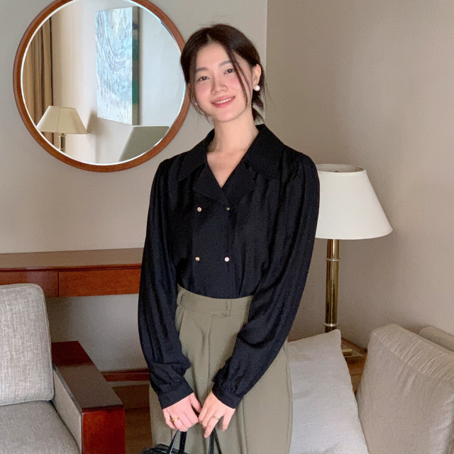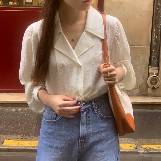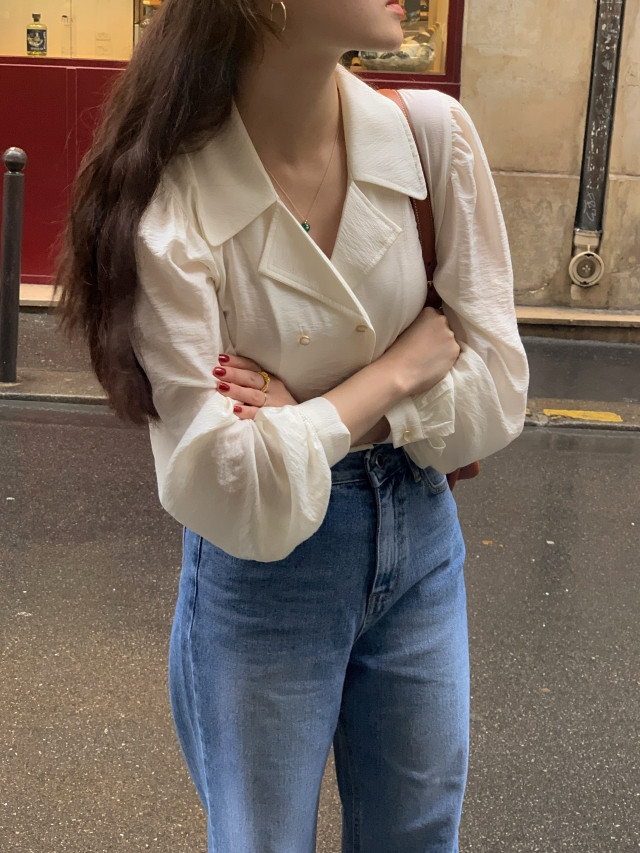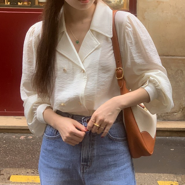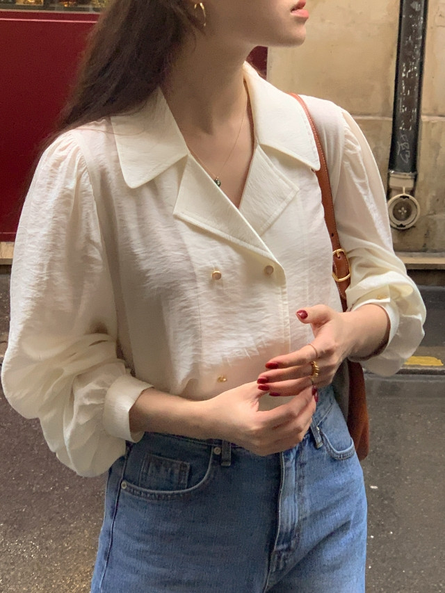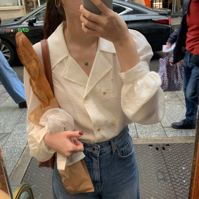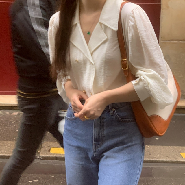 [original] Monetサテンシャーリングカラーパフブラウス