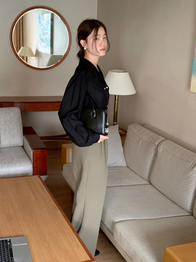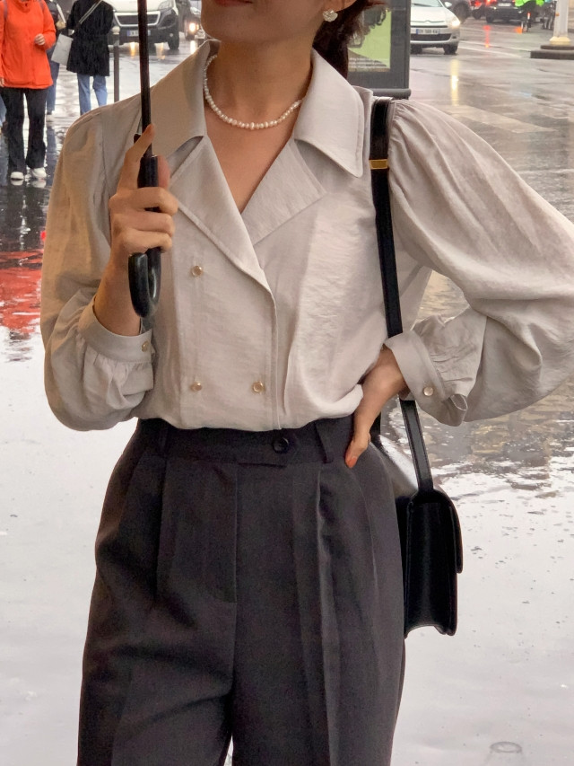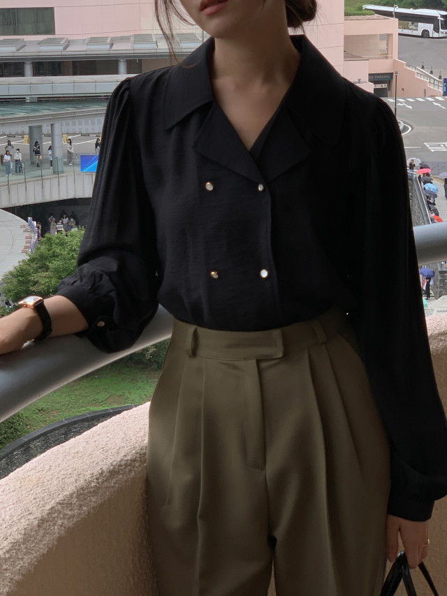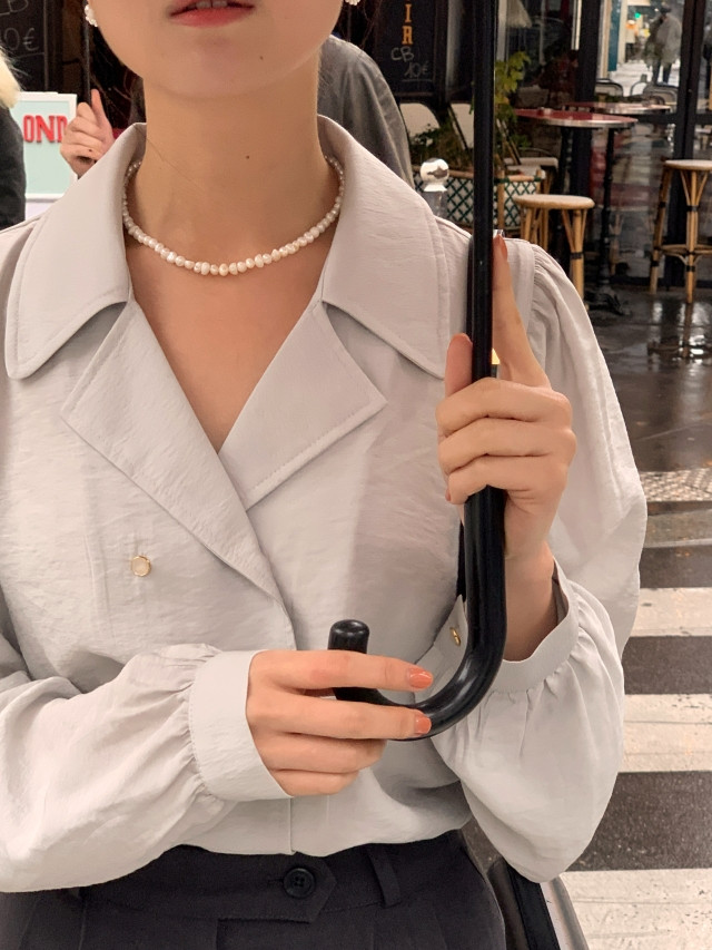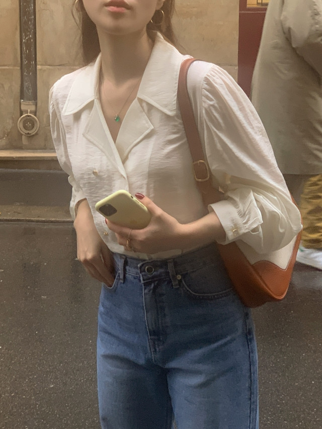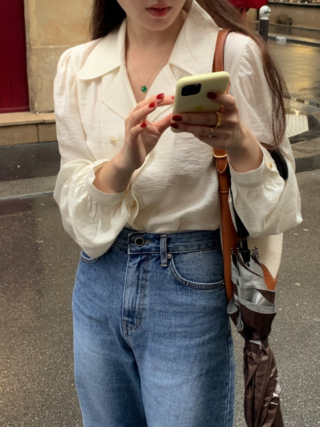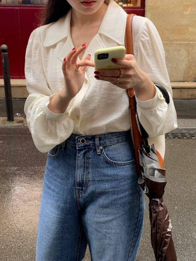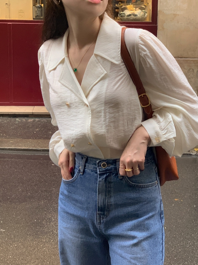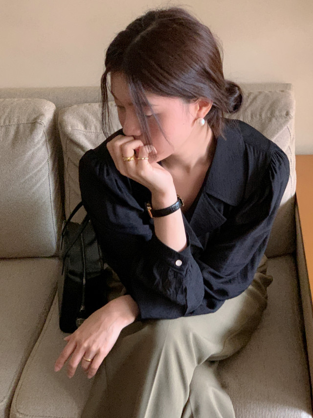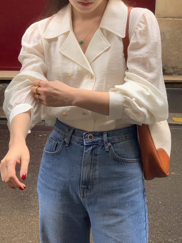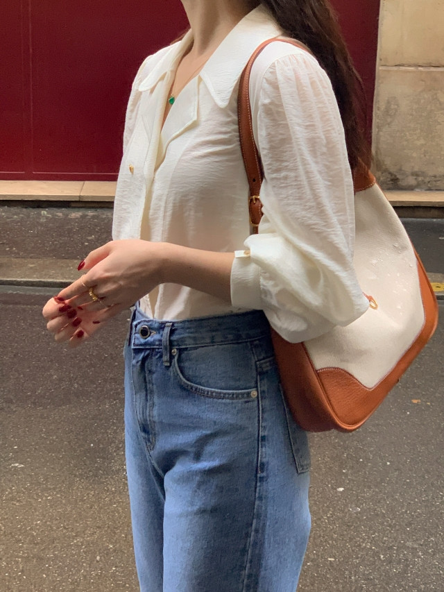 [original] Monetサテンシャーリングカラーパフブラウス