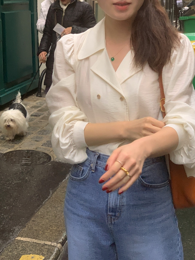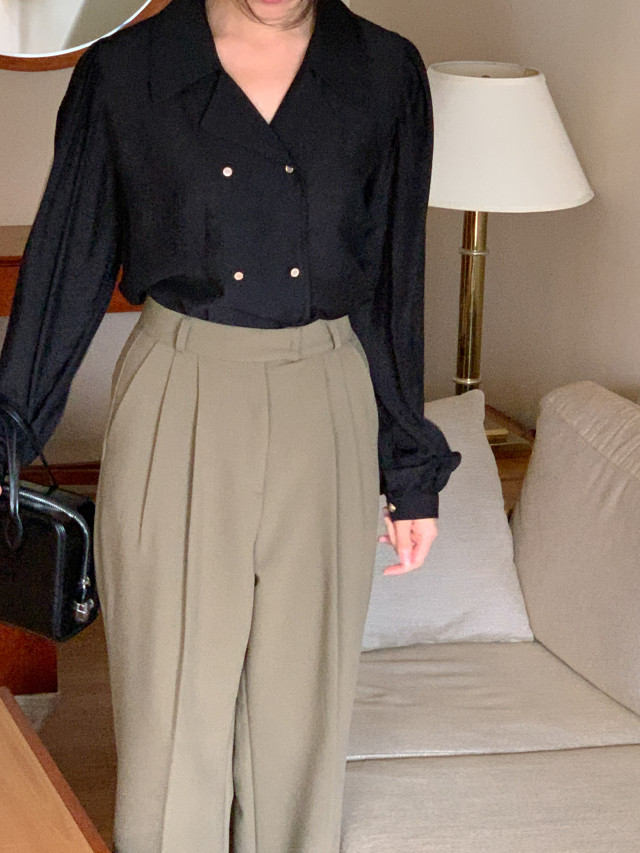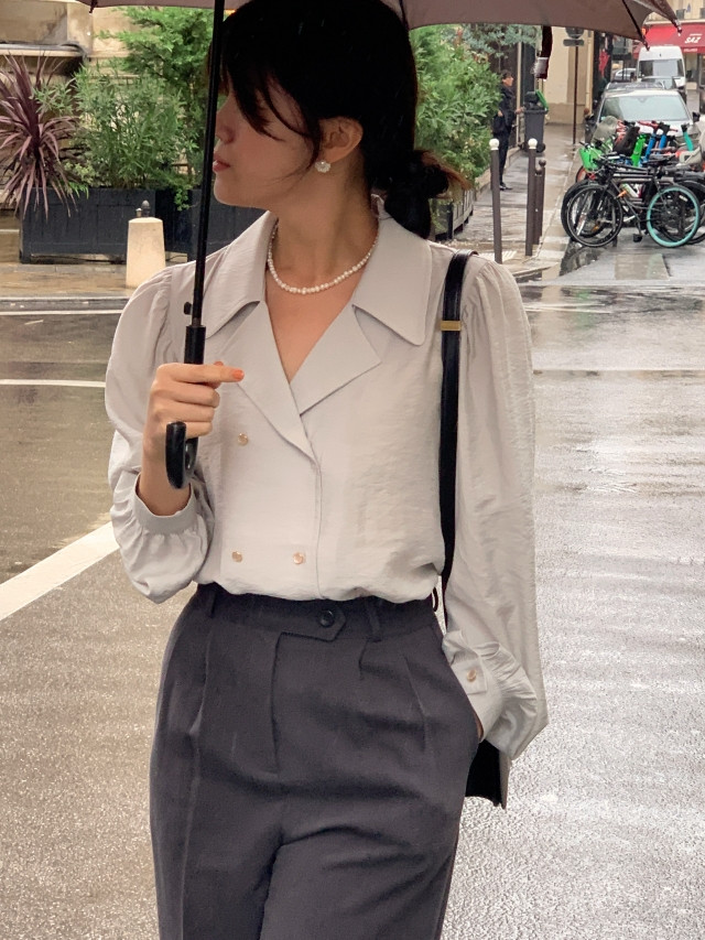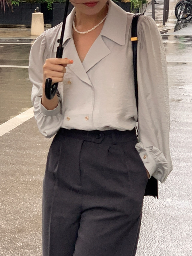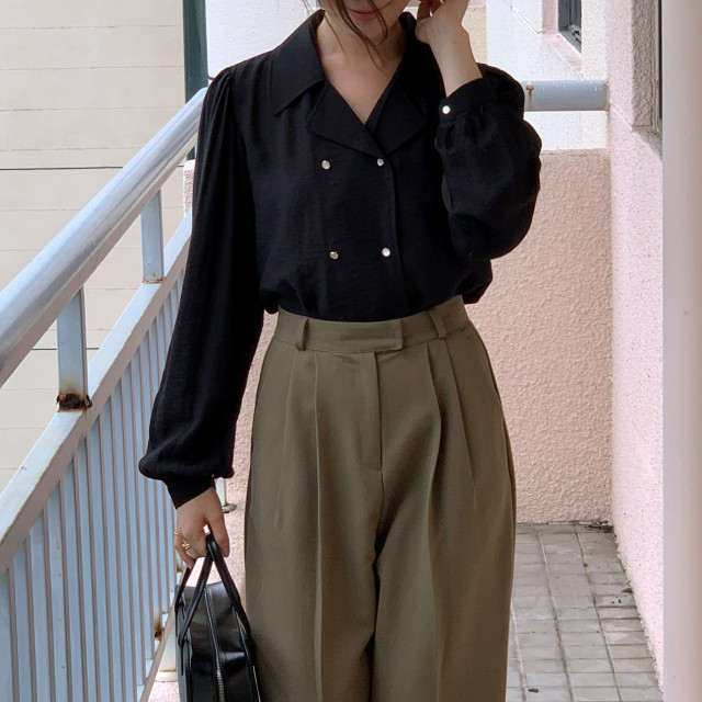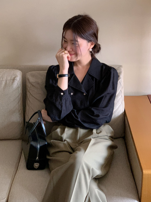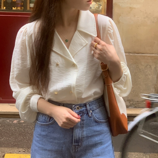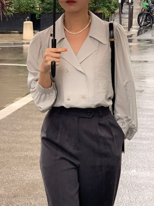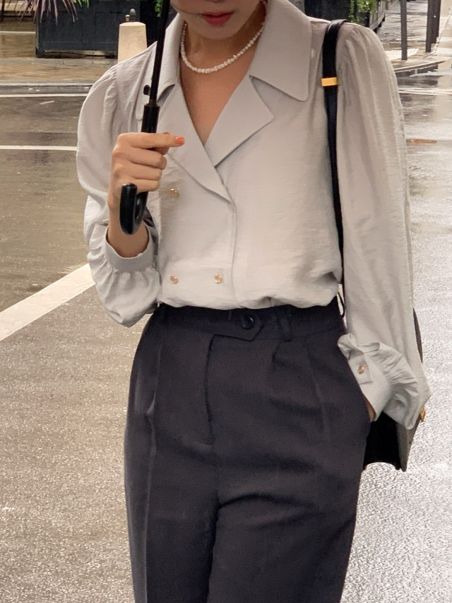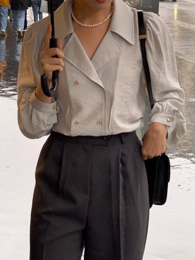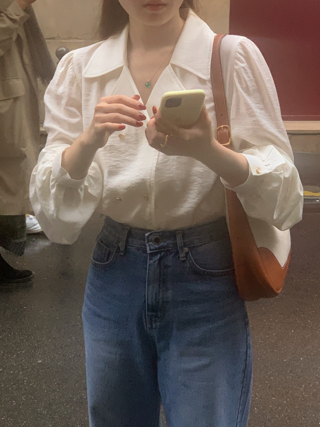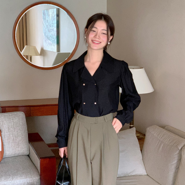 [original] Monetサテンシャーリングカラーパフブラウス
