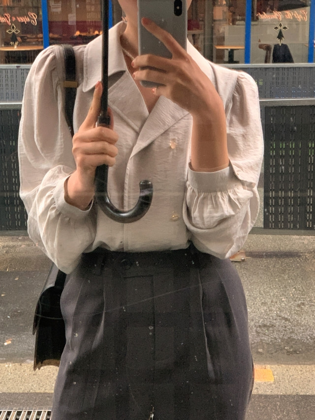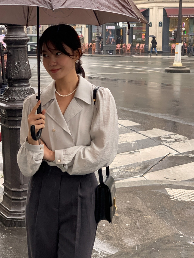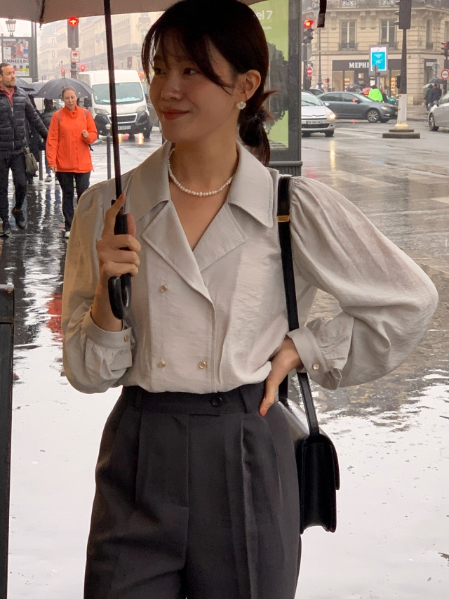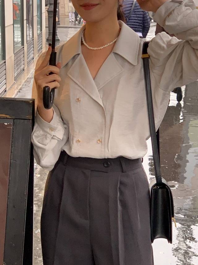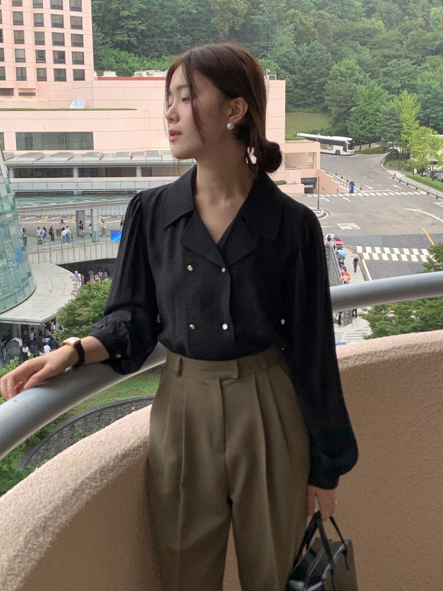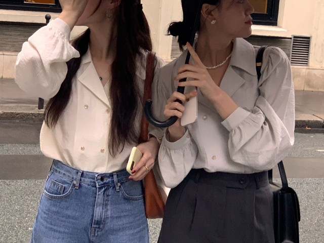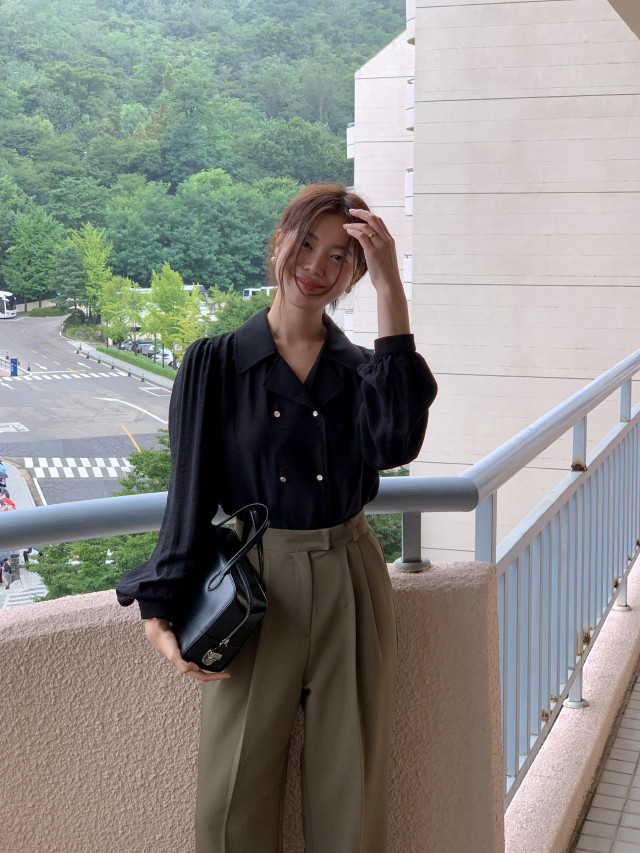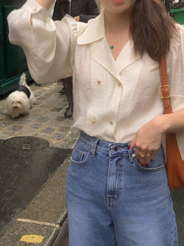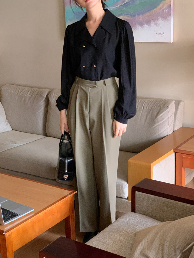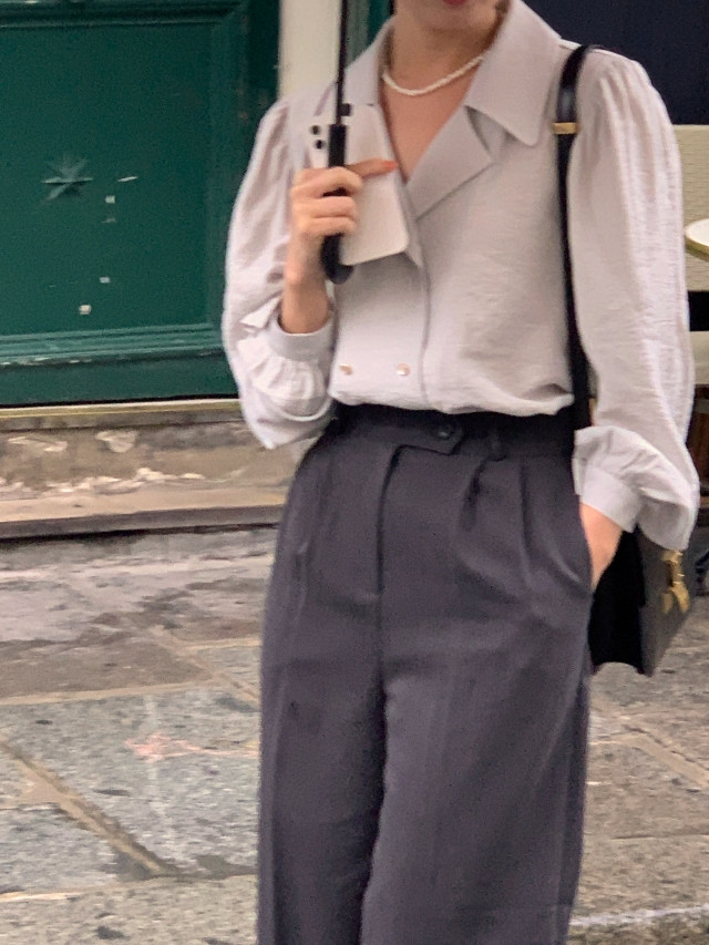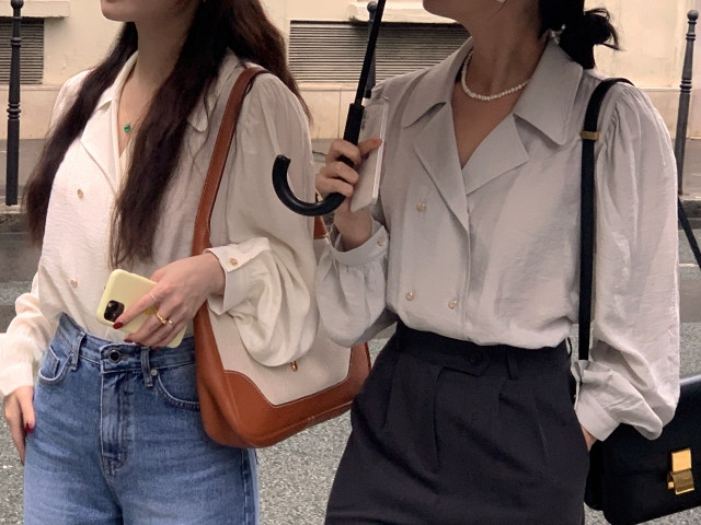 [original] Monetサテンシャーリングカラーパフブラウス